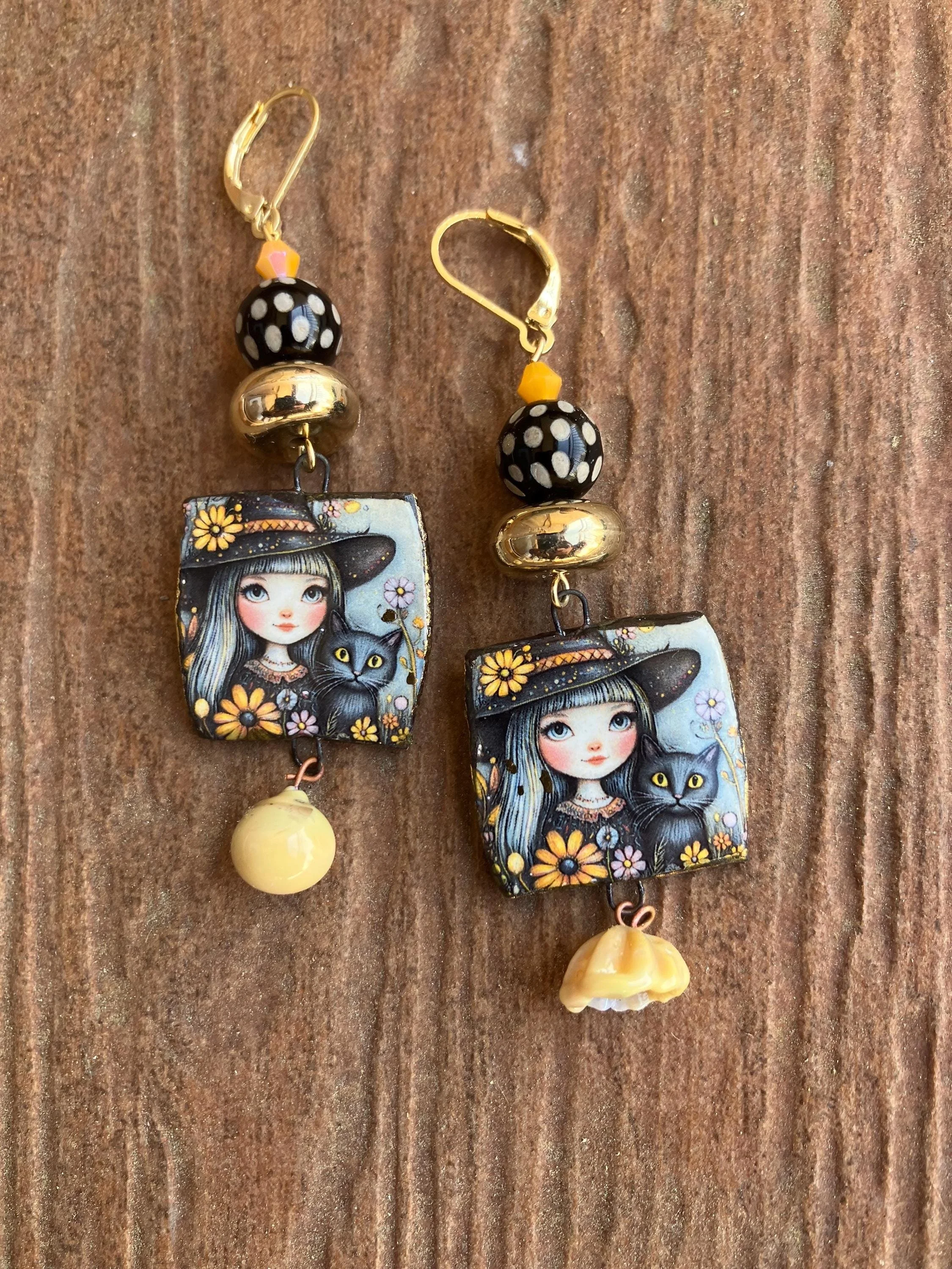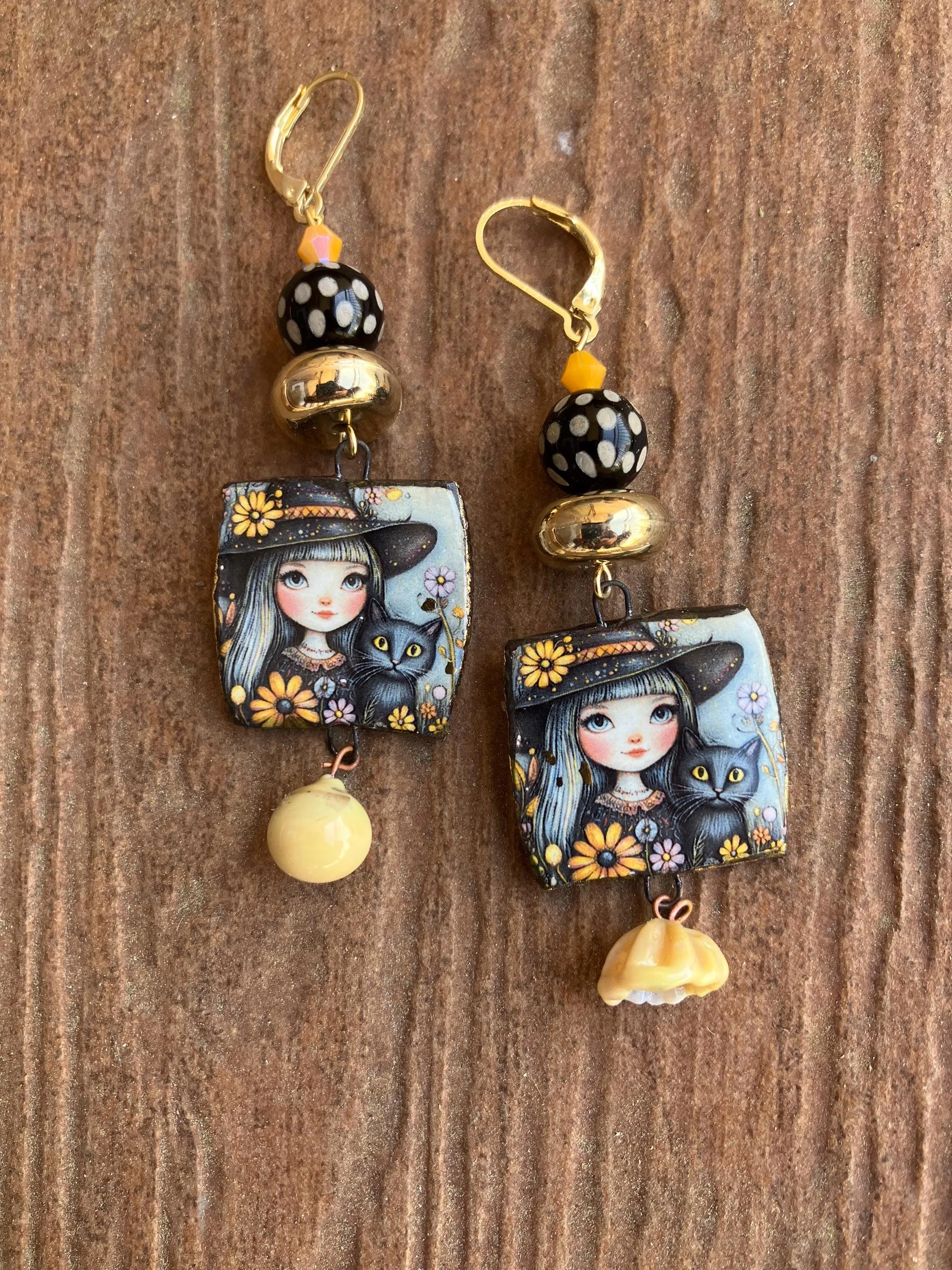 Boucles bohème chic art deco en céramique d art et verre filé
