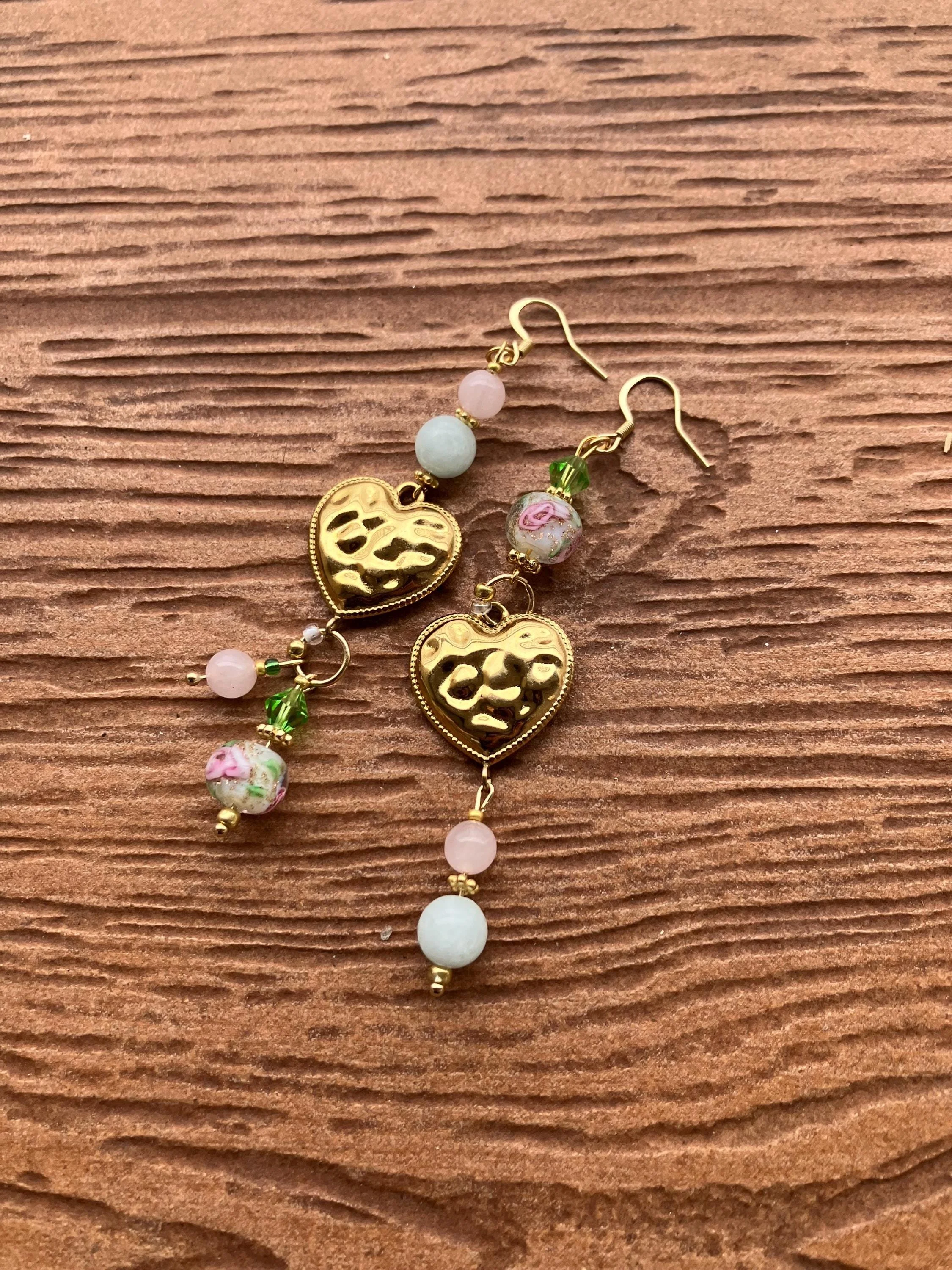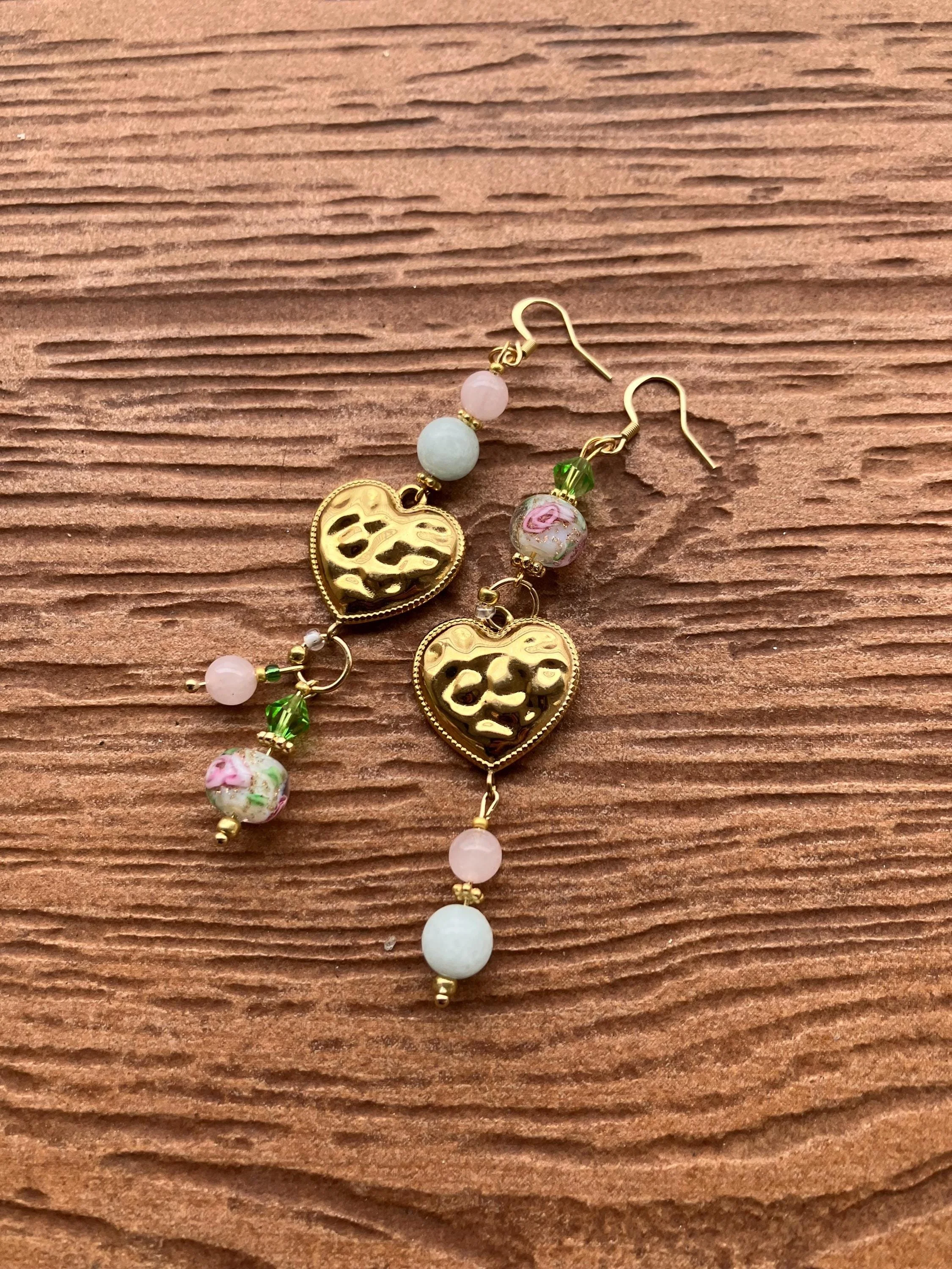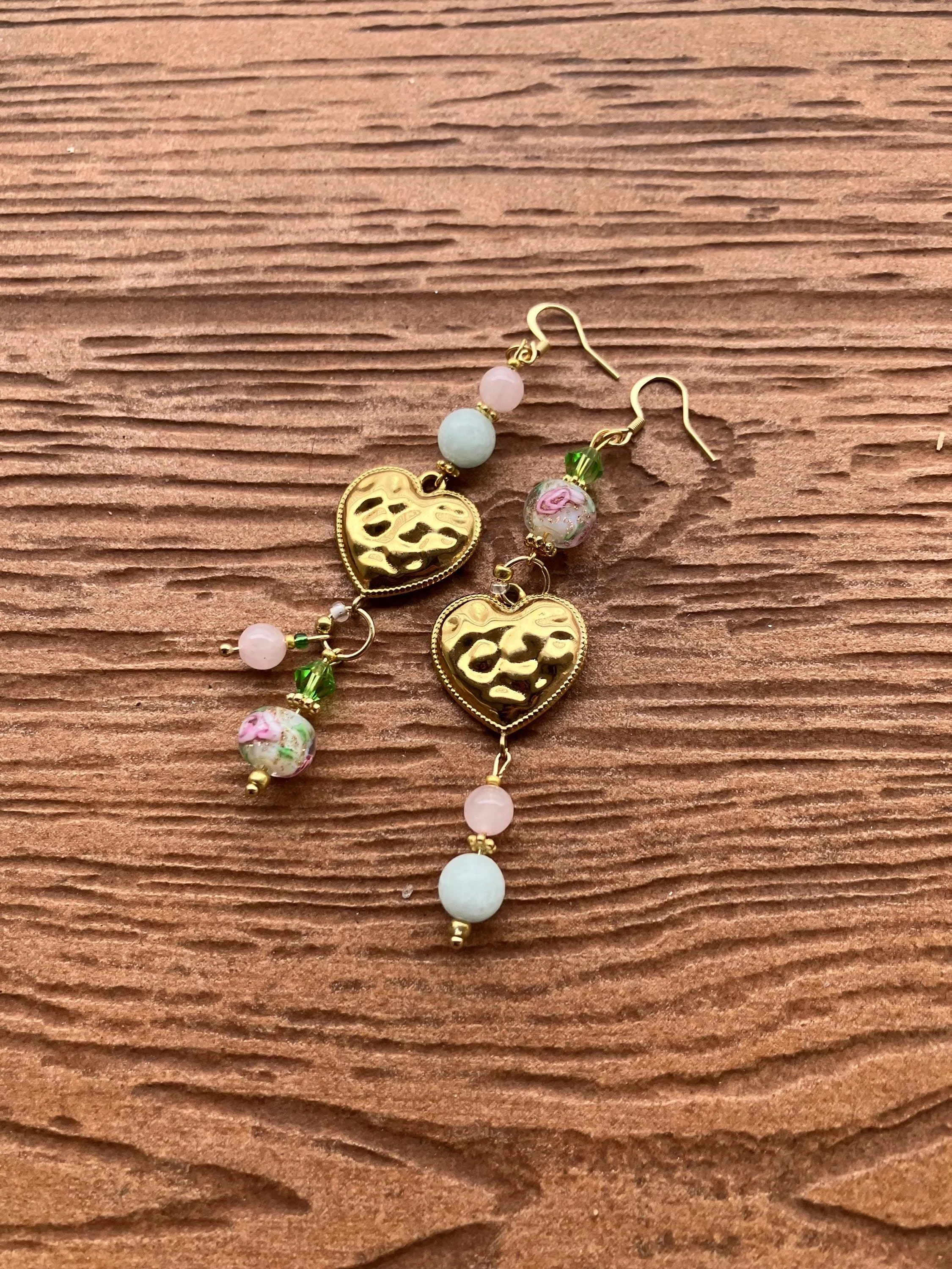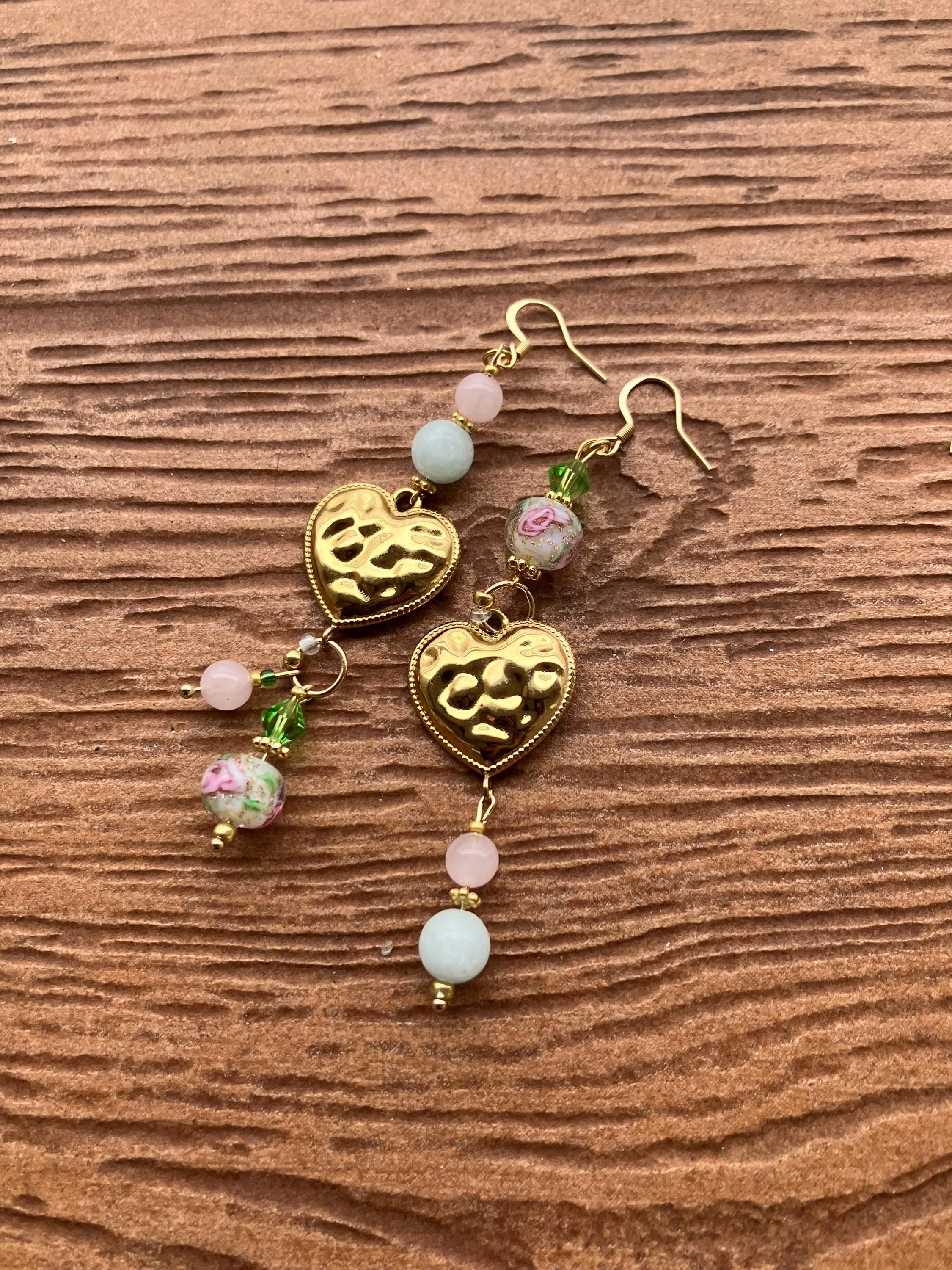 Cathynature-bijoux › Boucles bohème chic dépareillées cœur en semi précieuse amazonite et quartz rose, cristal Swarovski, acier et verre filé vintage Image 1 sur 5 Image 2 sur 5 Image 3 sur 5 Image 4 sur 5 Image 5 sur 5 Boucles bohème chic dépareillées cœur en semi précieuse amazonite et quartz rose, cristal Swarovski, acier et verre filé vintage 32,00 € Jolie paire de boucles d oreilles bohème chic dépareillées Composée de Cœurs martèles en acier inoxydableToupies en cristal Swarovski Perles en verre filé vintage Perles intercalaires en plaqué or Perles semi précieuse en amazonite Perles semi précieuse en quartz rose Acheter Ajout effectué ! Jolie paire de boucles d oreilles bohème chic dépareillées Composée de Cœurs martèles en acier inoxydableToupies en cristal Swarovski Perles en verre filé vintage Perles intercalaires en plaqué or Perles semi précieuse en amazonite Perles semi précieuse en quartz rose