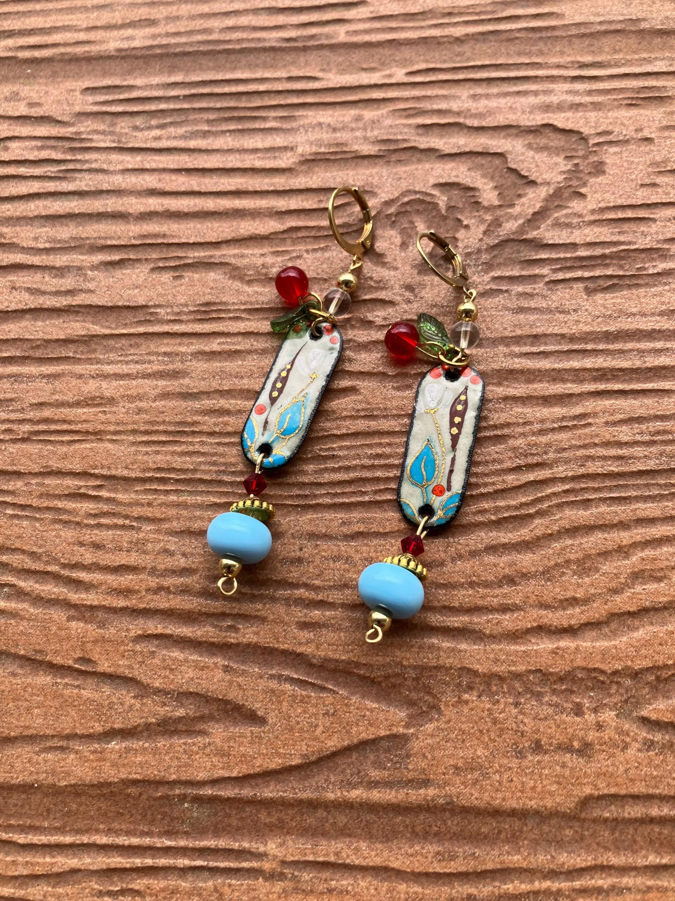 Cathynature-bijoux › Boucles bohème chic en cuivre émaillé d art printanières Image 1 sur 3 Image 2 sur 3 Image 3 sur 3 Boucles bohème chic en cuivre émaillé d art printanières 32,00 € Jolie paire de boucles d oreilles bohème chic Composée de Charms en verre vintage Perles en plaqué or Perles rondelle bleues en verre filé d art Magnifiques pendants en cuivre émaillé d art Acheter Ajout effectué ! Jolie paire de boucles d oreilles bohème chic Composée de Charms en verre vintage Perles en plaqué or Perles rondelle bleues en verre filé d art Magnifiques pendants en cuivre émaillé d art