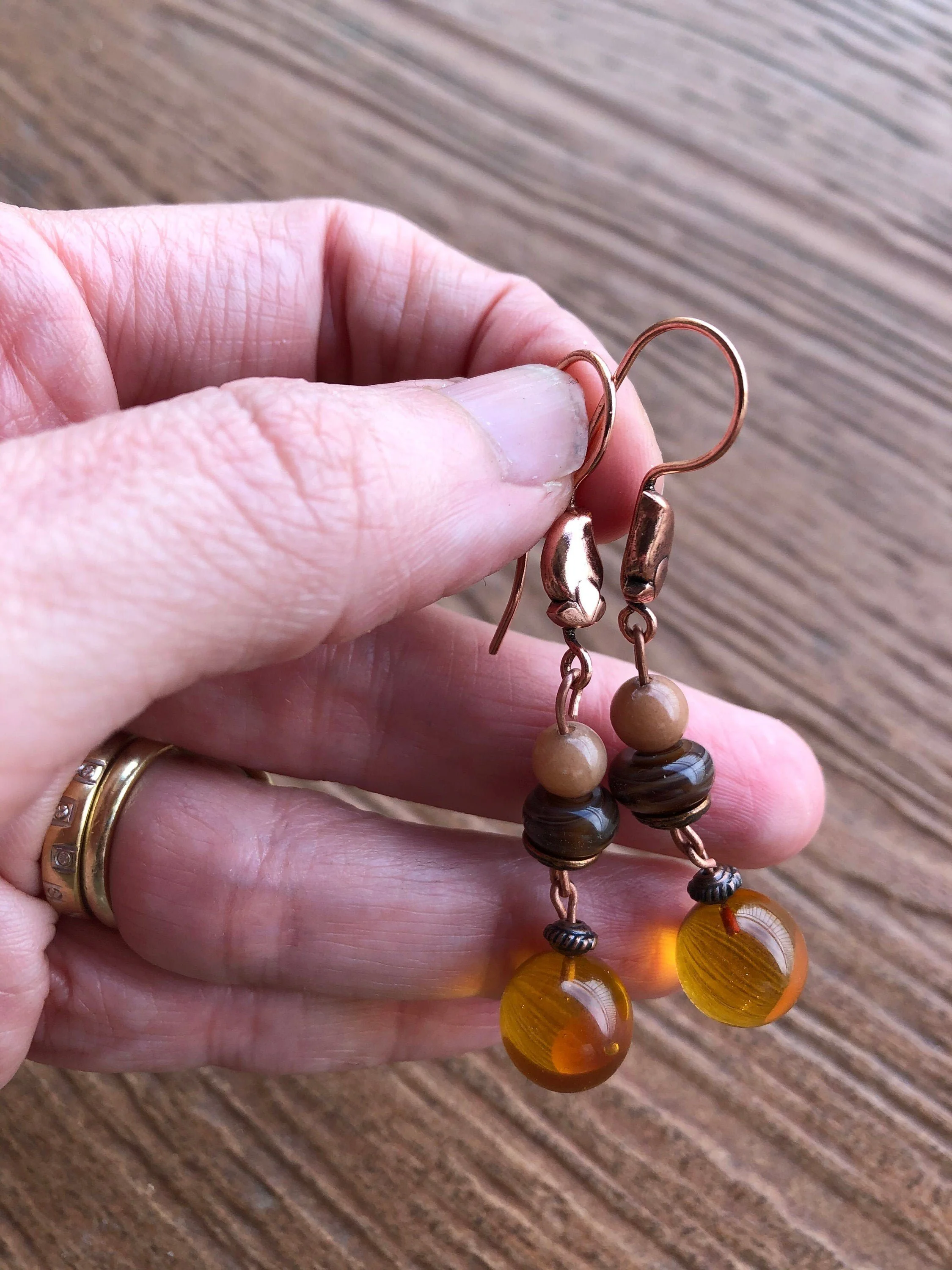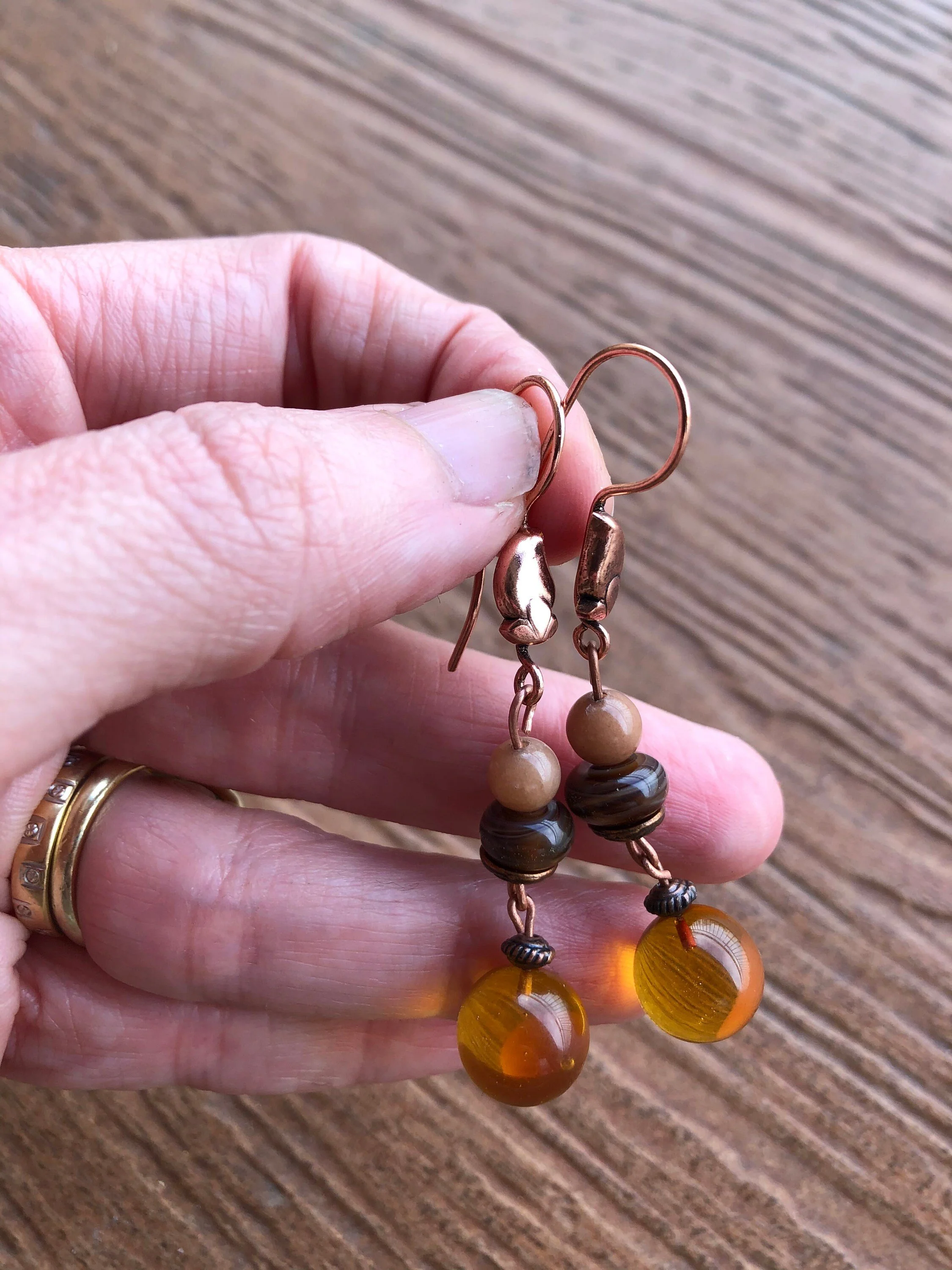 Cathynature-bijoux › Boucles rétro chic jaune et camel Image 1 sur 5 Image 2 sur 5 Image 3 sur 5 Image 4 sur 5 Image 5 sur 5 Boucles rétro chic jaune et camel 22,00 € épuisé Vends une jolie paire de boucles d oreille composée De headpins en verre file au chalumeau de lafileusedeverre De perles semi précieuses en jade mashan chamois De perles en verre file au chalumeau De splendides crochets en cuivre avec rose de bijouvintagemercerie Modèle unique Épuisé Ajout effectué ! Vends une jolie paire de boucles d oreille composée De headpins en verre file au chalumeau de lafileusedeverre De perles semi précieuses en jade mashan chamois De perles en verre file au chalumeau De splendides crochets en cuivre avec rose de bijouvintagemercerie Modèle unique