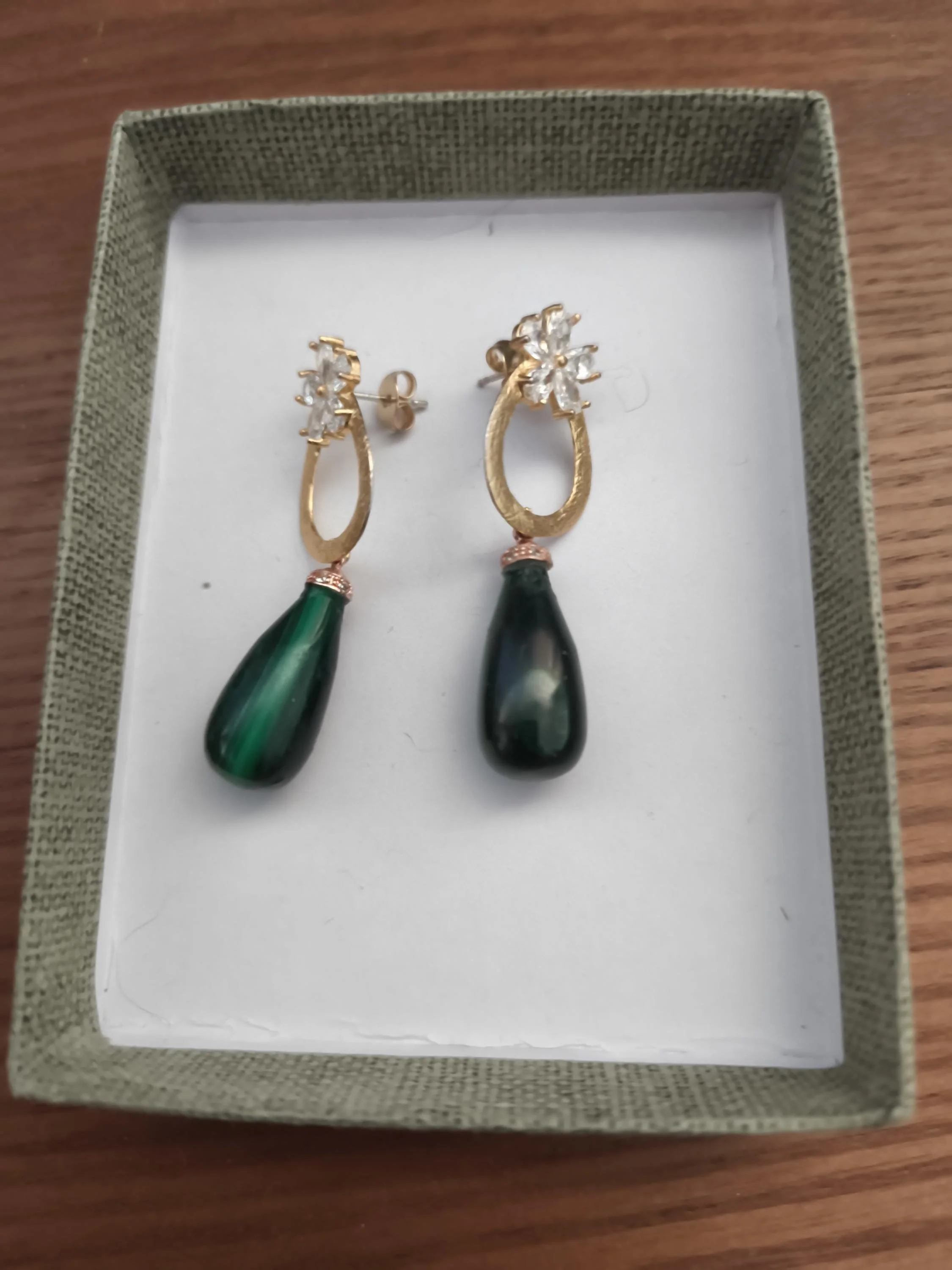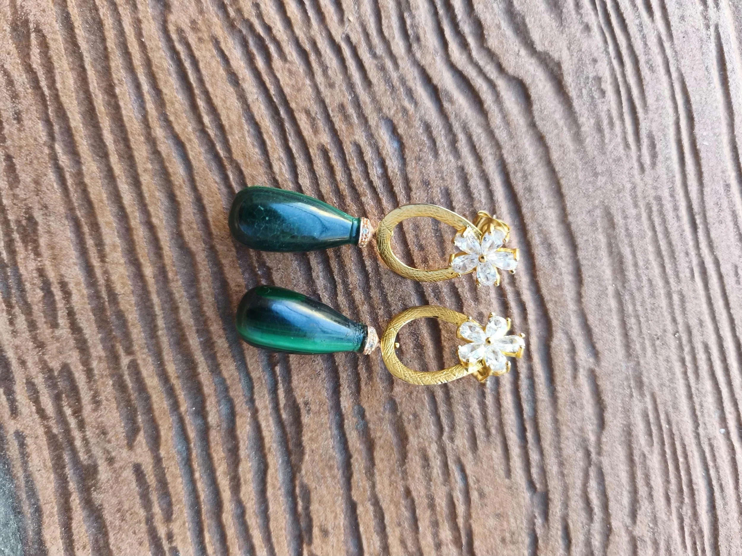 Cathynature-bijoux › boucles semi précieuses en malachite et plaque or Image 1 sur 5 Image 2 sur 5 Image 3 sur 5 Image 4 sur 5 Image 5 sur 5 boucles semi précieuses en malachite et plaque or 42,00 € Jolie paire de boucles d' oreilles chic composée deMagnifiques puces fleur en plaqué or 14k et strassSplendides gouttes semi précieuse en malachite Acheter Ajout effectué ! Jolie paire de boucles d' oreilles chic composée deMagnifiques puces fleur en plaqué or 14k et strassSplendides gouttes semi précieuse en malachite