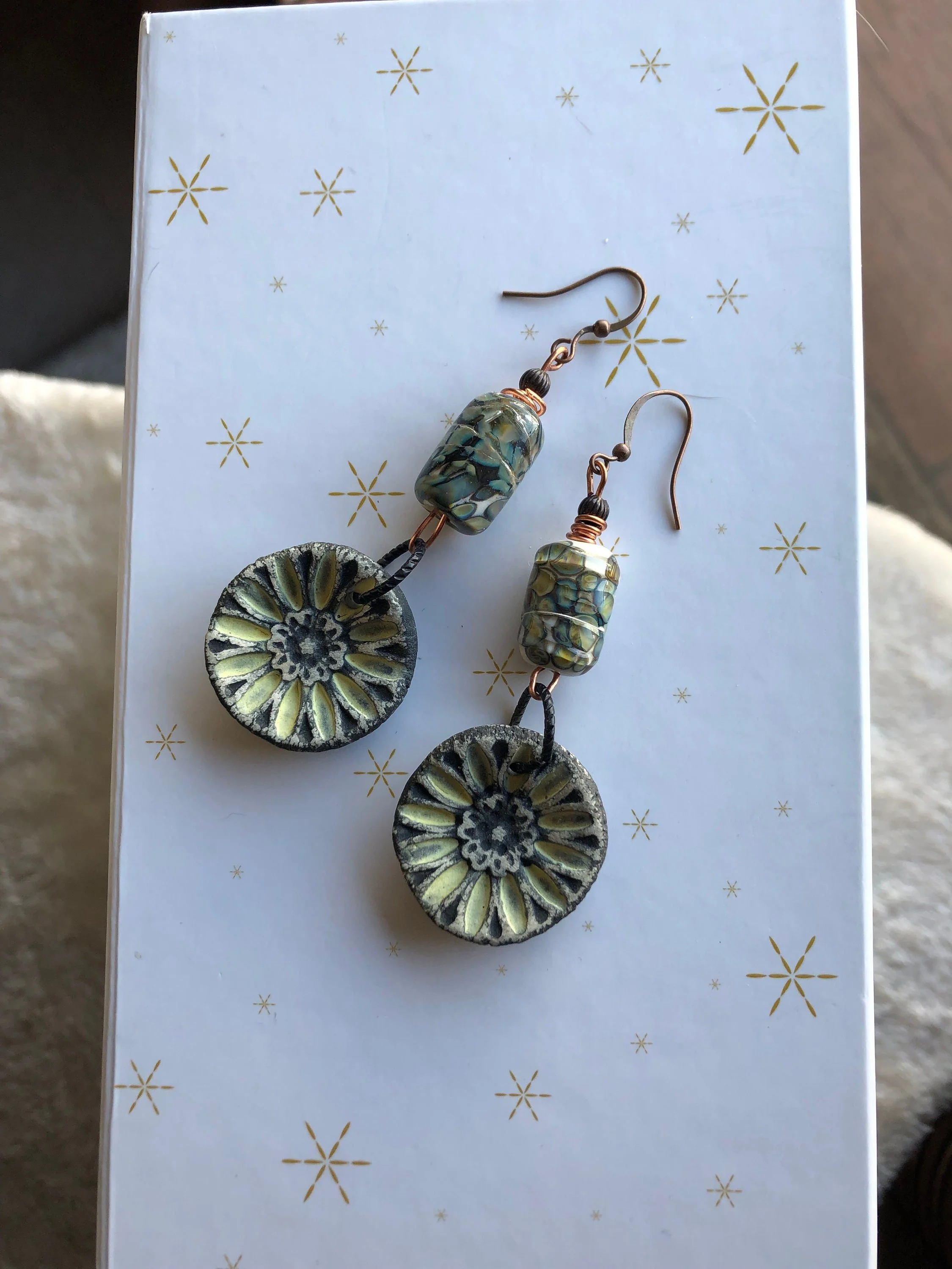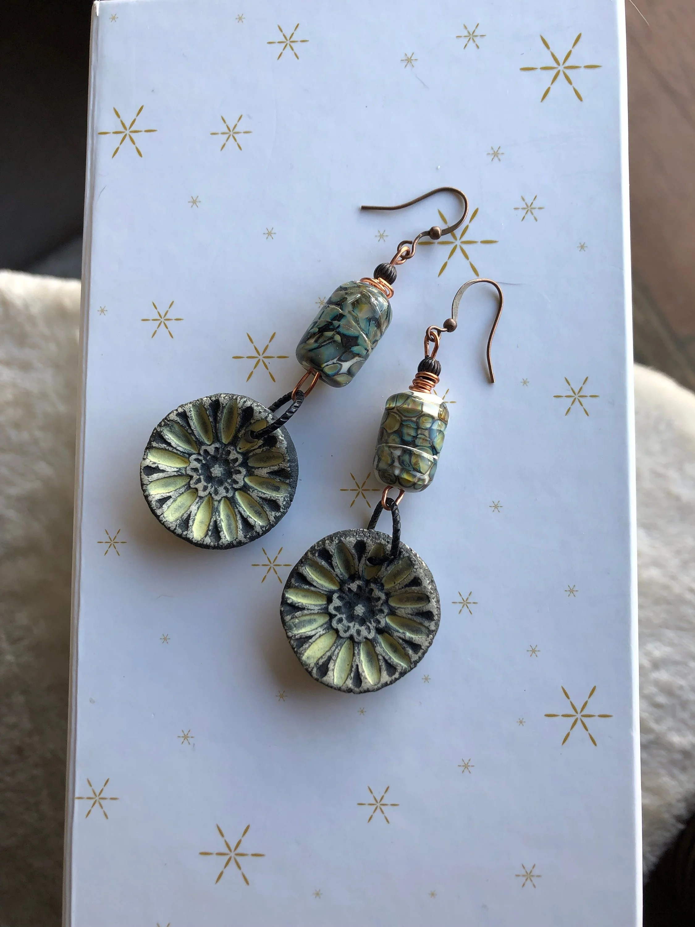 Cathynature-bijoux › Boucles tribal, boucles céramique primitive, boucles vert et noir Image 1 sur 4 Image 2 sur 4 Image 3 sur 4 Image 4 sur 4 Boucles tribal, boucles céramique primitive, boucles vert et noir 20,00 € épuisé Très originale paire de boucles d oreille Tribal, primitive composée de Splendides breloques fleur en céramique primitive Superbes perles tubes en verre file d art Montées sur du fil de cuivre artistique Modèle unique Épuisé Ajout effectué ! Très originale paire de boucles d oreille Tribal, primitive composée de Splendides breloques fleur en céramique primitive Superbes perles tubes en verre file d art Montées sur du fil de cuivre artistique Modèle unique