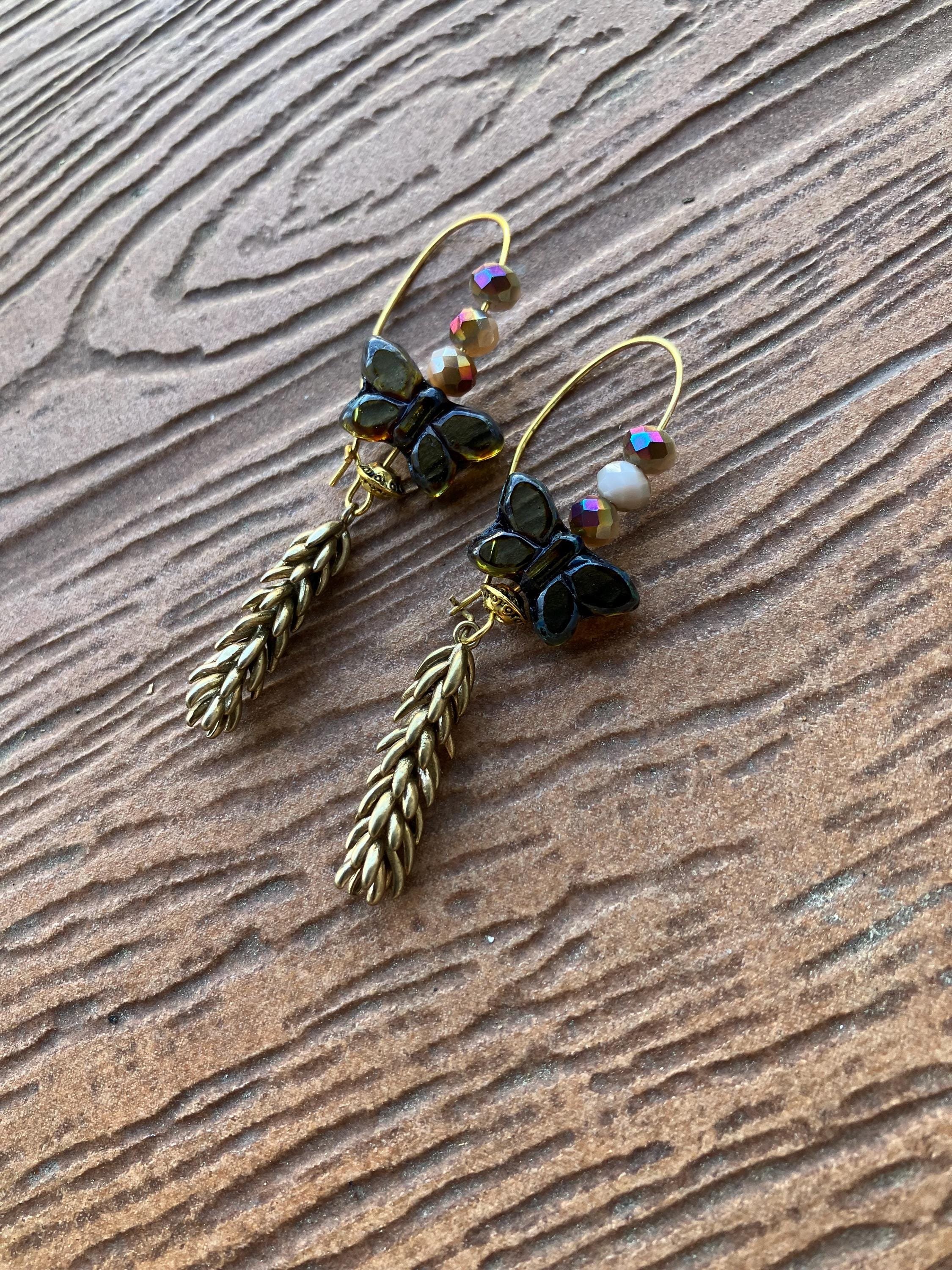 boucles vintage épi en laiton massif et verre Picasso tchèque
