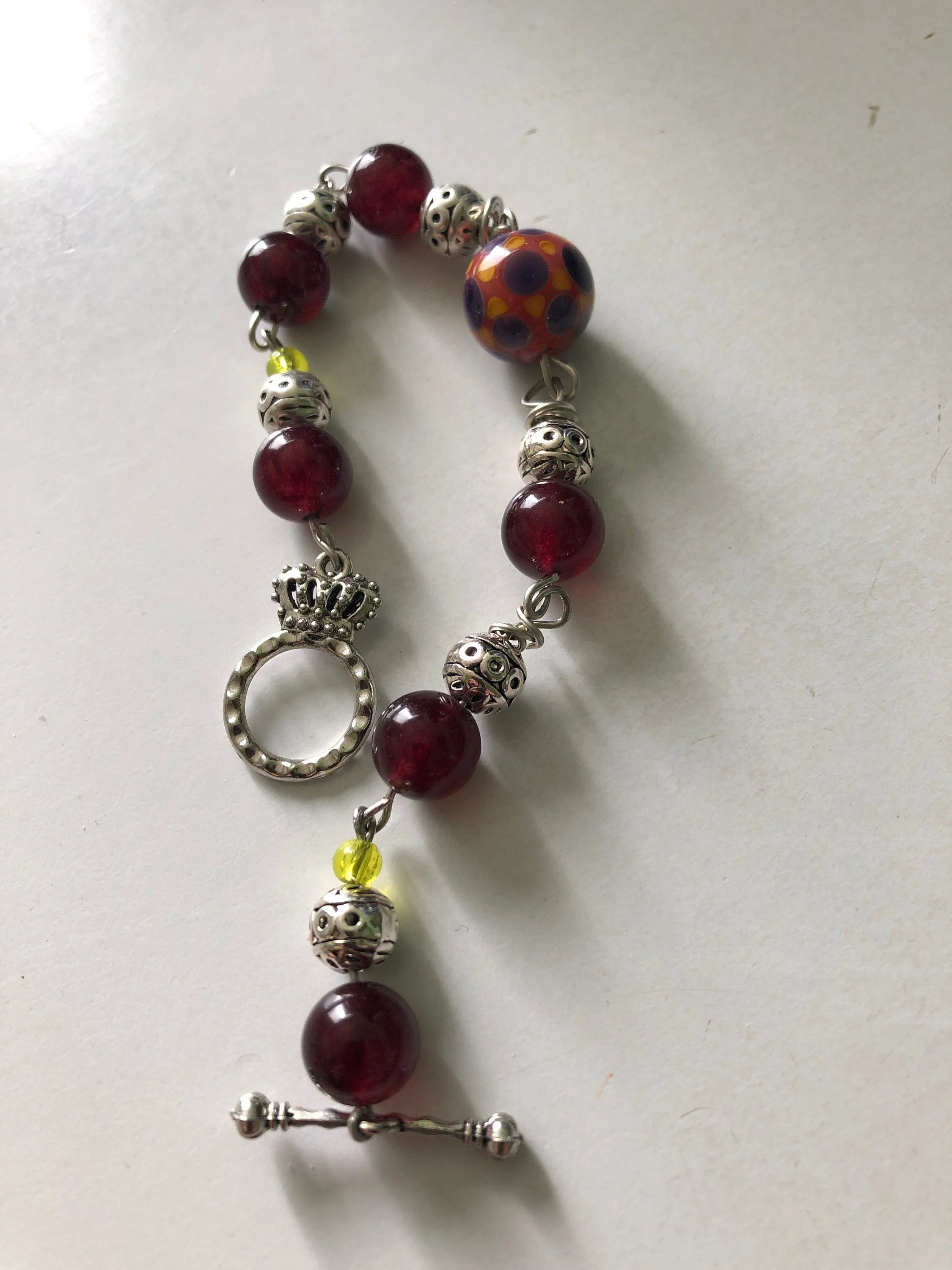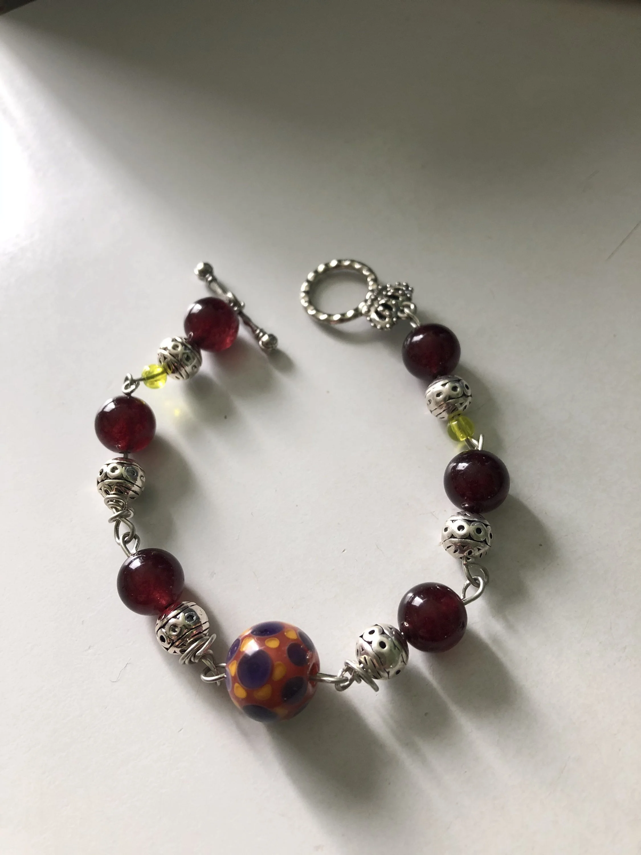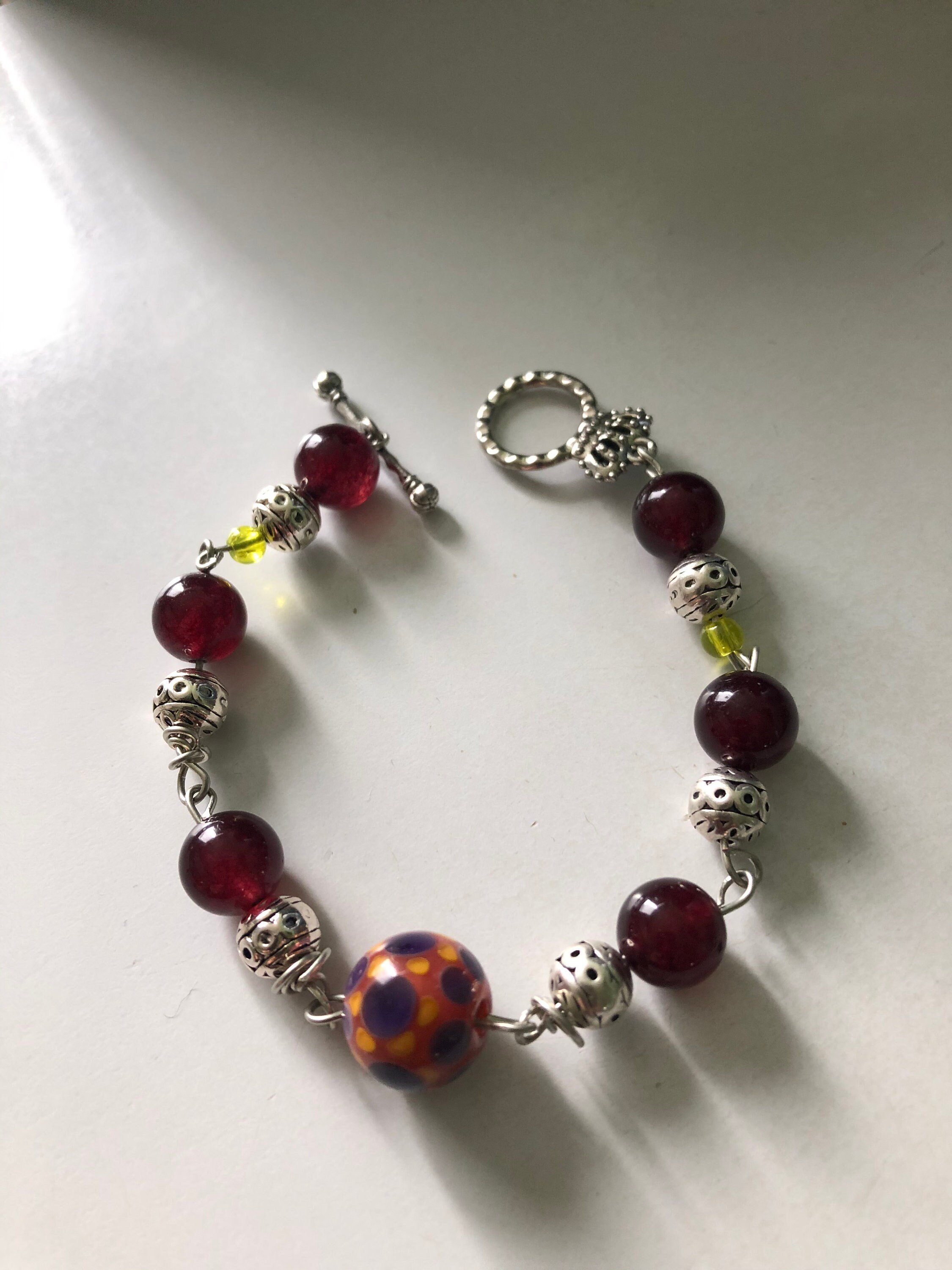 Bracelet bohème chic, bracelet semi précieuses grenat et jaune