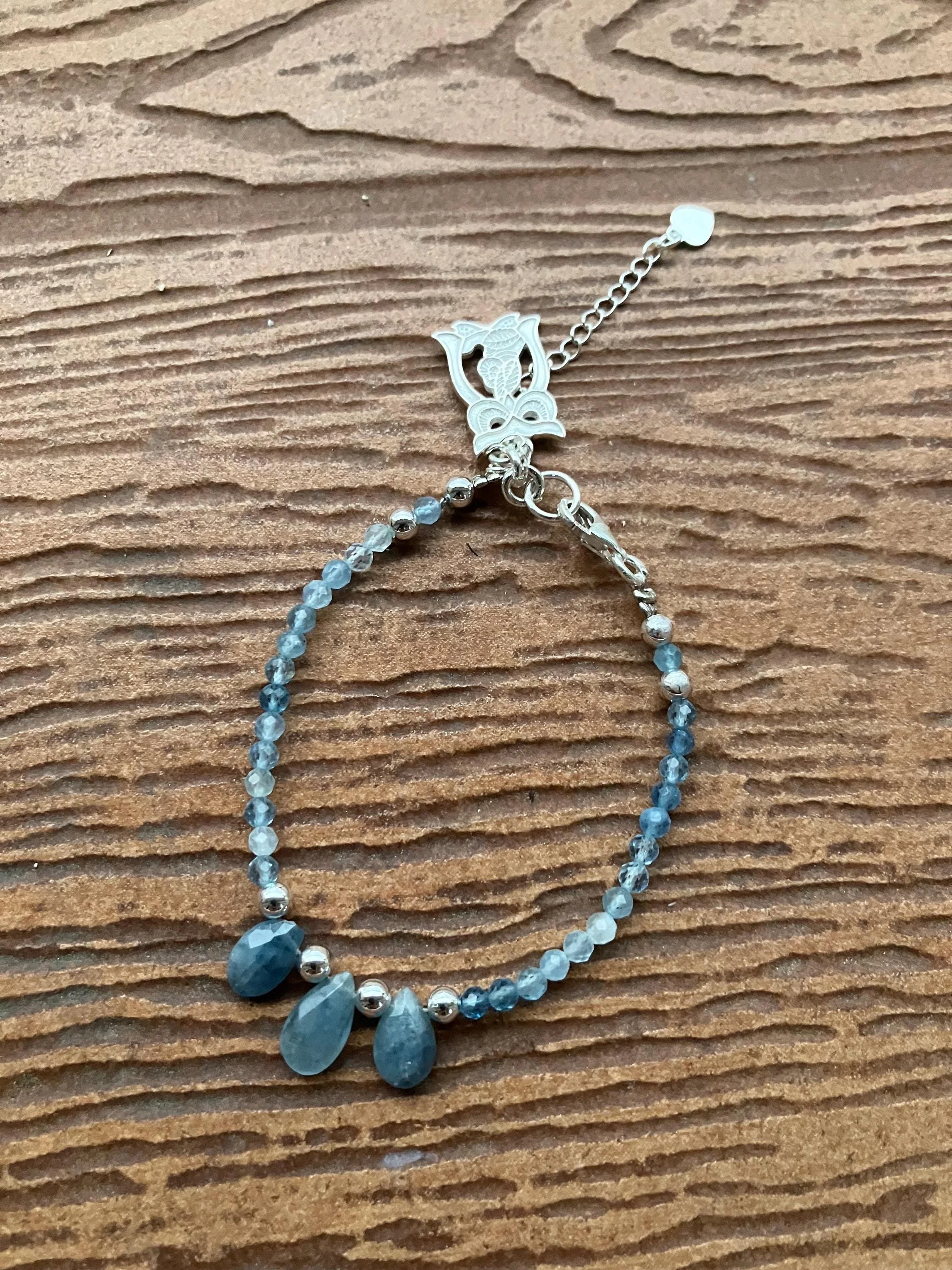 Cathynature-bijoux › Bracelet, bracelet semi précieuse, aiguë marine, kyanite, hibou en argent 925 Image 1 sur 5 Image 2 sur 5 Image 3 sur 5 Image 4 sur 5 Image 5 sur 5 Bracelet, bracelet semi précieuse, aiguë marine, kyanite, hibou en argent 925 40,00 € épuisé Joli bracelet de 17 cm avec rallonge de 5 cm Composé de perles semi précieuse en aiguë marine grade AAAGouttes semi précieuse en kyanite Perles de nacre argent Apprêts et fermoir en argent 925 Magnifique charm de 1,5 cm hibou en argent sculpté Chic minimaliste Épuisé Ajout effectué ! Joli bracelet de 17 cm avec rallonge de 5 cm Composé de perles semi précieuse en aiguë marine grade AAAGouttes semi précieuse en kyanite Perles de nacre argent Apprêts et fermoir en argent 925 Magnifique charm de 1,5 cm hibou en argent sculpté Chic minimaliste