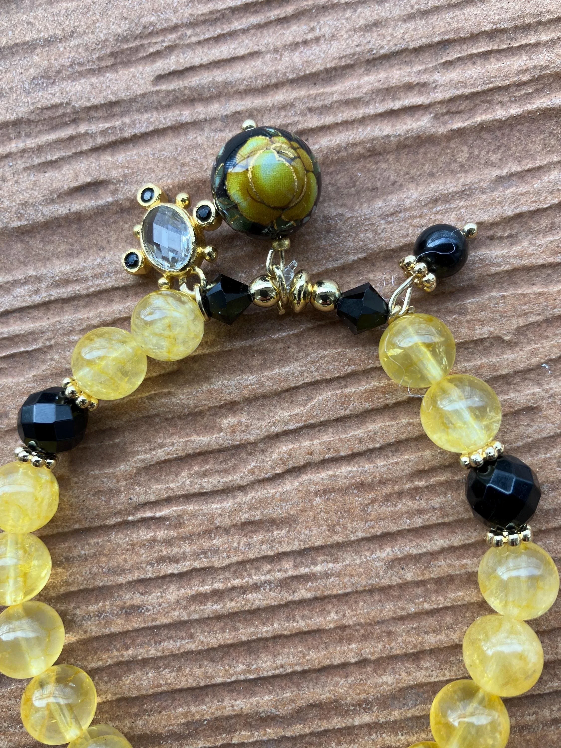 Magnifiques perles tensha japonaise fleuries jaunes et noires