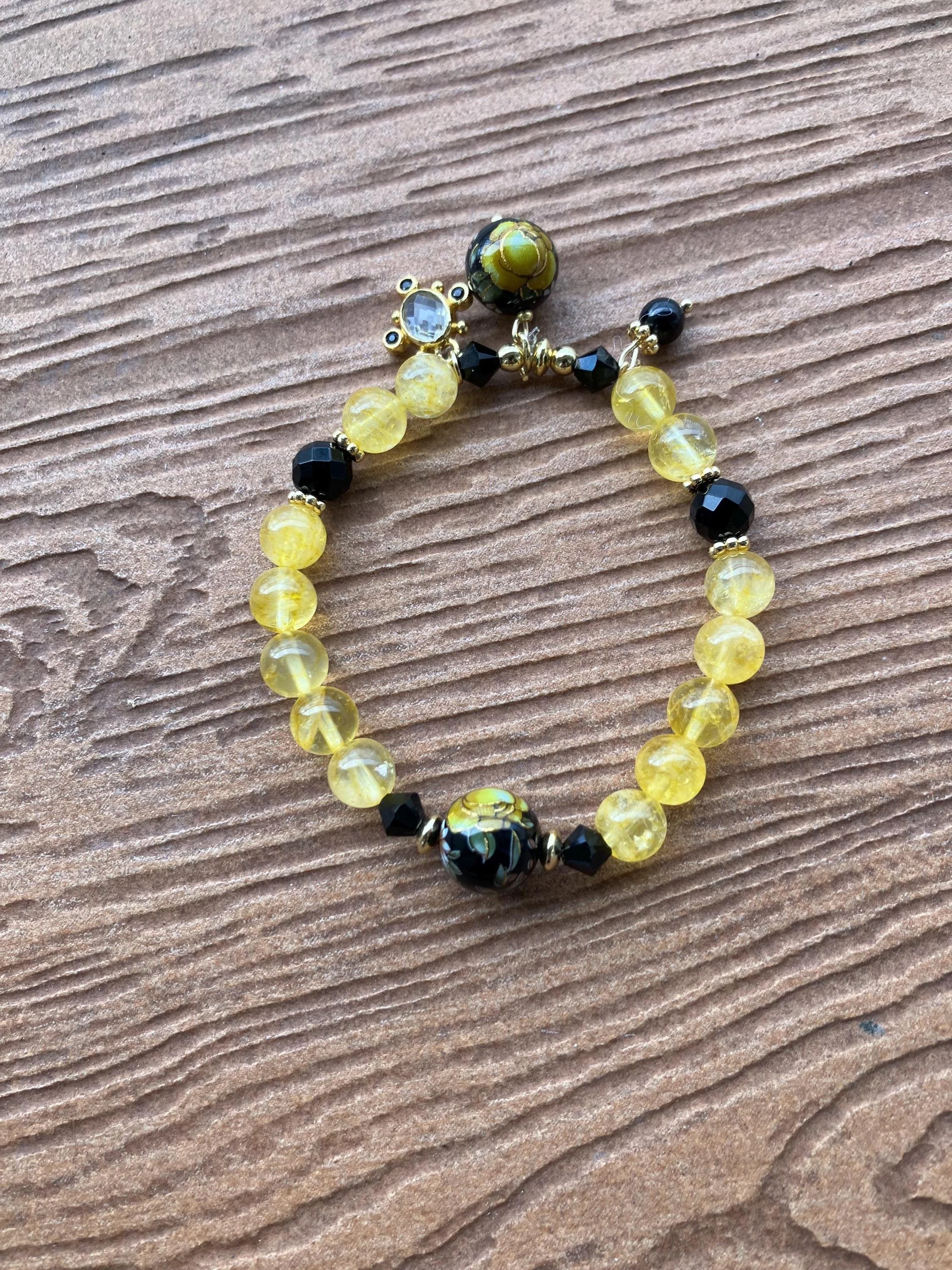 Bracelet chic semi précieuse Citrine, Onyx facette, plaqué or et cristal