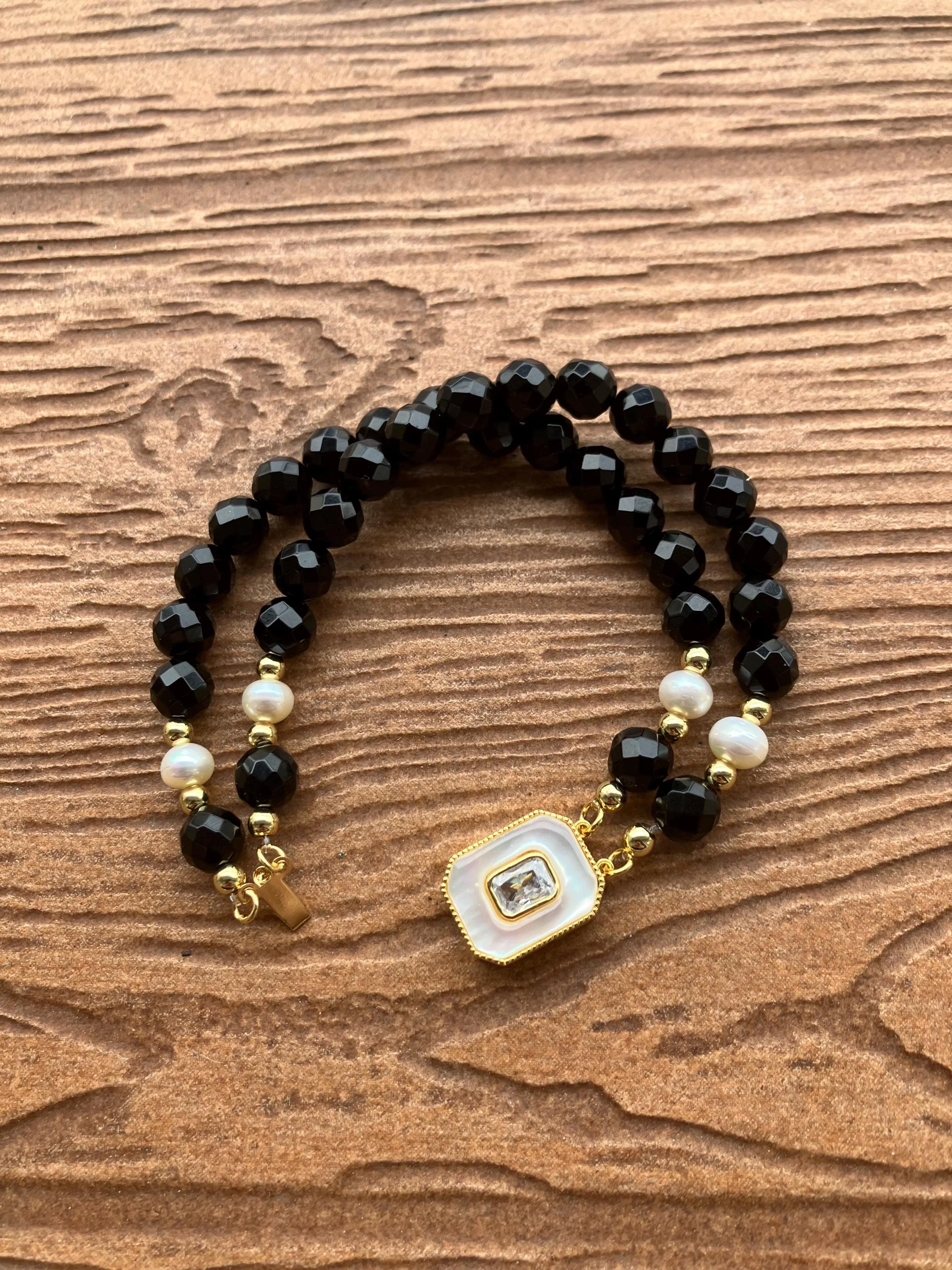 Cathynature-bijoux › bracelet double rang semi précieuse onyx noir facette, plaqué or, nacre, cristal et perles de culture Image 1 sur 3 Image 2 sur 3 Image 3 sur 3 bracelet double rang semi précieuse onyx noir facette, plaqué or, nacre, cristal et perles de culture 46,00 € Bracelet double rang de 17,5 cmMonté sur élastique Peut s enfiler sans ouvrir le connecteur central Perles semi précieuse en onyx noir facette Perles en plaqué or Perles de culture Magnifique connecteur central en aurifie Nacre et cristal Acheter Ajout effectué ! Bracelet double rang de 17,5 cmMonté sur élastique Peut s enfiler sans ouvrir le connecteur central Perles semi précieuse en onyx noir facette Perles en plaqué or Perles de culture Magnifique connecteur central en aurifie Nacre et cristal