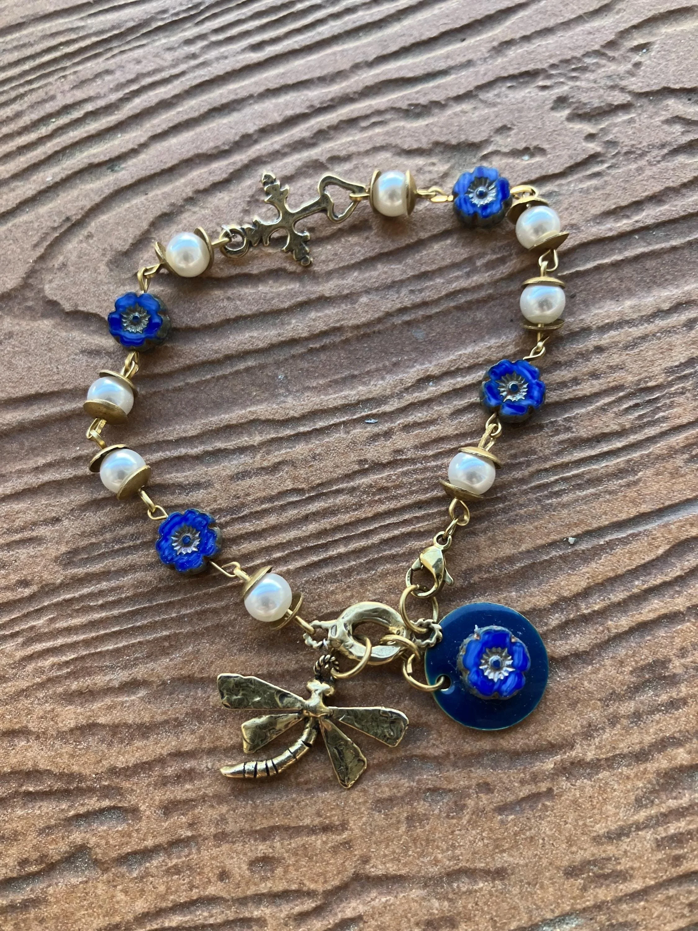 bracelet vintage fleur tchèque perles Swarovski et bronze massif