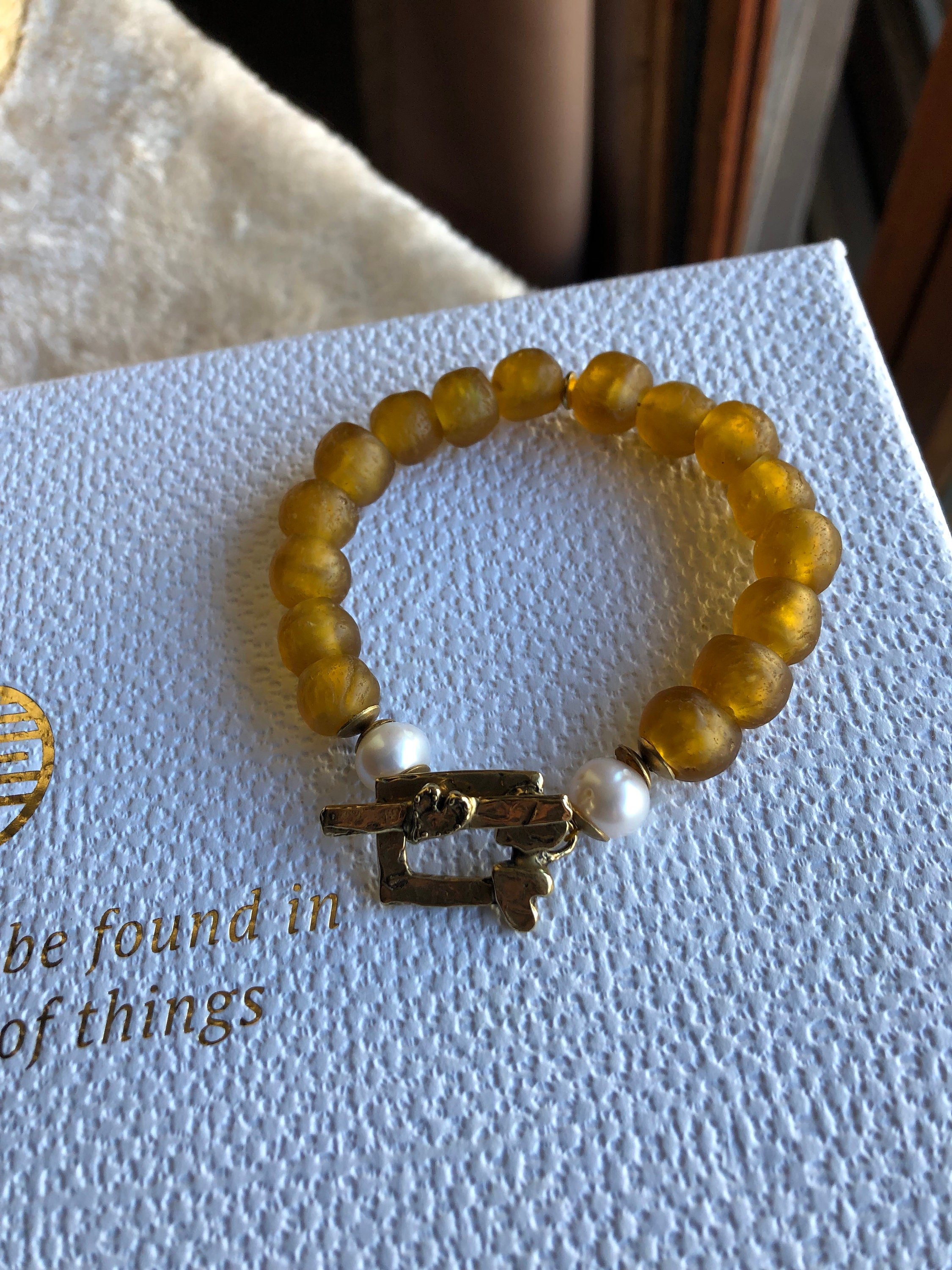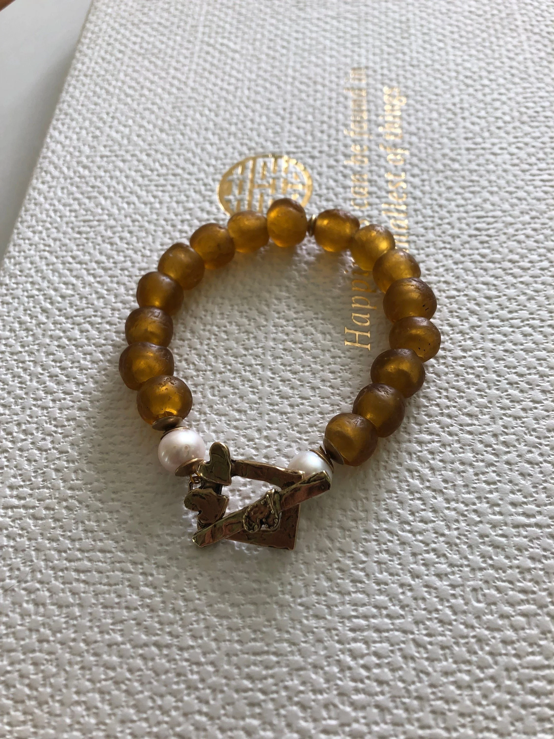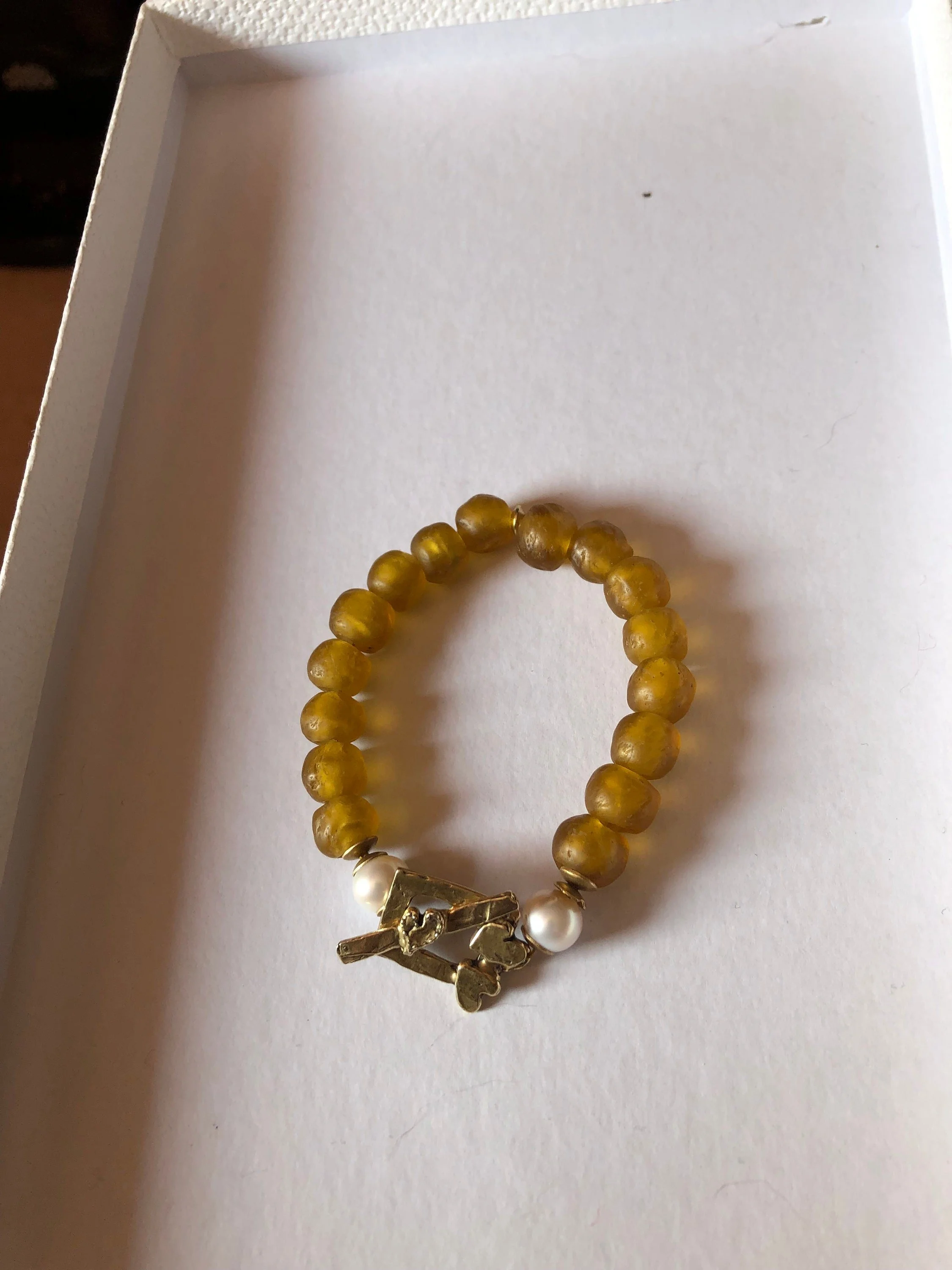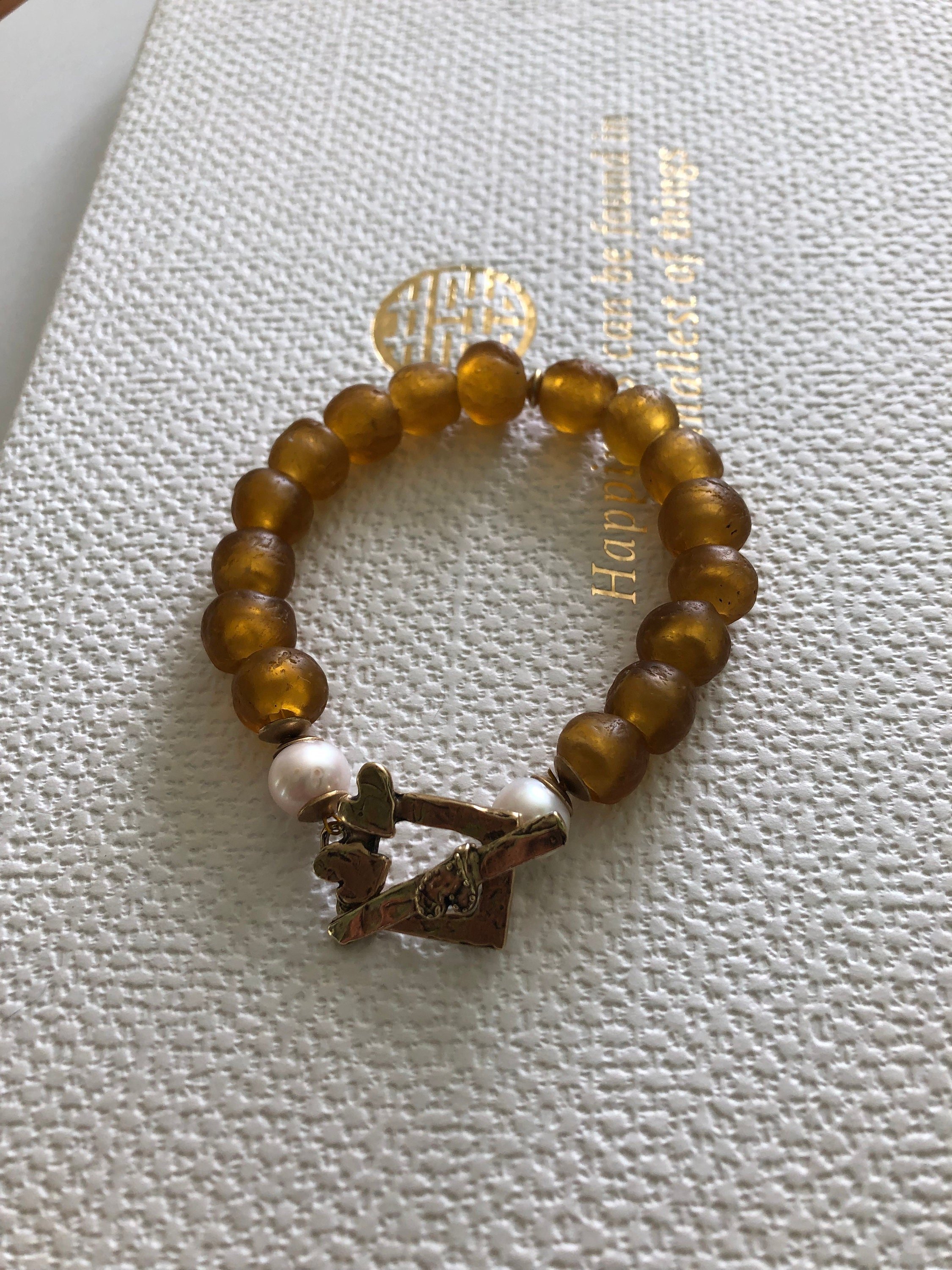 Superbes perles en verre recyclé africain ocre provenant directement du Ghana