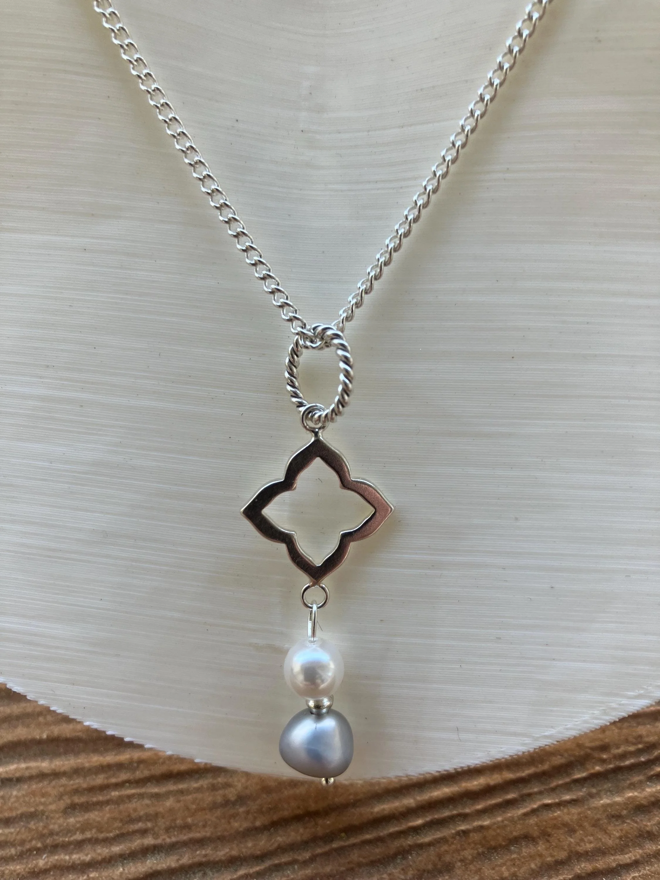 Magnifique parure chic minimaliste Composée D une chaîne fine en argent 925 avec apprêts anneaux et connecteur en argent Perles en nacre blanche Swarovski Et perles véritables d eau douce grises