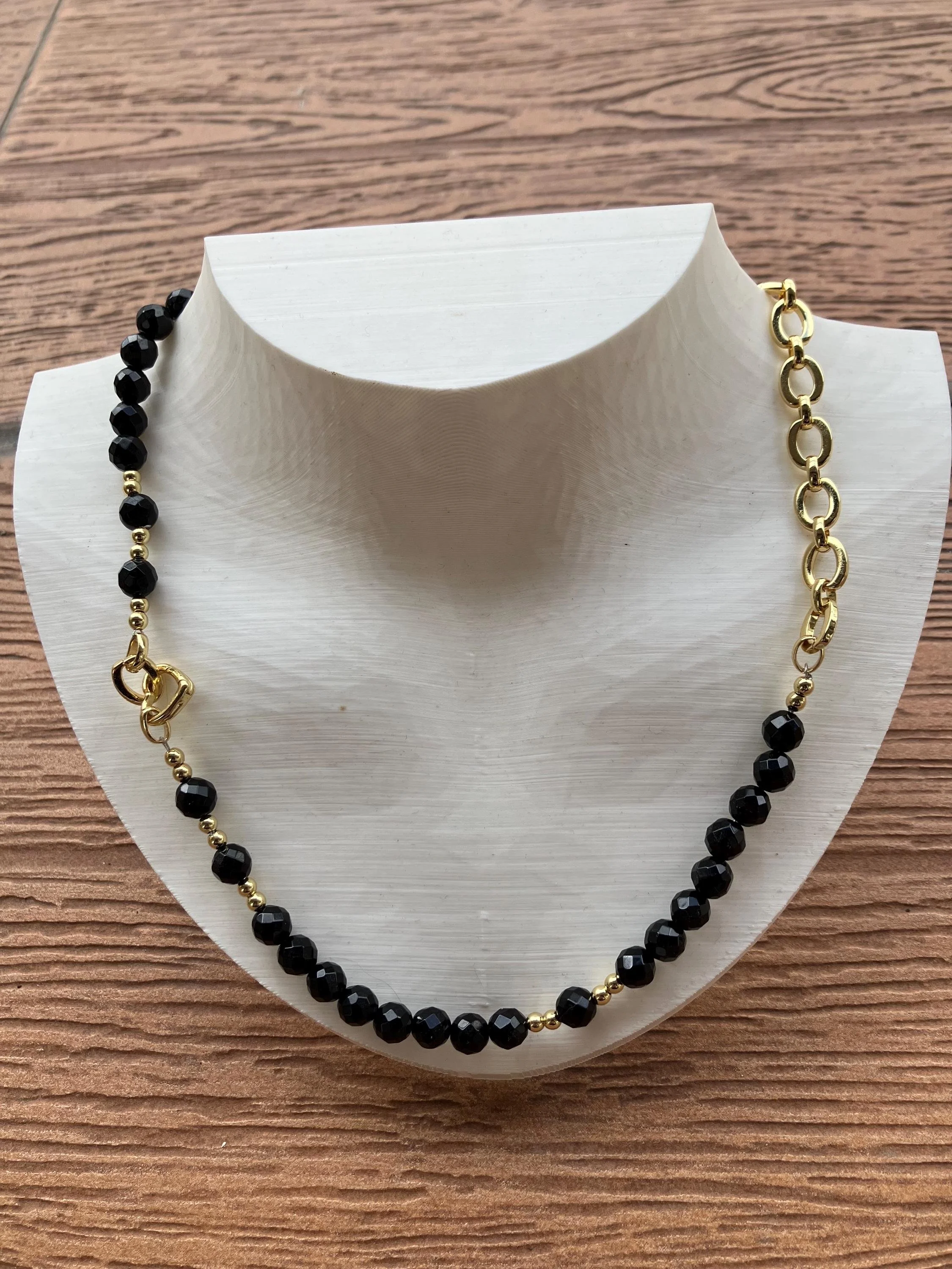 Cathynature-bijoux › collier original bi matière plaqué or et semi précieuse onyx noir facette Image 1 sur 4 Image 2 sur 4 Image 3 sur 4 Image 4 sur 4 collier original bi matière plaqué or et semi précieuse onyx noir facette 48,00 € Magnifique collier bi matière qui peut se porter de 2 façons Perles semi précieuse en onyx noir facette provenance Asie Maillons en plaqué or 18 carats Provenance USAConnecteur cœur Pressoir en plaqué or 18 carats Provenance USA Perles en plaqué or Provenance USA Acheter Ajout effectué ! Magnifique collier bi matière qui peut se porter de 2 façons Perles semi précieuse en onyx noir facette provenance Asie Maillons en plaqué or 18 carats Provenance USAConnecteur cœur Pressoir en plaqué or 18 carats Provenance USA Perles en plaqué or Provenance USA