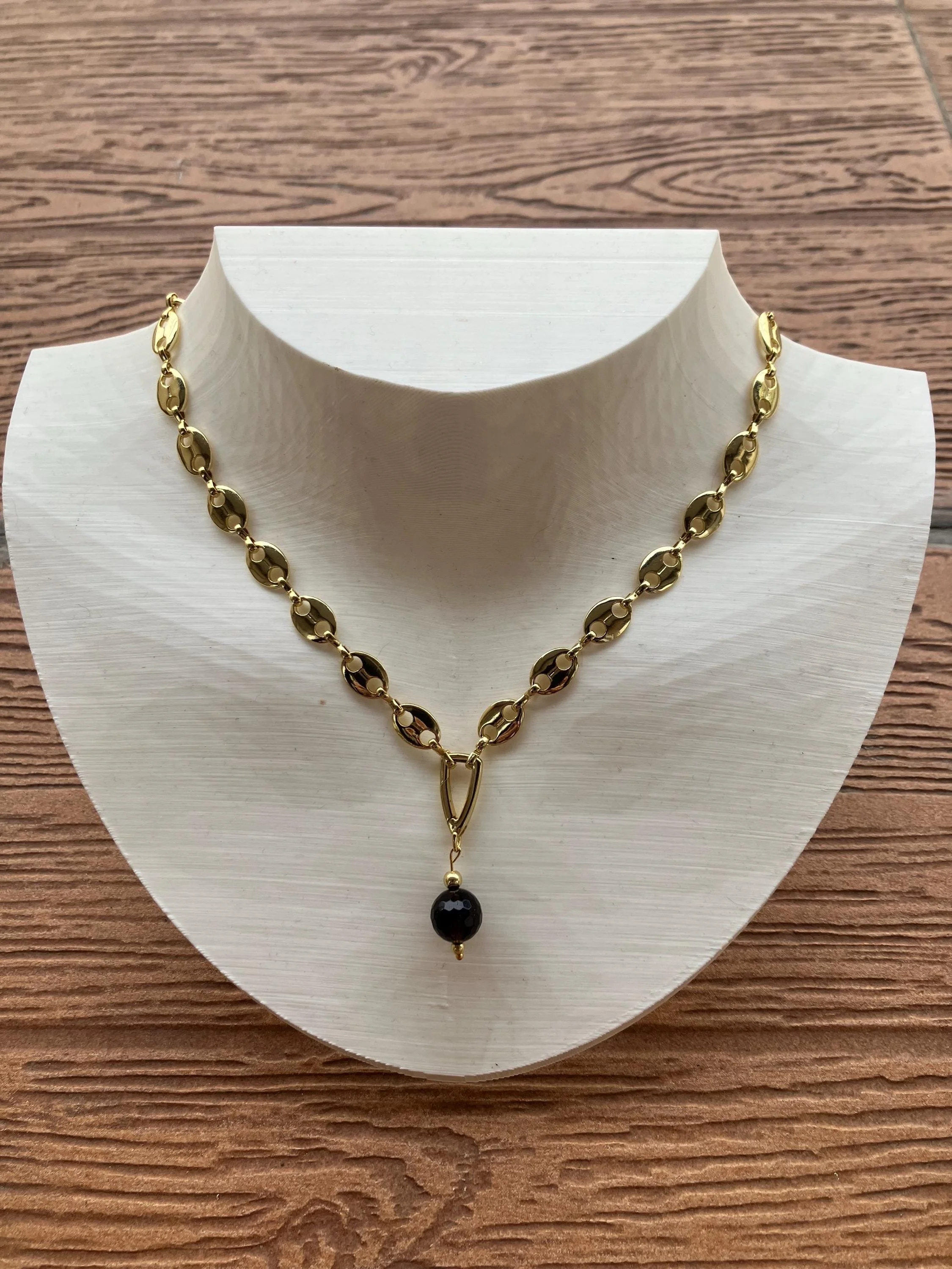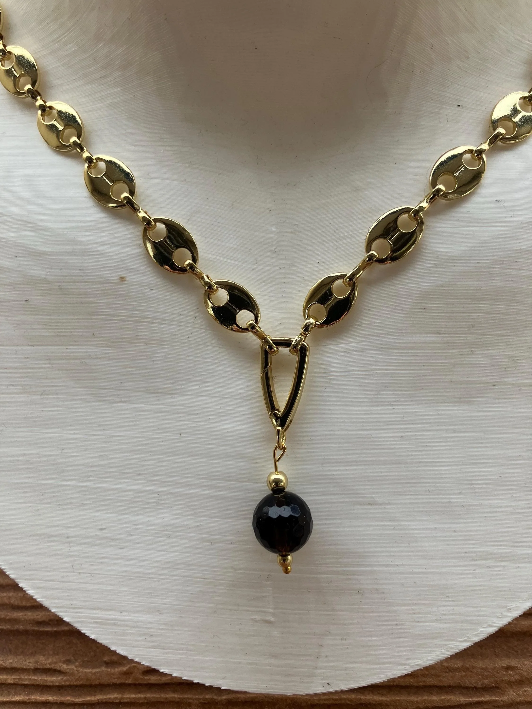 collier ras de cou moderne grain de café plaqué or et semi précieuse quartz fume facette