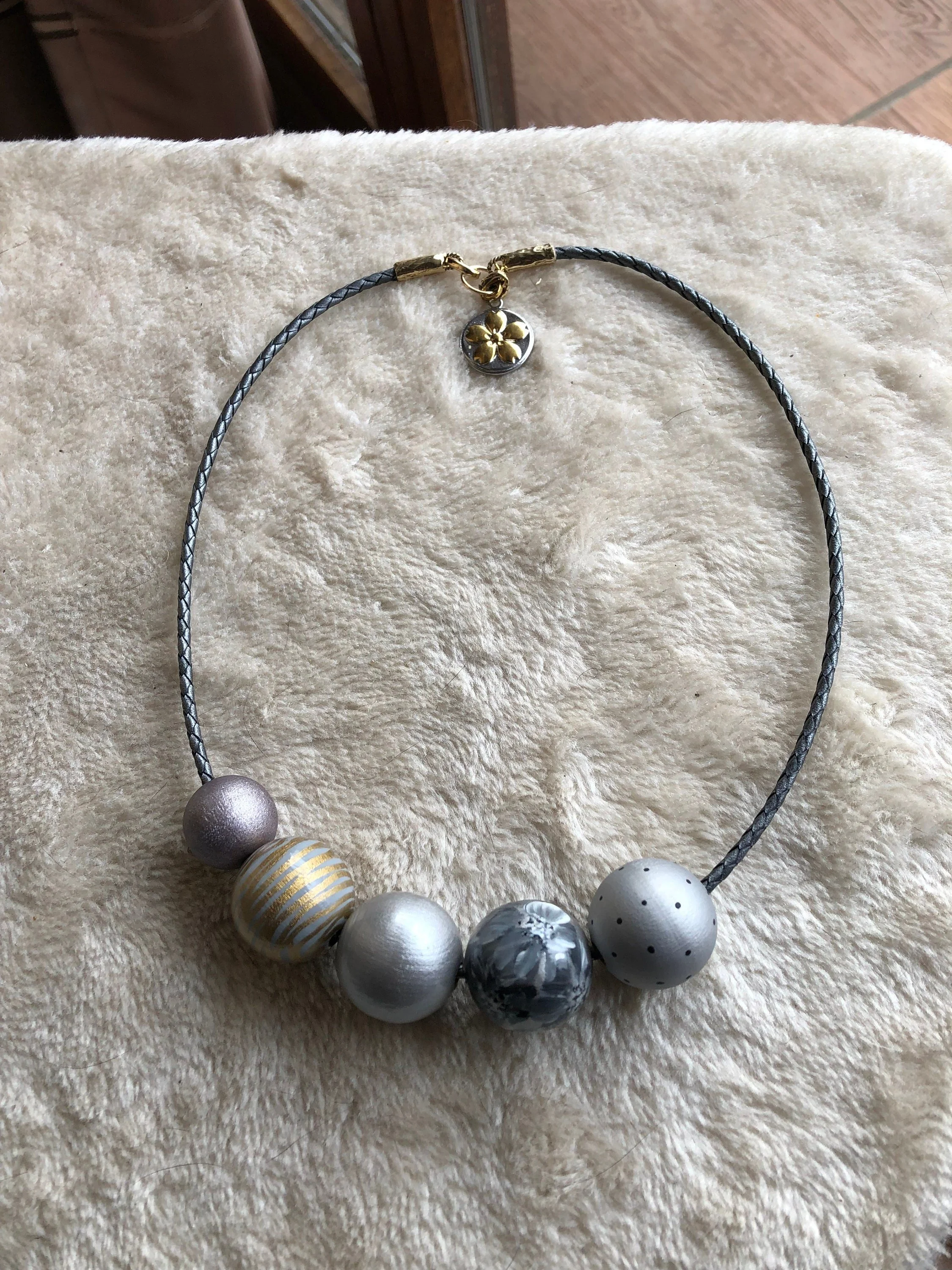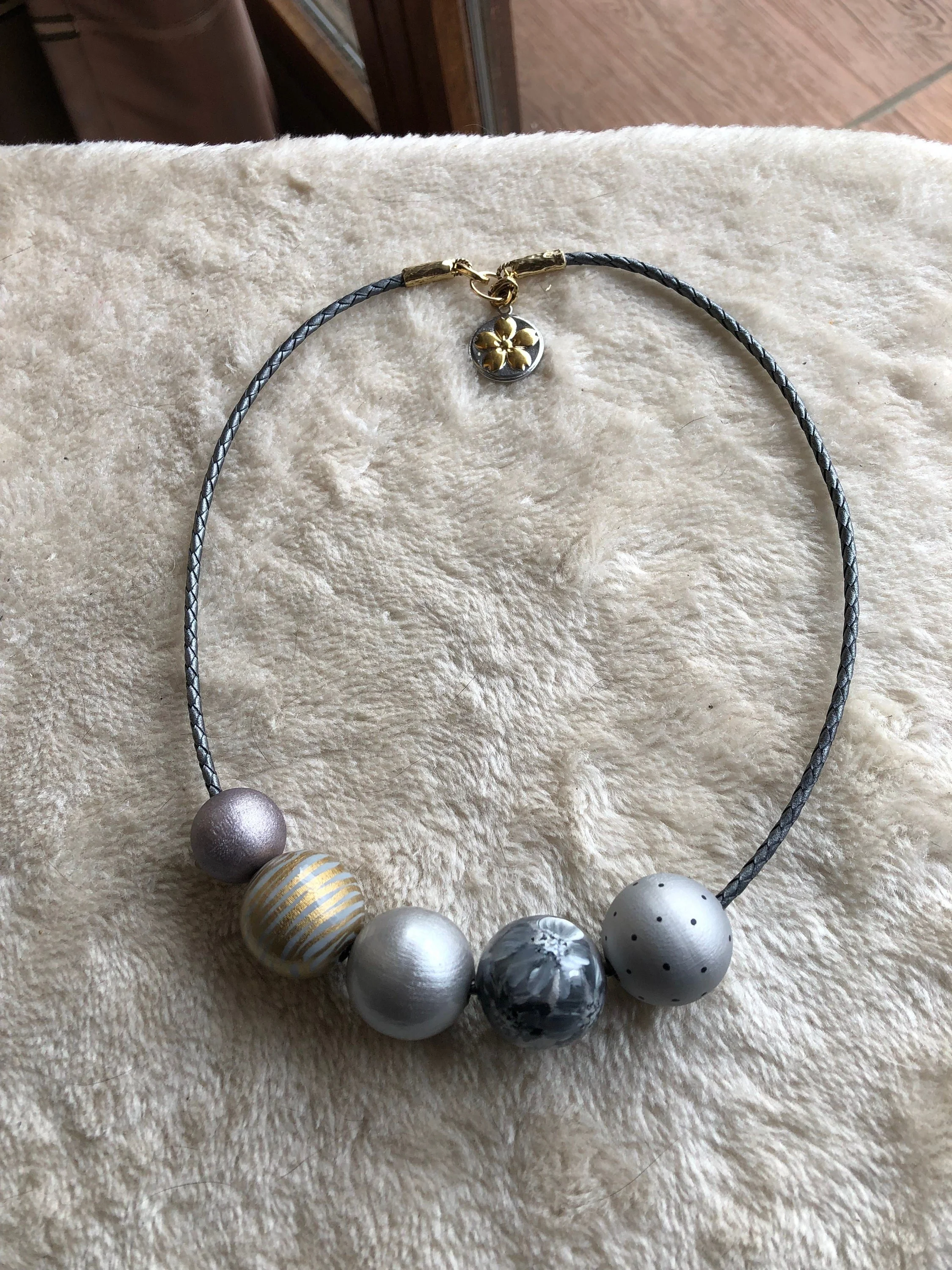 Cathynature-bijoux › CUIR - BRONZE - BOIS peint d art - collier chunky léger Image 1 sur 5 Image 2 sur 5 Image 3 sur 5 Image 4 sur 5 Image 5 sur 5 CUIR - BRONZE - BOIS peint d art - collier chunky léger 32,00 € épuisé Magnifique collier chunky léger de 52 cmArgent gris et or Composé d un cordon en cuir tressé de haute qualité européenne argent Magnifiques perles en bois peintes par une artiste slovène Embouts collier cuir en bronze artisan massif Anneau en bronze artisan Fermoir enAcier inoxydable Charm rond fleur argent or en acier inoxydable Fait son effet porte Idéal sur tenue de Noël Modèle unique Épuisé Ajout effectué ! Magnifique collier chunky léger de 52 cmArgent gris et or Composé d un cordon en cuir tressé de haute qualité européenne argent Magnifiques perles en bois peintes par une artiste slovène Embouts collier cuir en bronze artisan massif Anneau en bronze artisan Fermoir enAcier inoxydable Charm rond fleur argent or en acier inoxydable Fait son effet porte Idéal sur tenue de Noël Modèle unique