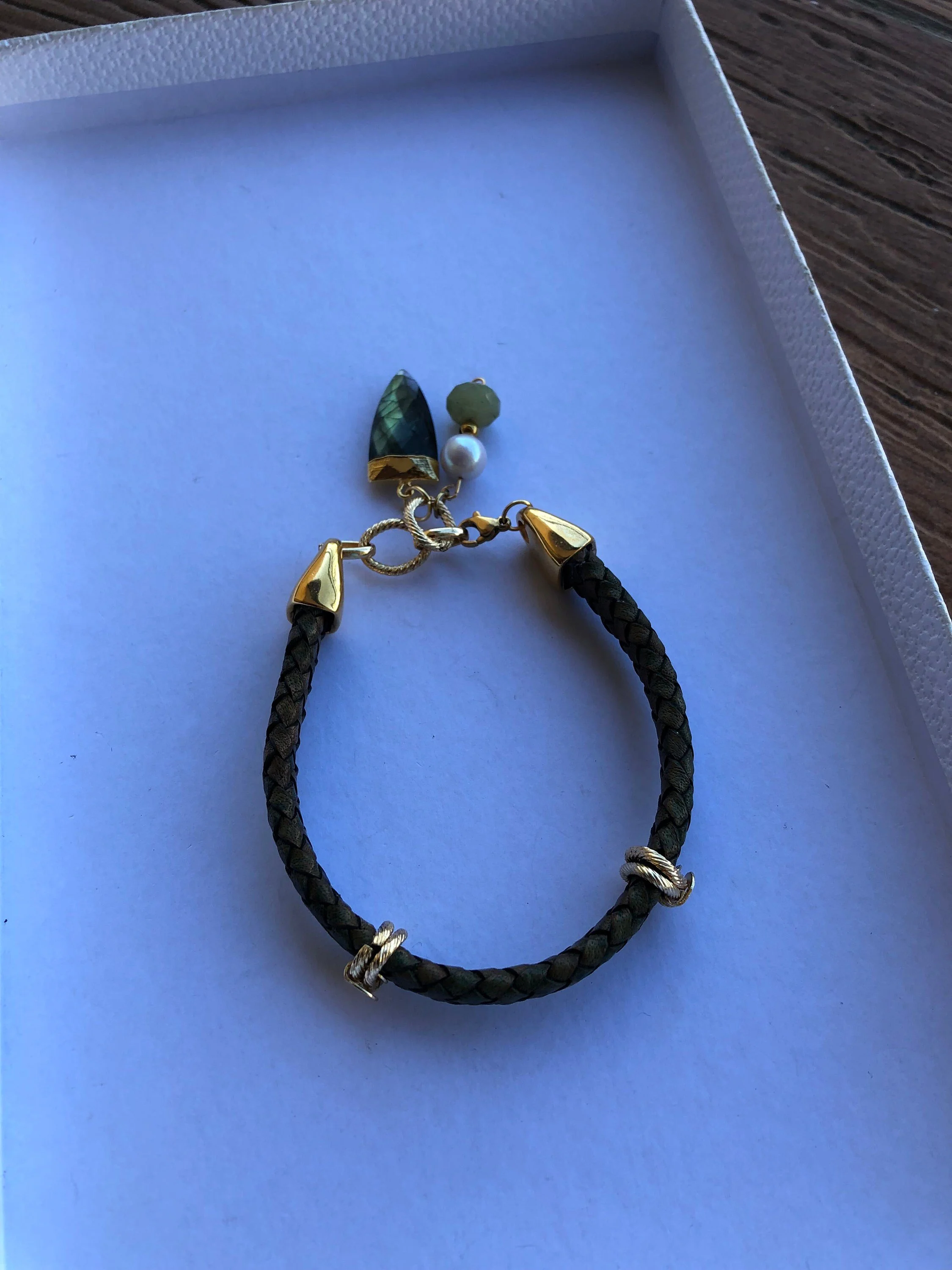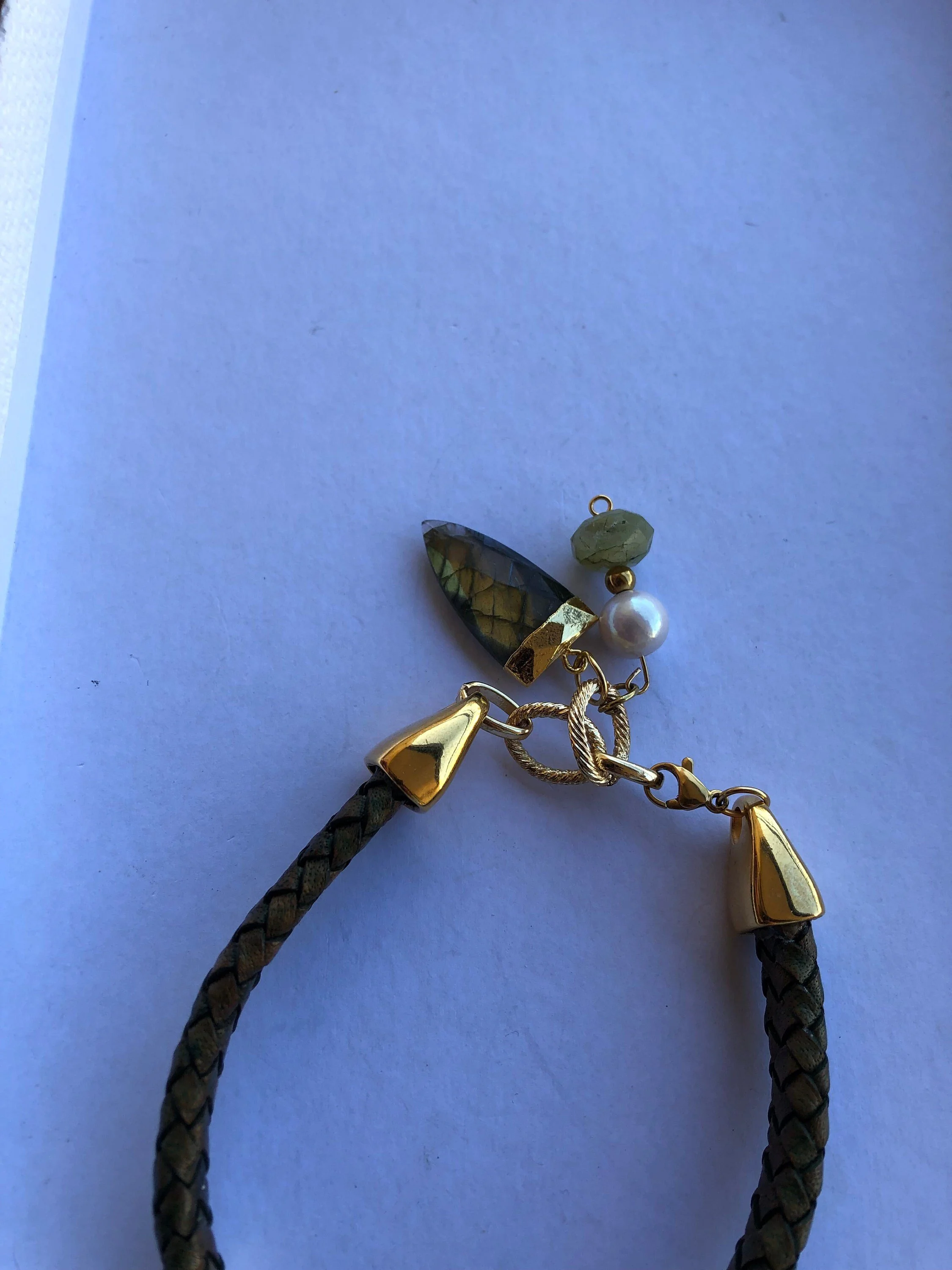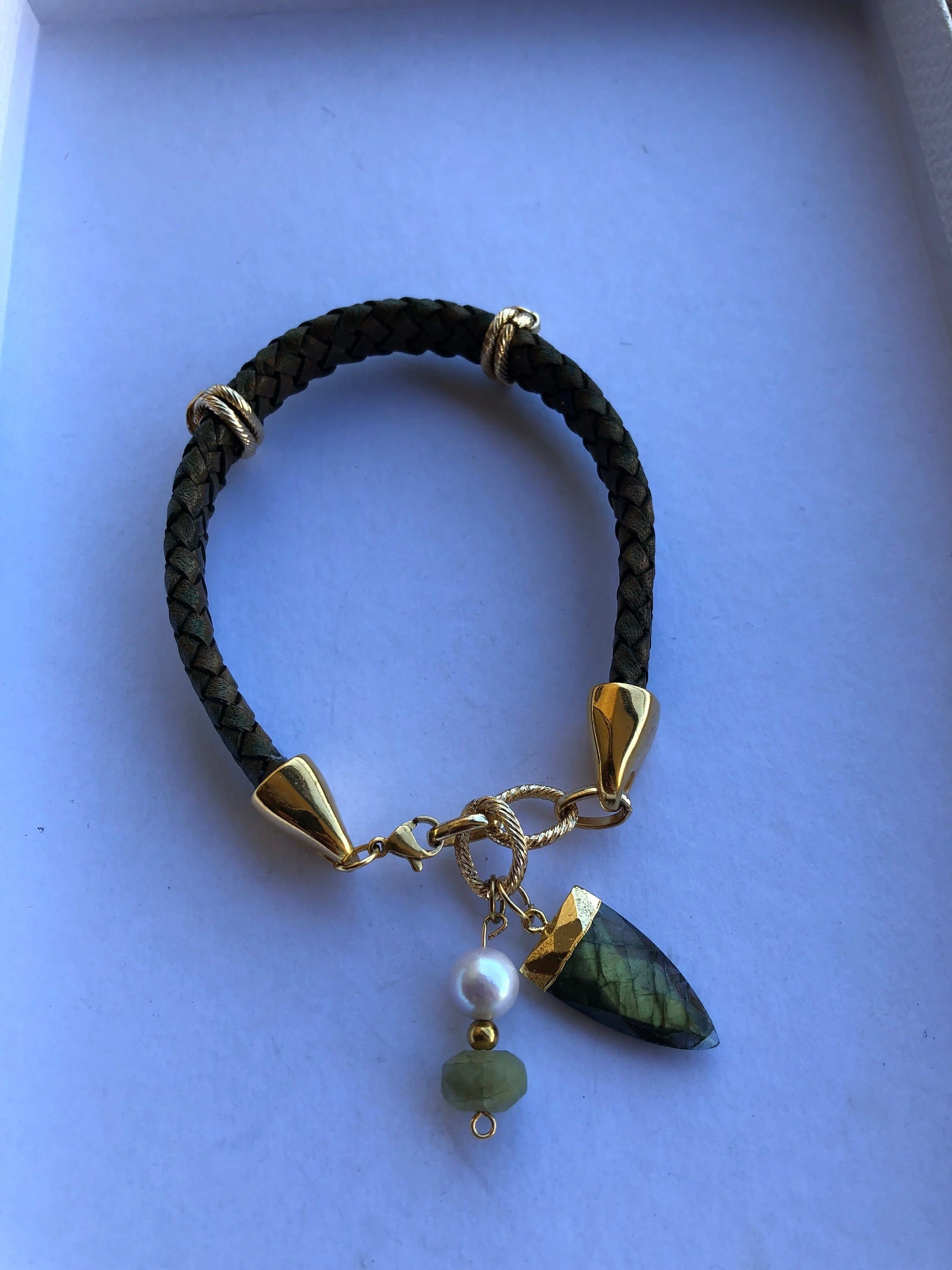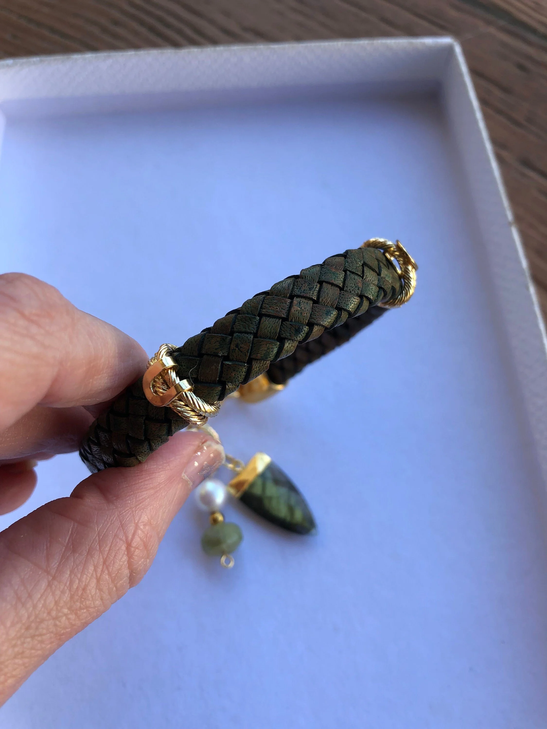 CUIR tressé, EDISON, LABRADORITE aiguë marine, bracelet chic en cuir vintage