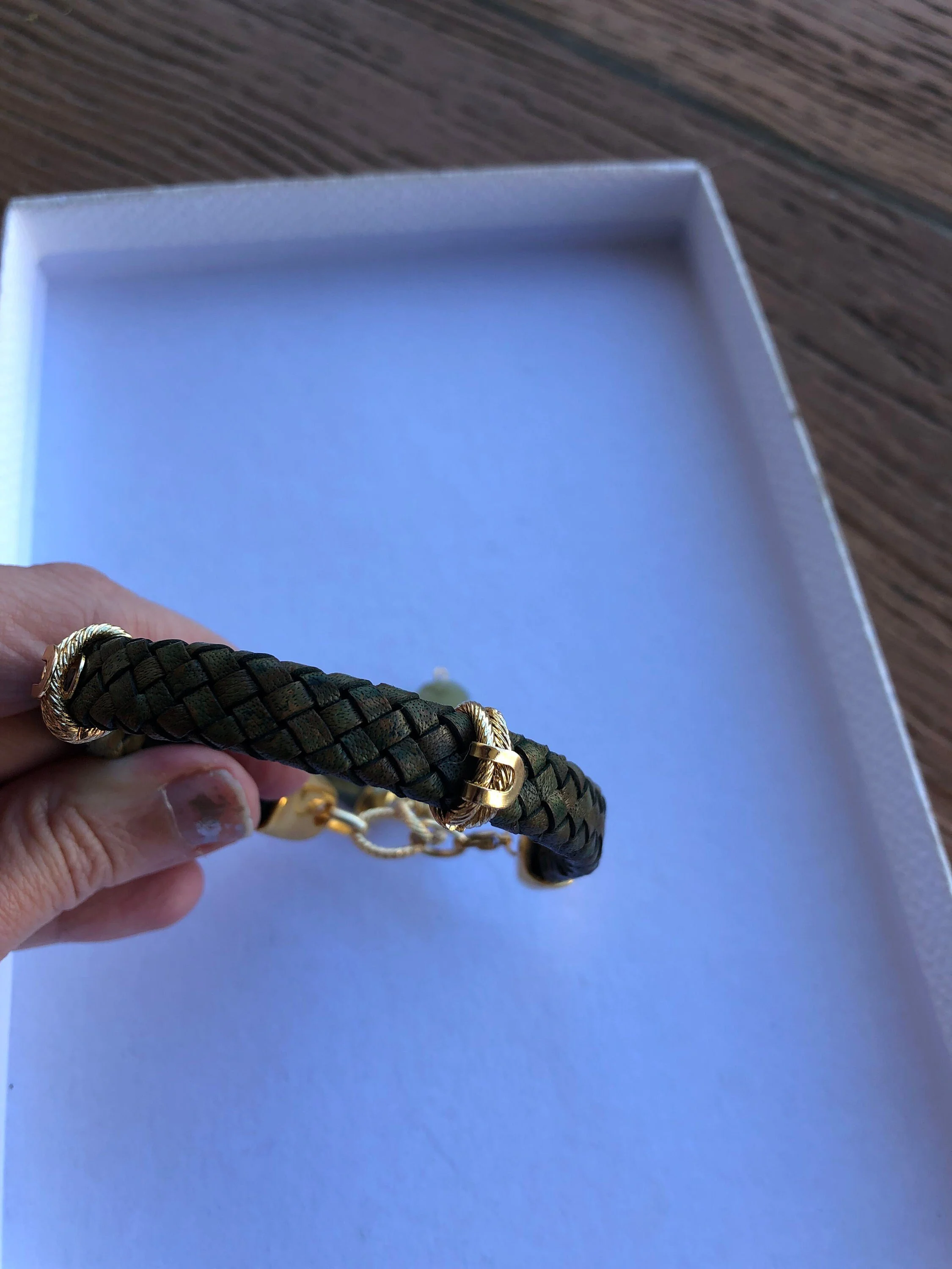 - d un cordon plat en cuir tressé de haute qualité vintage vert mordoré de 10 mm
