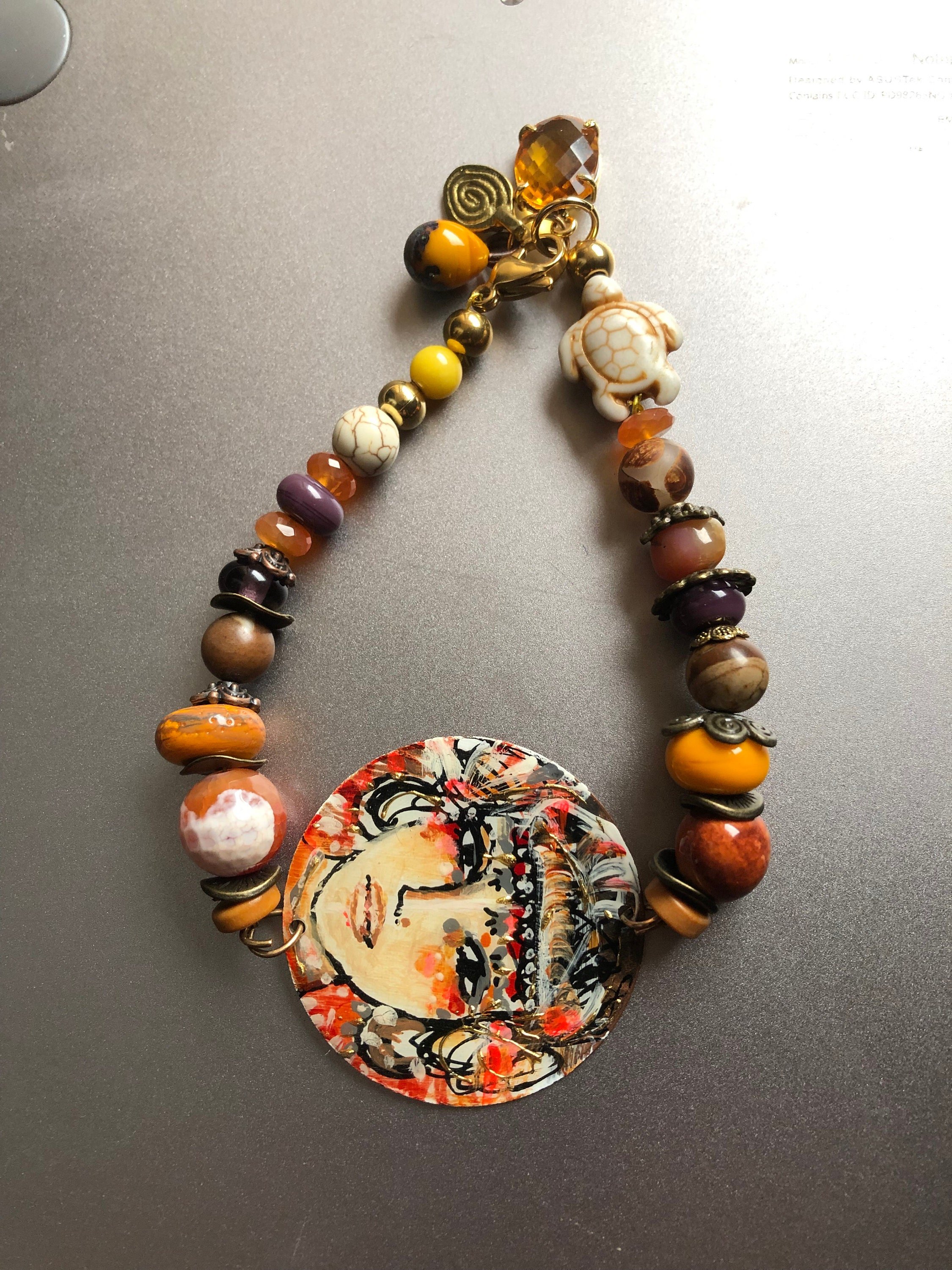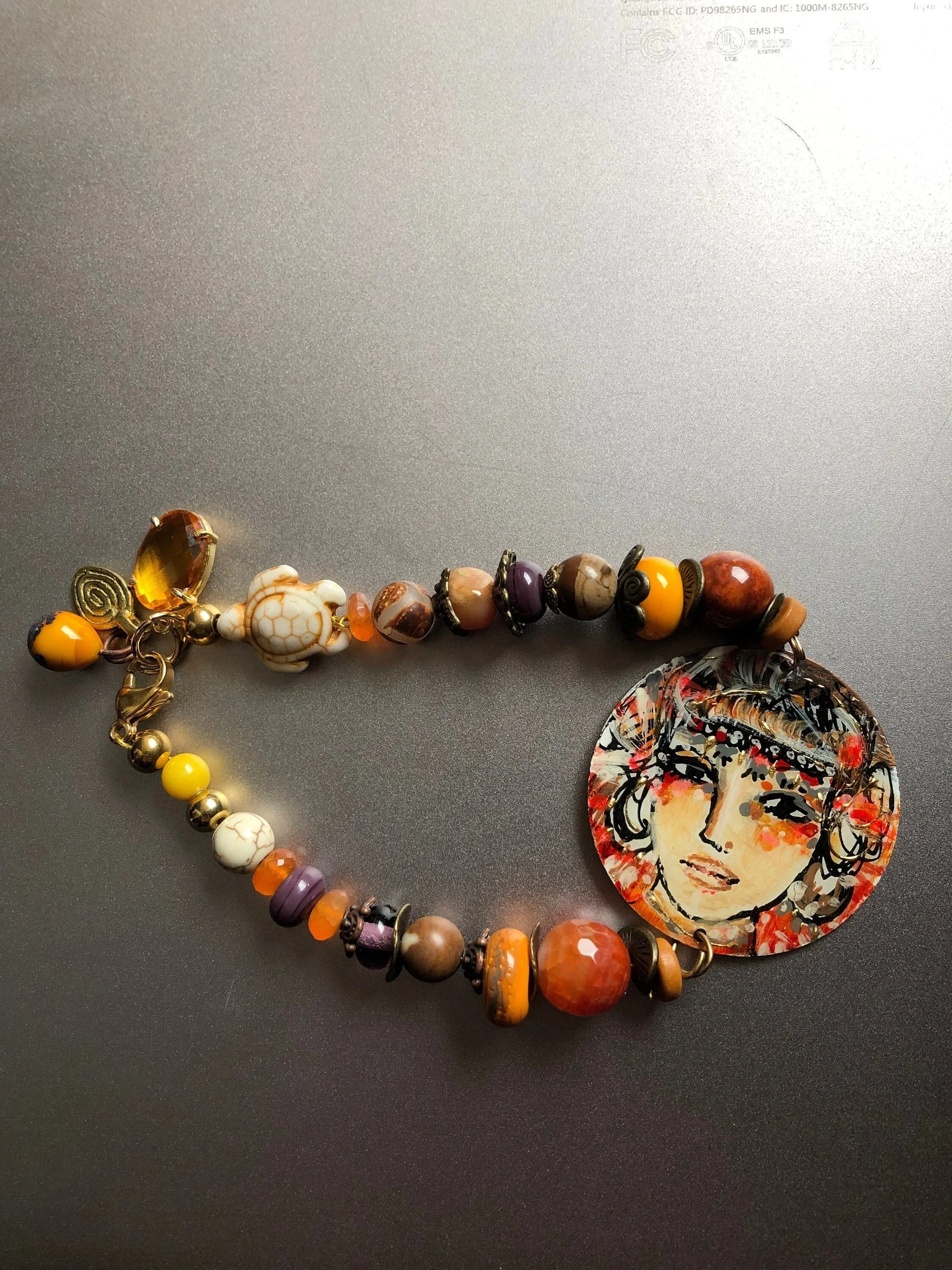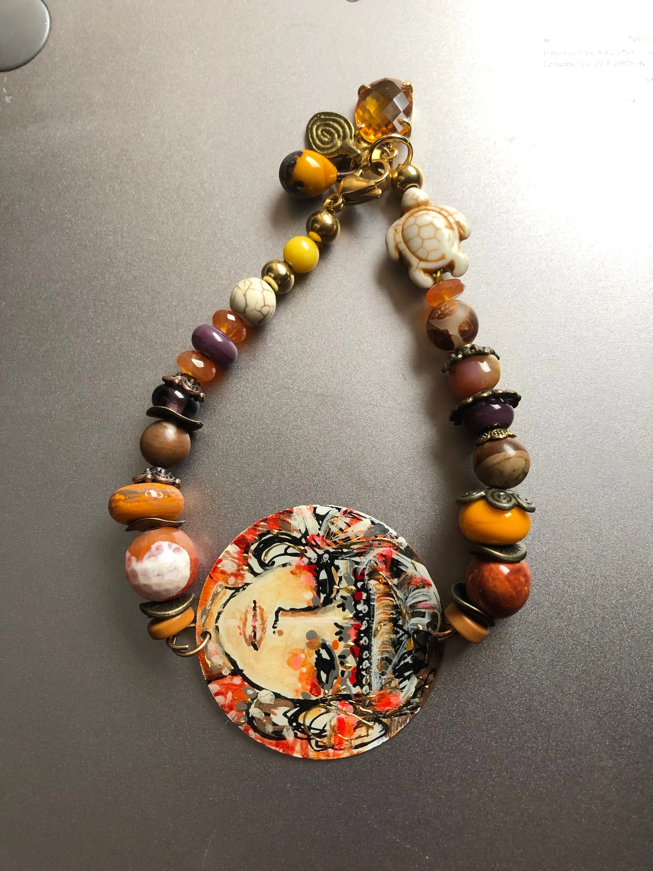 CUIVRE D ART - Bracelet bohème chic semi précieuse et verre file d art