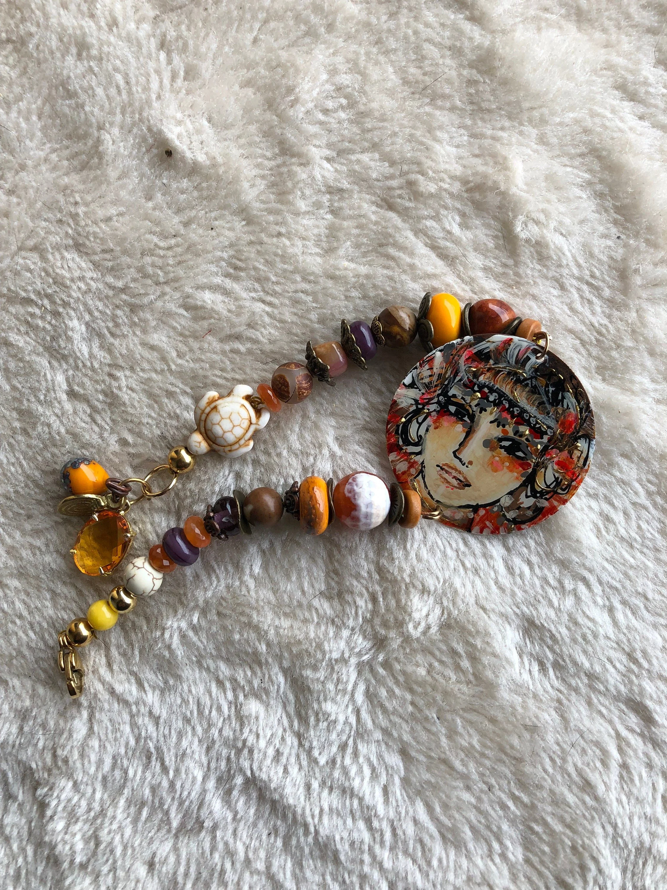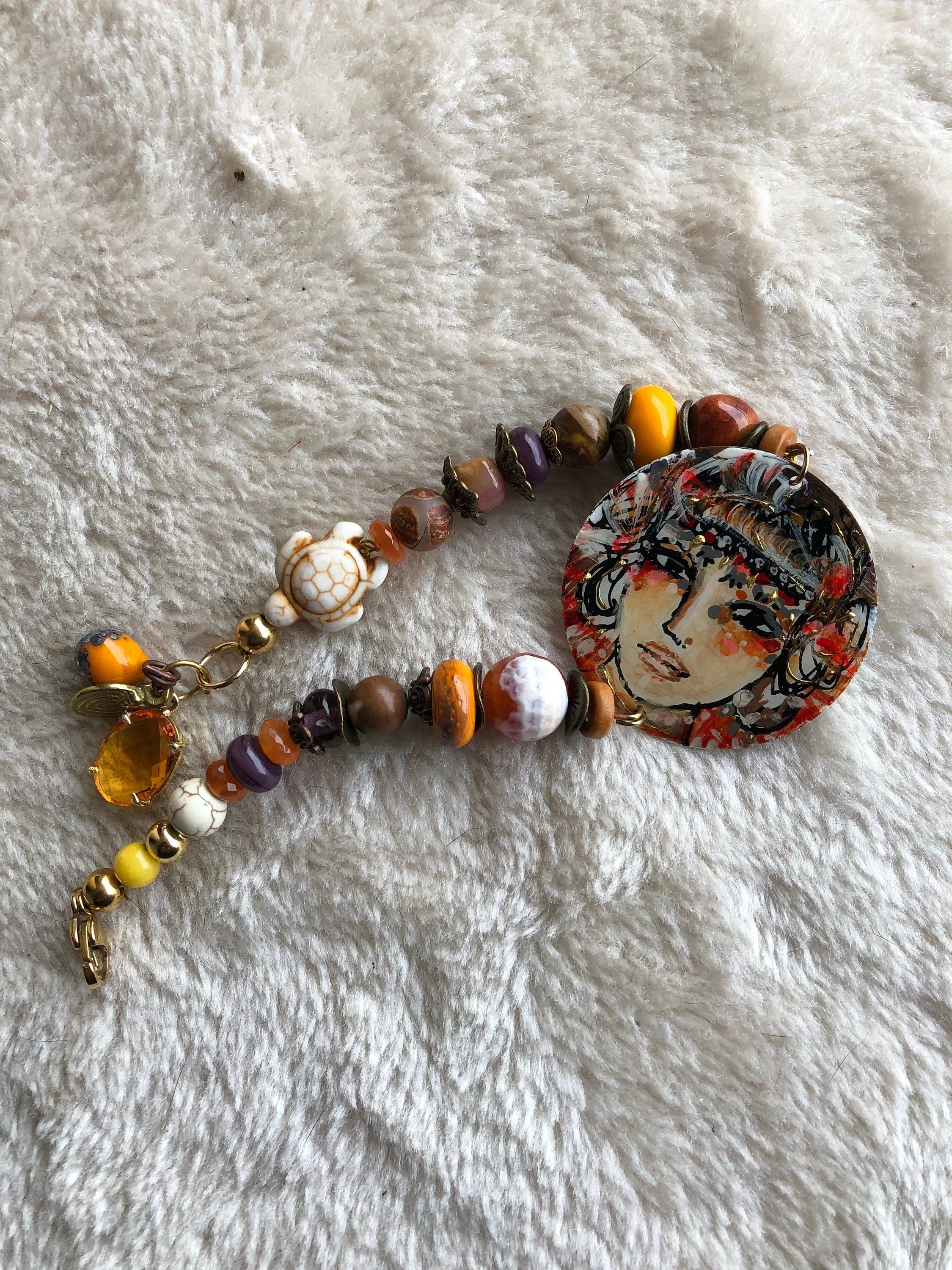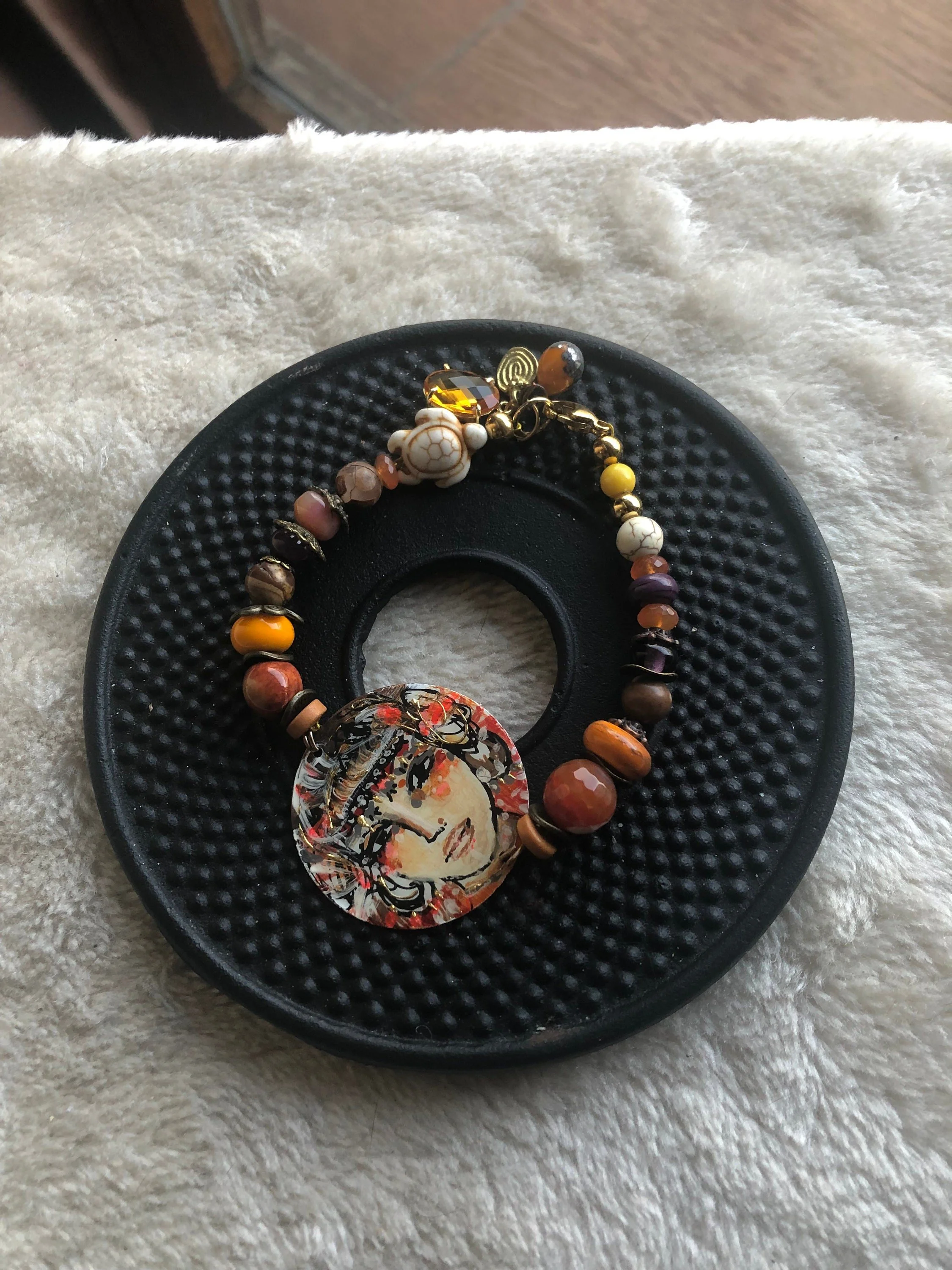CUIVRE D ART - Bracelet bohème chic semi précieuse et verre file d art