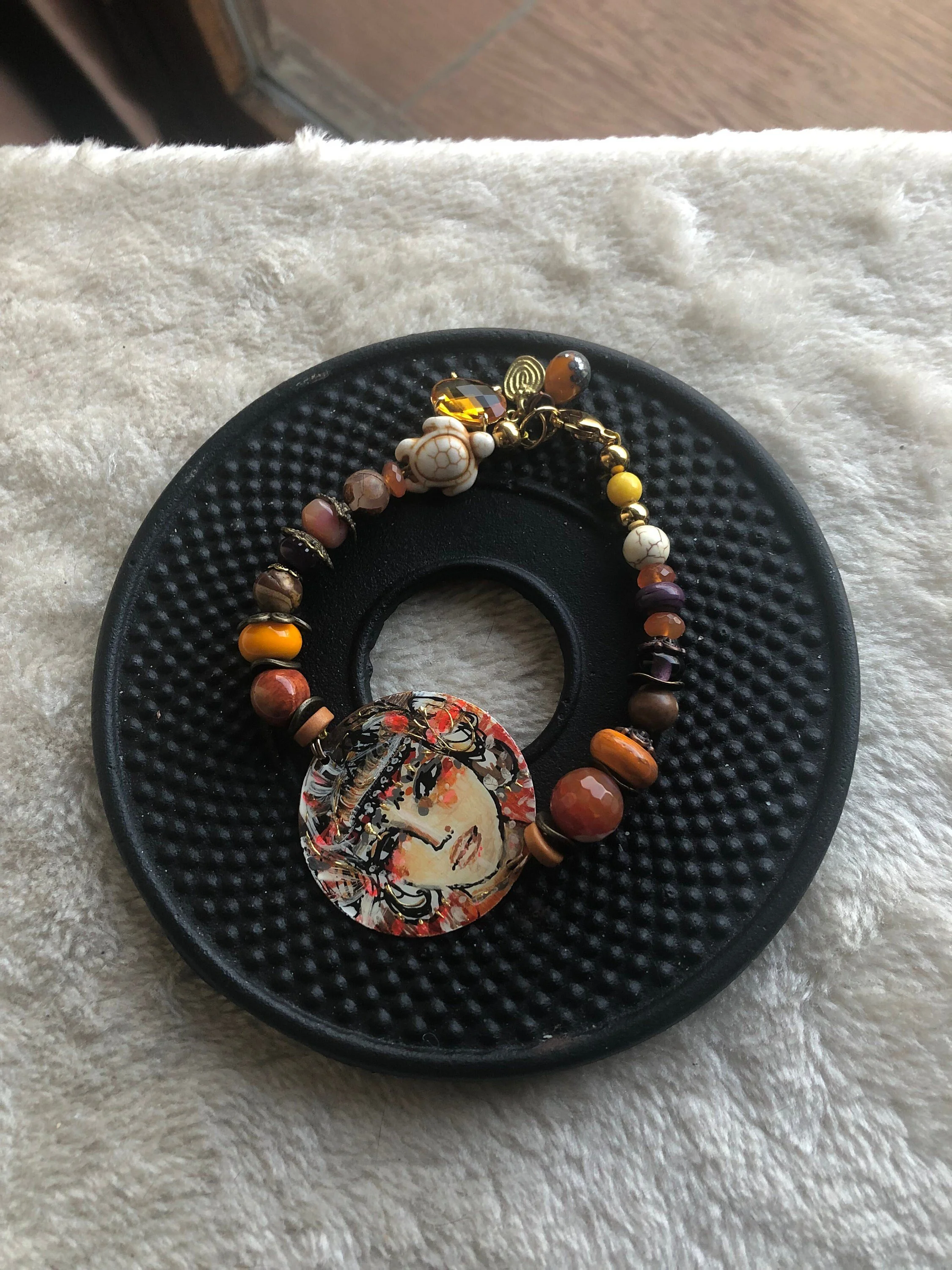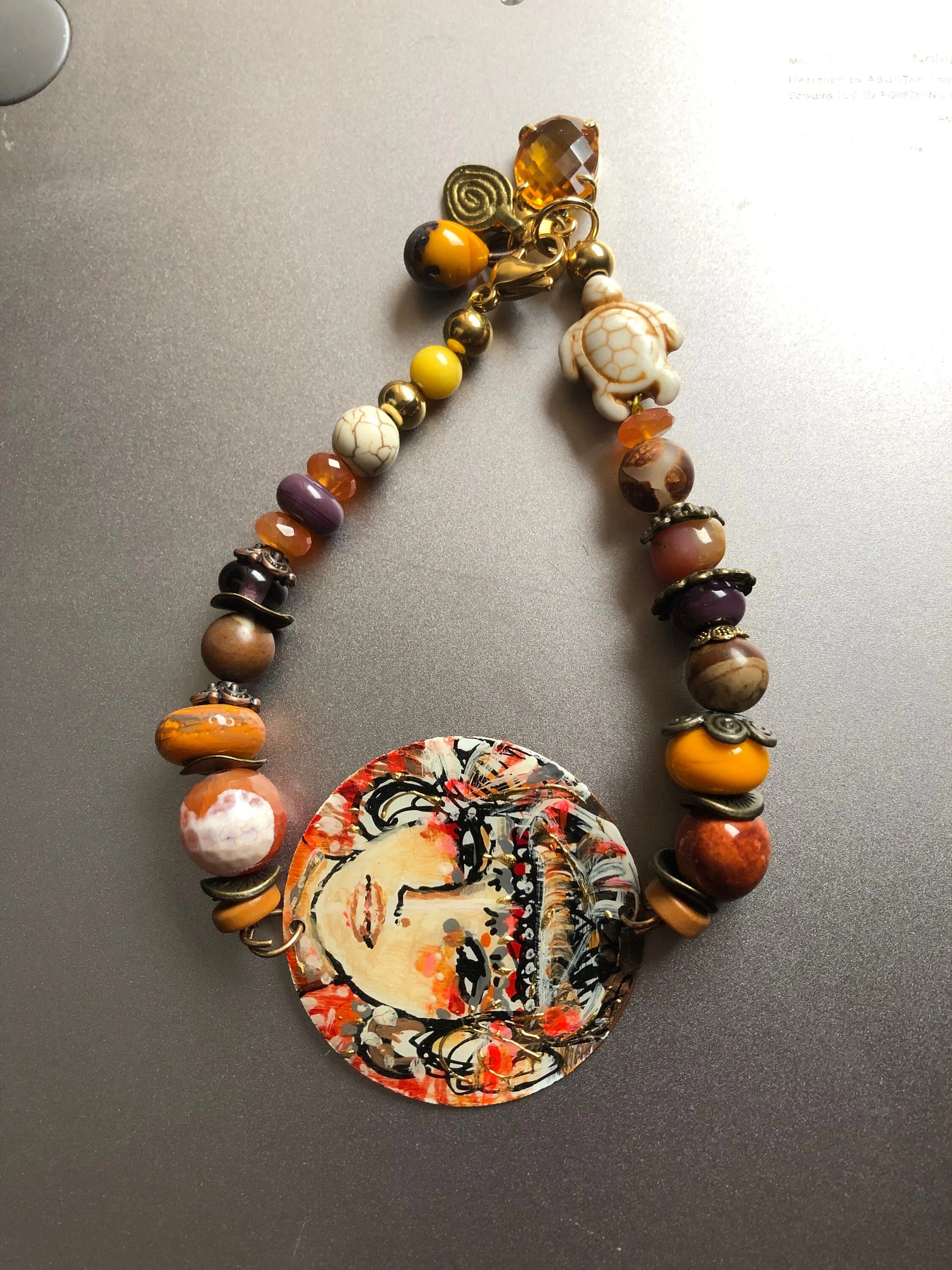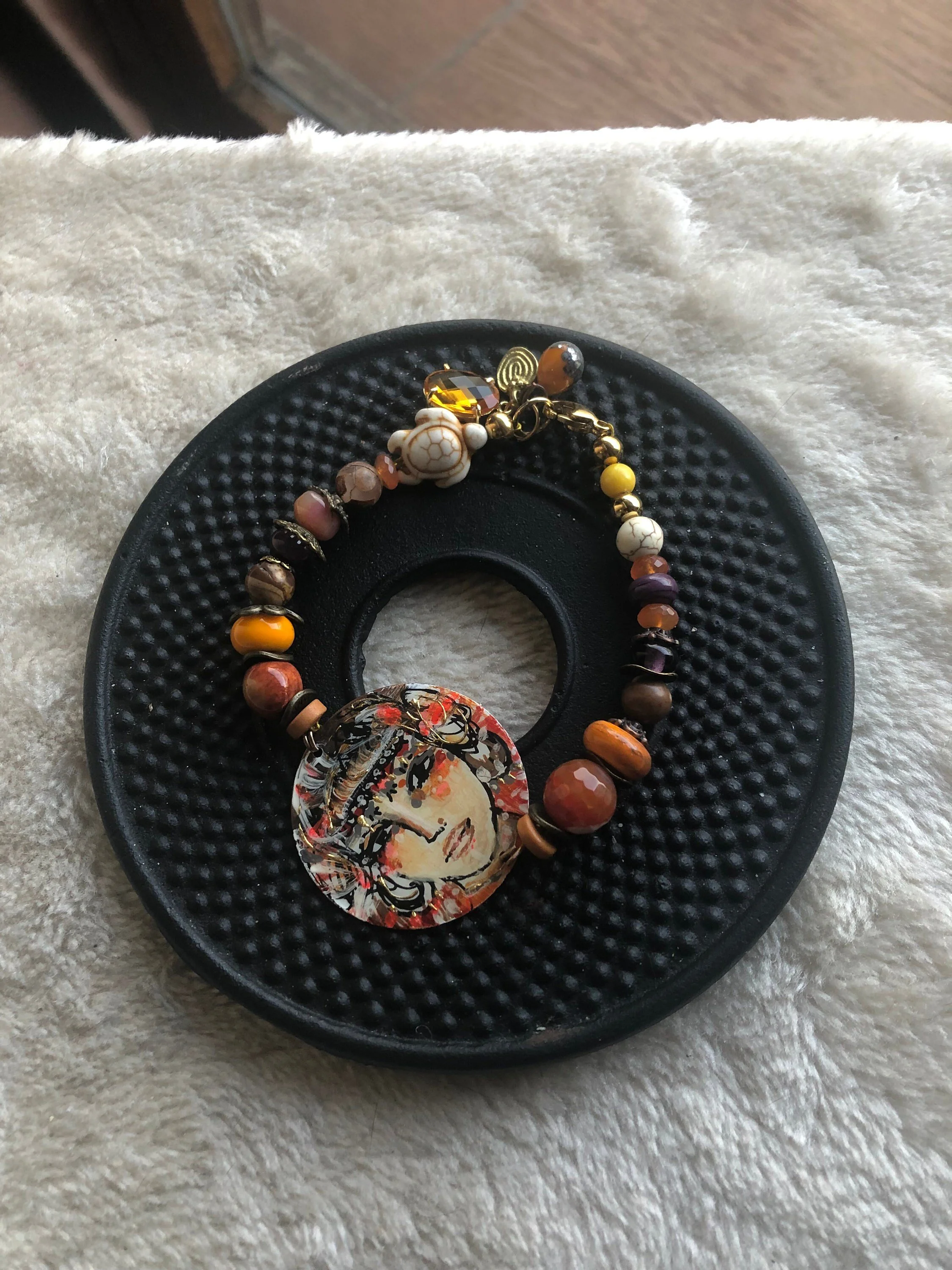 Cathynature-bijoux › CUIVRE D ART - Bracelet bohème chic semi précieuse et verre file d art Image 1 sur 9 Image 2 sur 9 Image 3 sur 9 Image 4 sur 9 Image 5 sur 9 Image 6 sur 9 Image 7 sur 9 Image 8 sur 9 Image 9 sur 9 CUIVRE D ART - Bracelet bohème chic semi précieuse et verre file d art 35,00 € épuisé Bracelet très original de 22 cm Extraordinaire connecteur central d art en cuivre émaillé peint réalisé par Naelatelier Perles en verre d art ocre Perles semi précieuse en cornaline, rhodochrosite, agate tibétaine Perles en bois Perles en verre jaune indien Perle en céramique cuite Perles rondes en acier inoxydable Perle naturelle howlite ivoire Tortue en howlite ivoire Fermoir homard en acier inoxydable Charm plaque or et verre Charm ethnique en laiton massif Charm grelin en verre file ocre Modèle unique Très lumineux convient à un poignet large Épuisé Ajout effectué ! Bracelet très original de 22 cm Extraordinaire connecteur central d art en cuivre émaillé peint réalisé par Naelatelier Perles en verre d art ocre Perles semi précieuse en cornaline, rhodochrosite, agate tibétaine Perles en bois Perles en verre jaune indien Perle en céramique cuite Perles rondes en acier inoxydable Perle naturelle howlite ivoire Tortue en howlite ivoire Fermoir homard en acier inoxydable Charm plaque or et verre Charm ethnique en laiton massif Charm grelin en verre file ocre Modèle unique Très lumineux convient à un poignet large