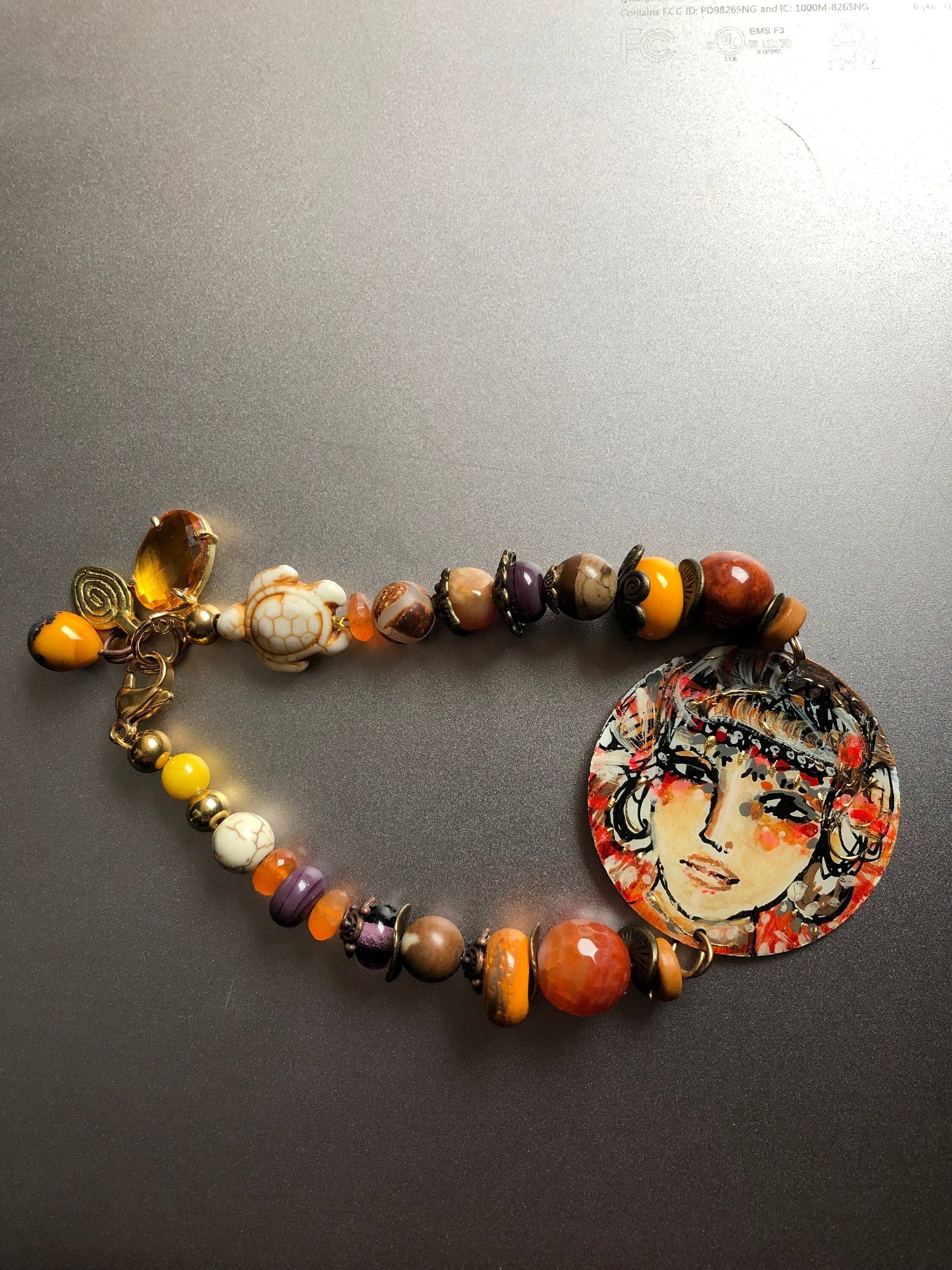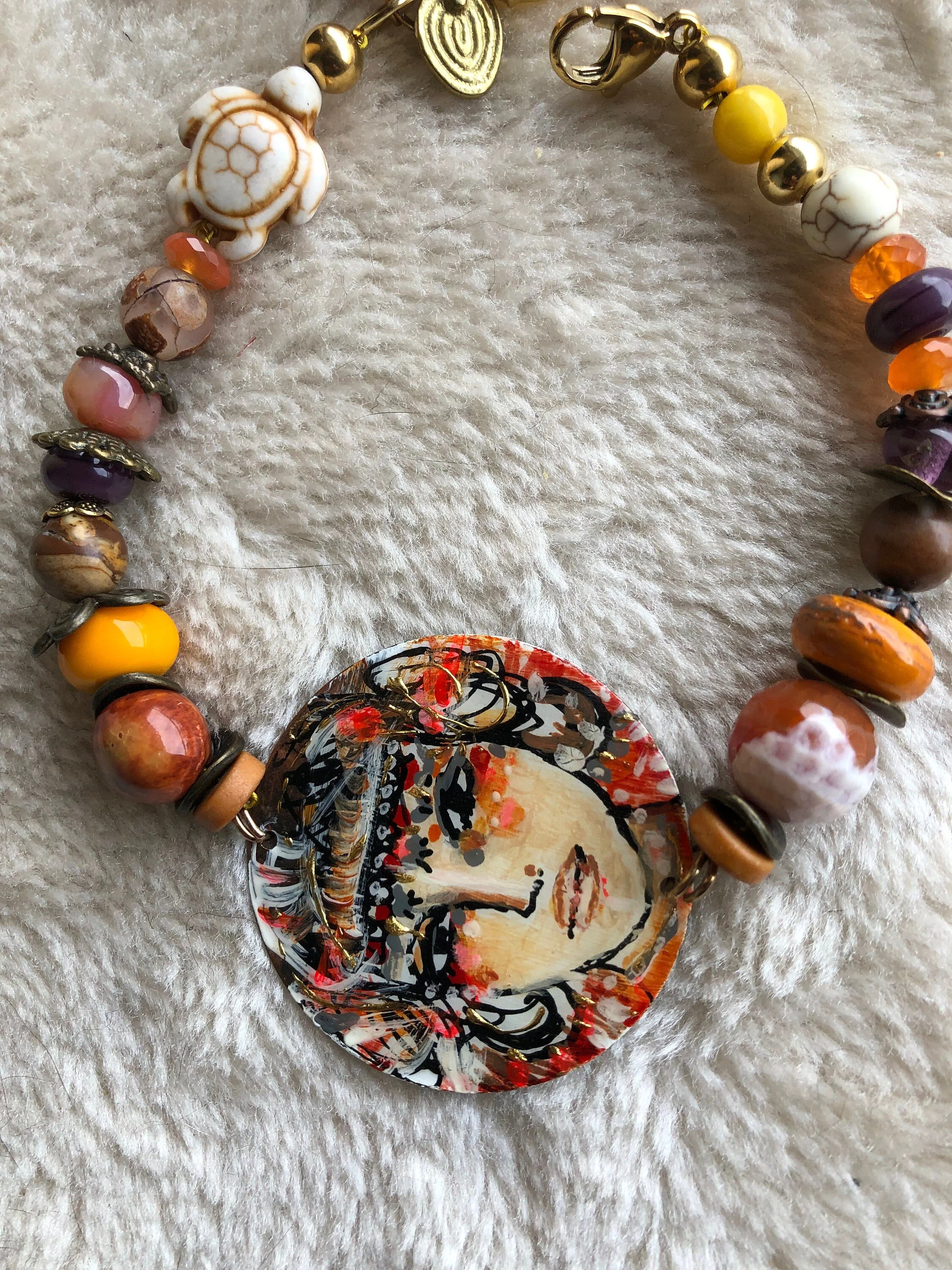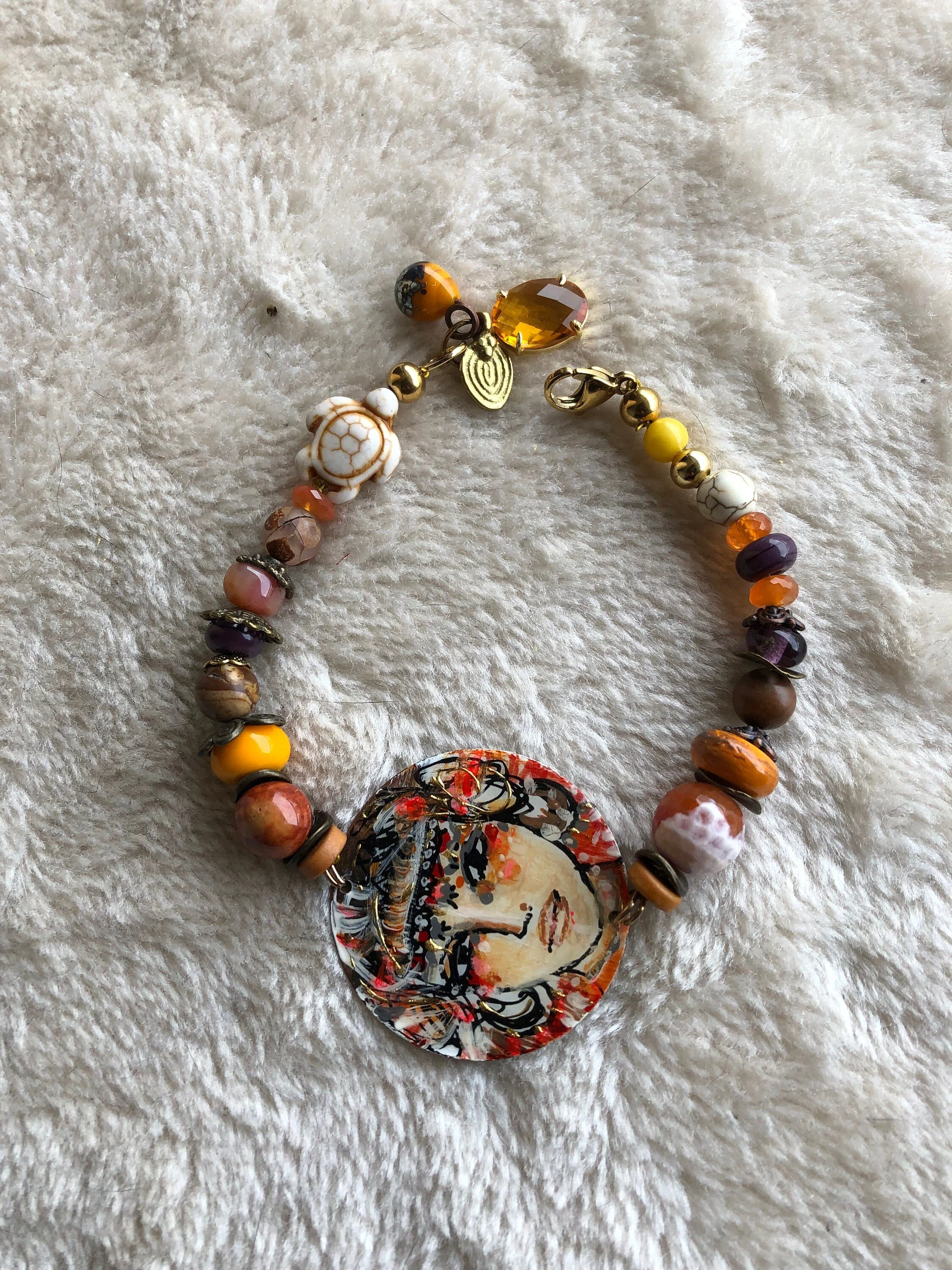 Cathynature-bijoux › CUIVRE D ART - Bracelet bohème chic semi précieuse et verre file d art Image 1 sur 9 Image 2 sur 9 Image 3 sur 9 Image 4 sur 9 Image 5 sur 9 Image 6 sur 9 Image 7 sur 9 Image 8 sur 9 Image 9 sur 9 CUIVRE D ART - Bracelet bohème chic semi précieuse et verre file d art 35,00 € épuisé Bracelet très original de 22 cm Extraordinaire connecteur central d art en cuivre émaillé peint réalisé par Naelatelier Perles en verre d art ocre Perles semi précieuse en cornaline, rhodochrosite, agate tibétaine Perles en bois Perles en verre jaune indien Perle en céramique cuite Perles rondes en acier inoxydable Perle naturelle howlite ivoire Tortue en howlite ivoire Fermoir homard en acier inoxydable Charm plaque or et verre Charm ethnique en laiton massif Charm grelin en verre file ocre Modèle unique Très lumineux convient à un poignet large Épuisé Ajout effectué ! Bracelet très original de 22 cm Extraordinaire connecteur central d art en cuivre émaillé peint réalisé par Naelatelier Perles en verre d art ocre Perles semi précieuse en cornaline, rhodochrosite, agate tibétaine Perles en bois Perles en verre jaune indien Perle en céramique cuite Perles rondes en acier inoxydable Perle naturelle howlite ivoire Tortue en howlite ivoire Fermoir homard en acier inoxydable Charm plaque or et verre Charm ethnique en laiton massif Charm grelin en verre file ocre Modèle unique Très lumineux convient à un poignet large