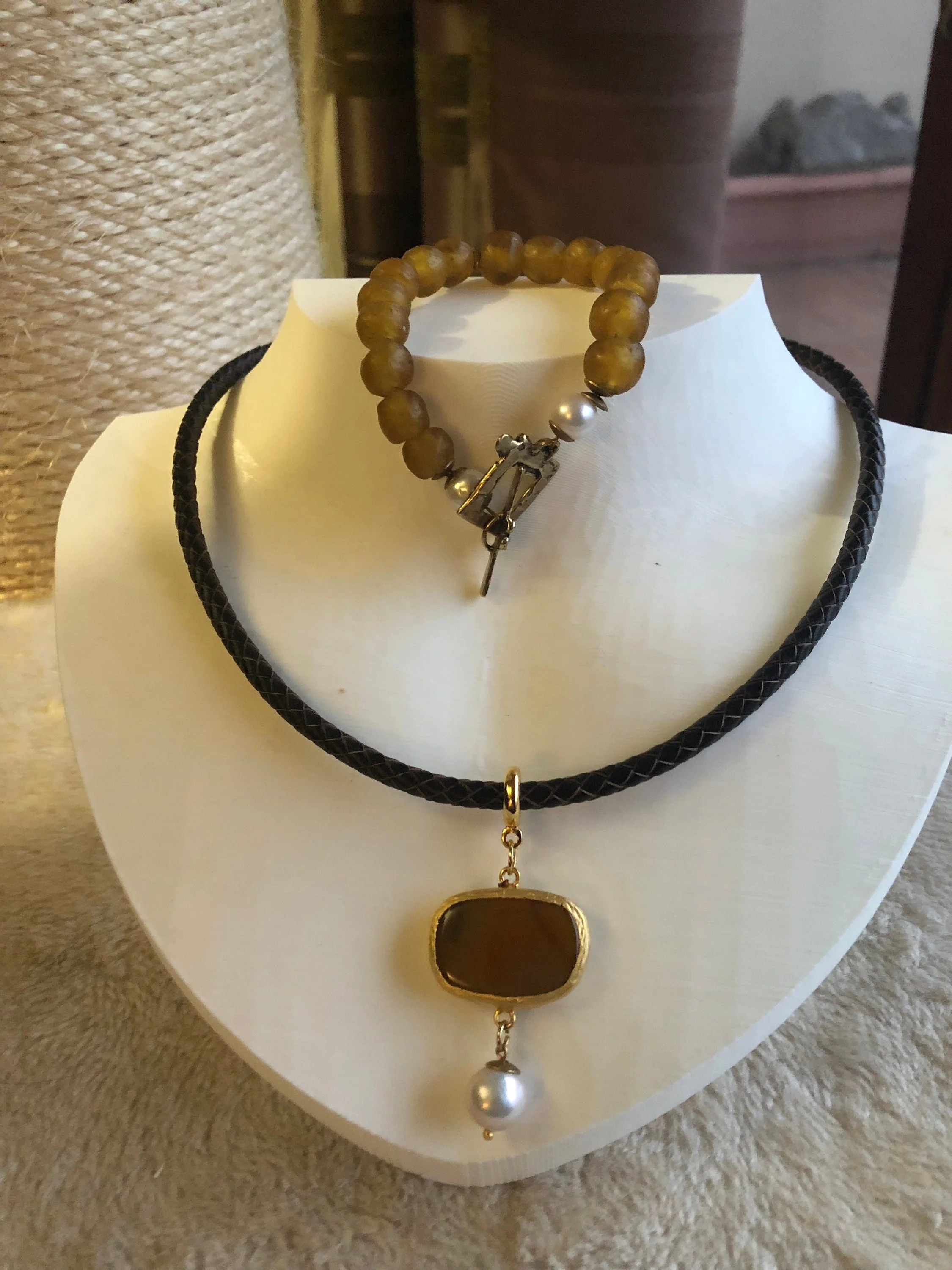 Cathynature-bijoux › EDISON Pearl & leather - collier cuir, semi précieuse et perle de culture Image 1 sur 7 Image 2 sur 7 Image 3 sur 7 Image 4 sur 7 Image 5 sur 7 Image 6 sur 7 Image 7 sur 7 EDISON Pearl & leather - collier cuir, semi précieuse et perle de culture 48,00 € épuisé Magnifique collier composé D un cordon de qualité européenne en cuivr véritable tresse marron brun D apprêts en acier inoxydable Perles en laiton brut plaque or Magnifique connecteur en laiton brut plaque or comportant une sublime perle en agate naturelle Perle de culture EDISON de 11 mmFermoir toggle carré original en plaqué orTrès chic Je vous propose de l associer à un des bracelets que j ai crée disponible également sur ma boutique pour une parure complète (achat séparé)Modèle unique Épuisé Ajout effectué ! Magnifique collier composé D un cordon de qualité européenne en cuivr véritable tresse marron brun D apprêts en acier inoxydable Perles en laiton brut plaque or Magnifique connecteur en laiton brut plaque or comportant une sublime perle en agate naturelle Perle de culture EDISON de 11 mmFermoir toggle carré original en plaqué orTrès chic Je vous propose de l associer à un des bracelets que j ai crée disponible également sur ma boutique pour une parure complète (achat séparé)Modèle unique
