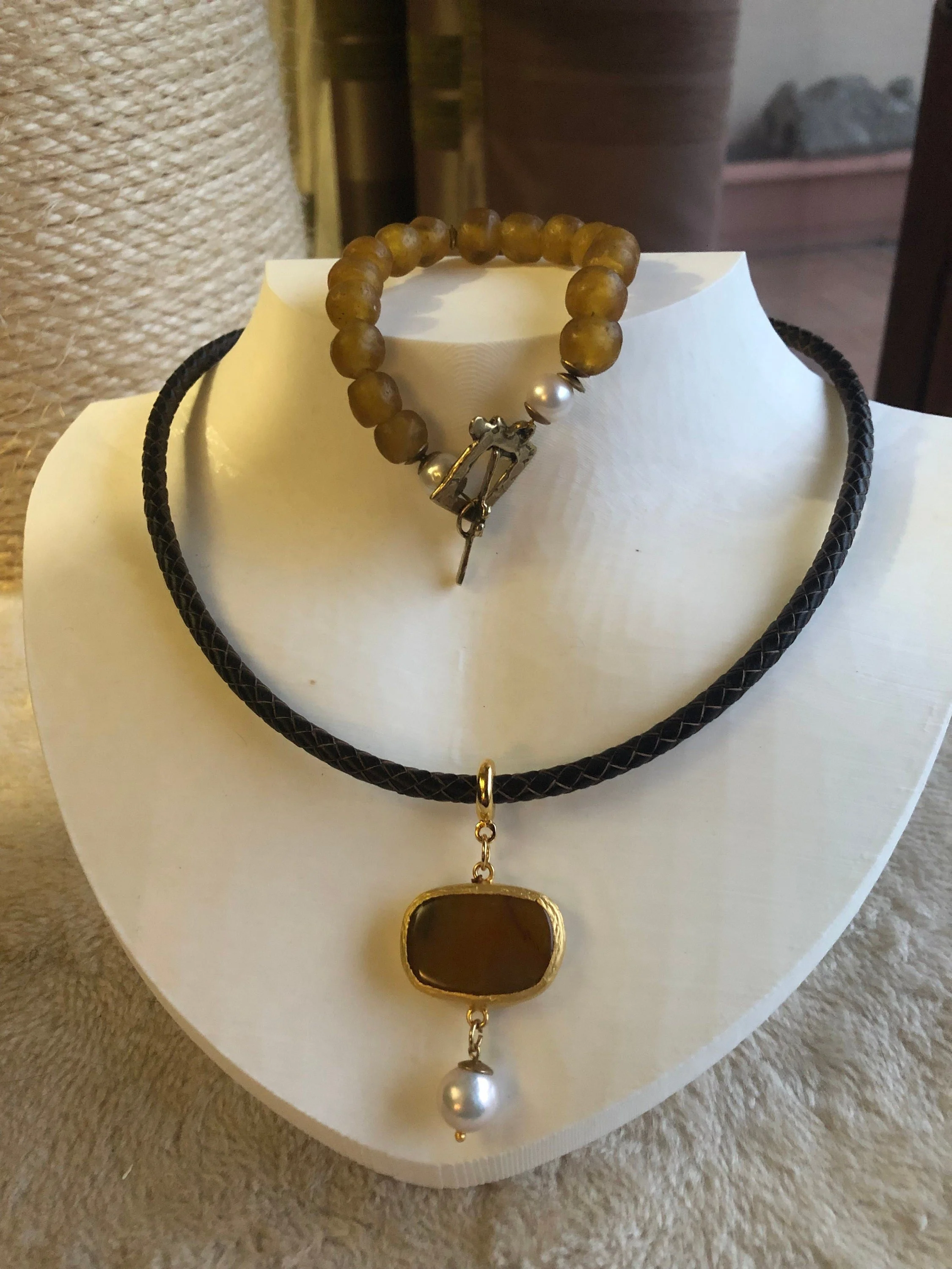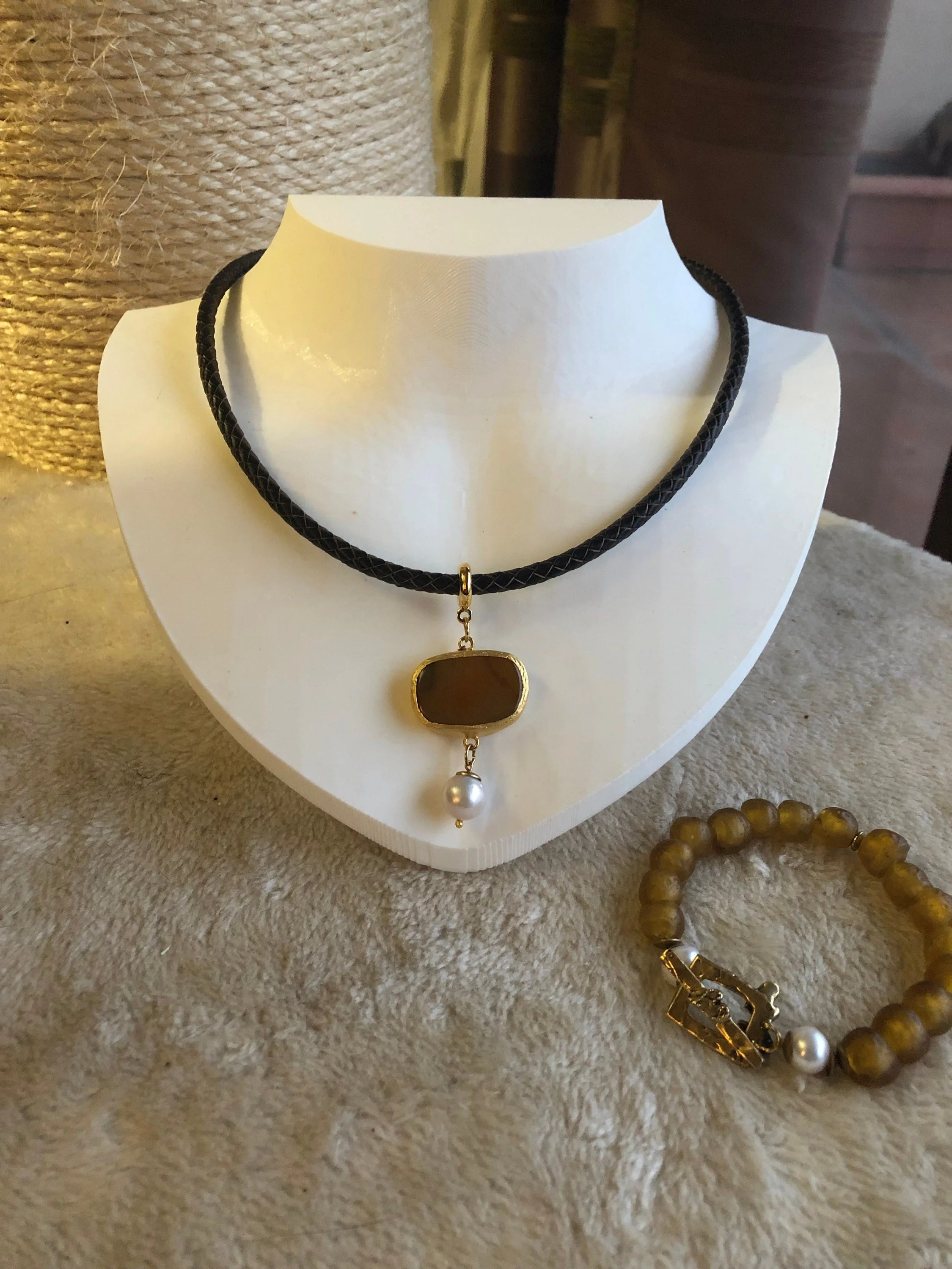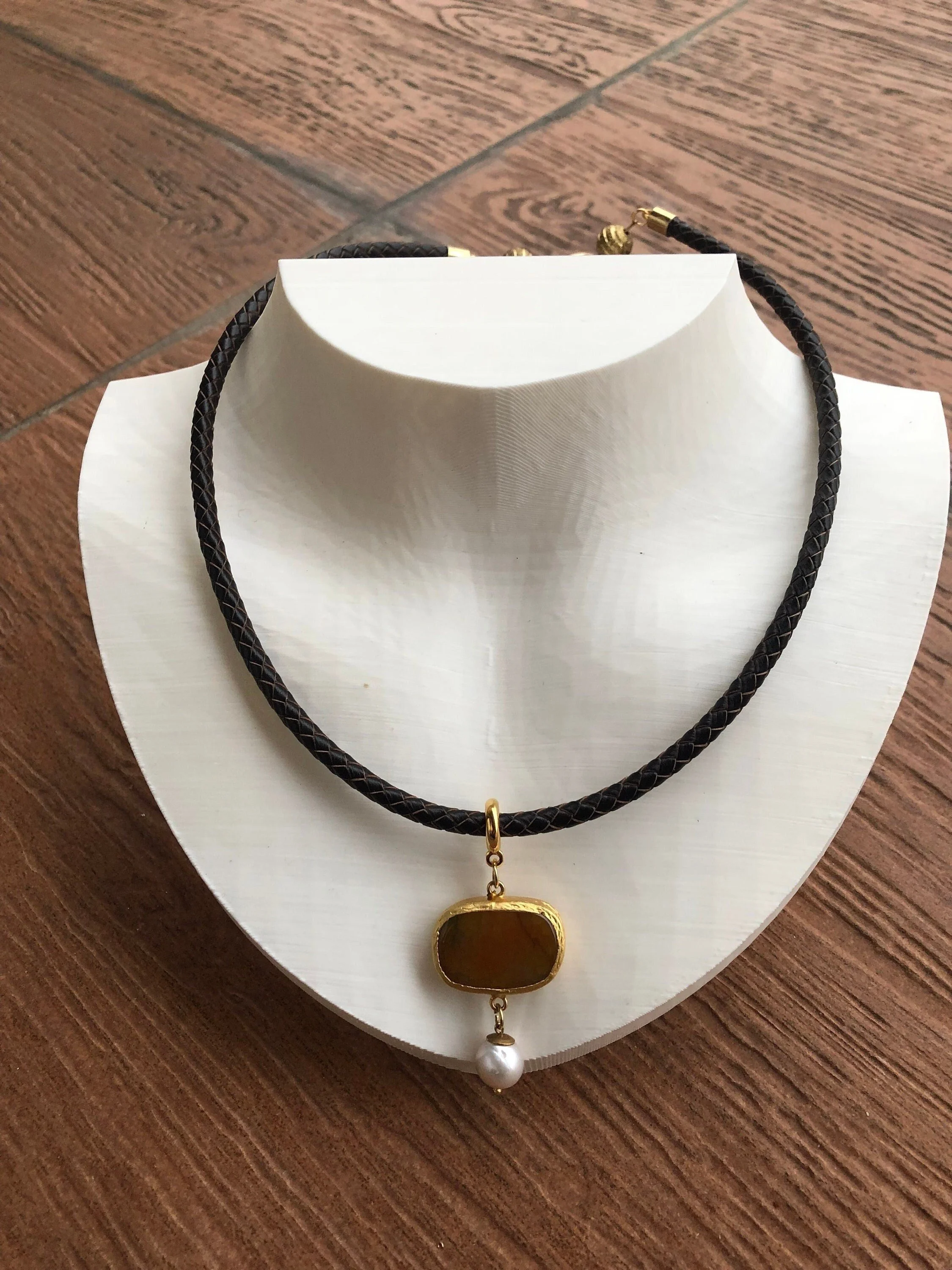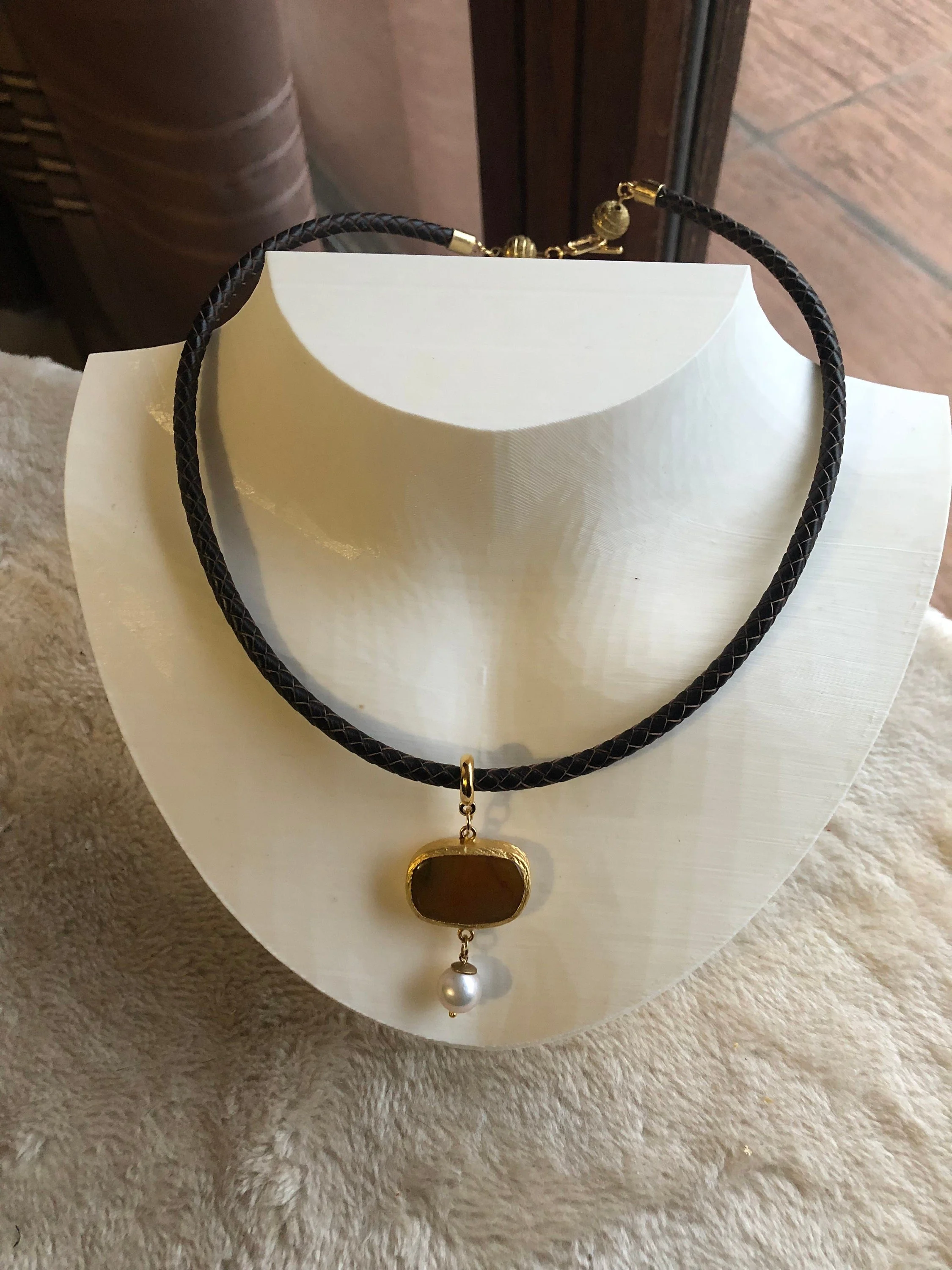 EDISON Pearl & leather - collier cuir, semi précieuse et perle de culture