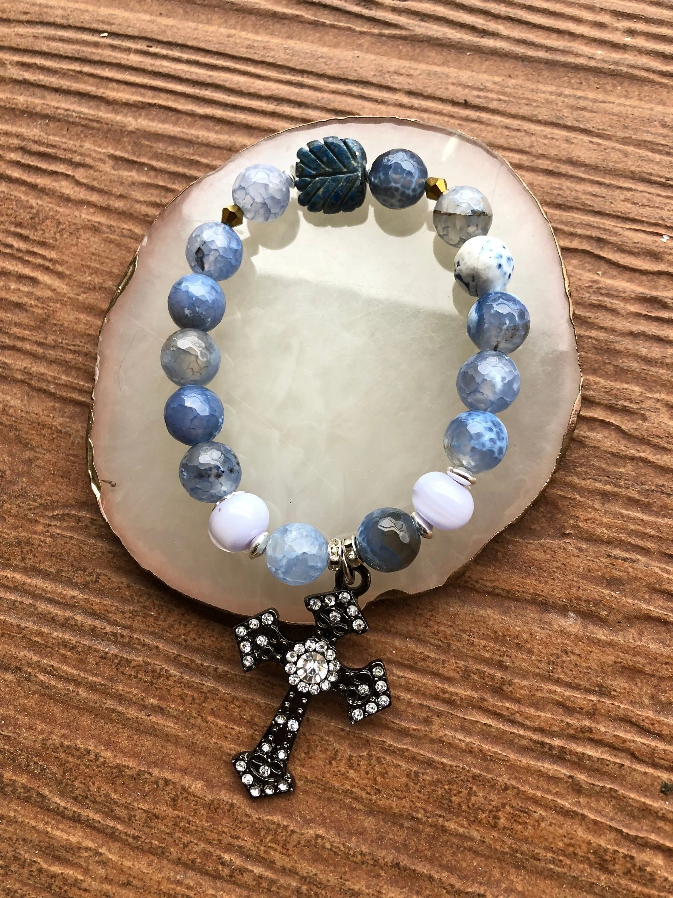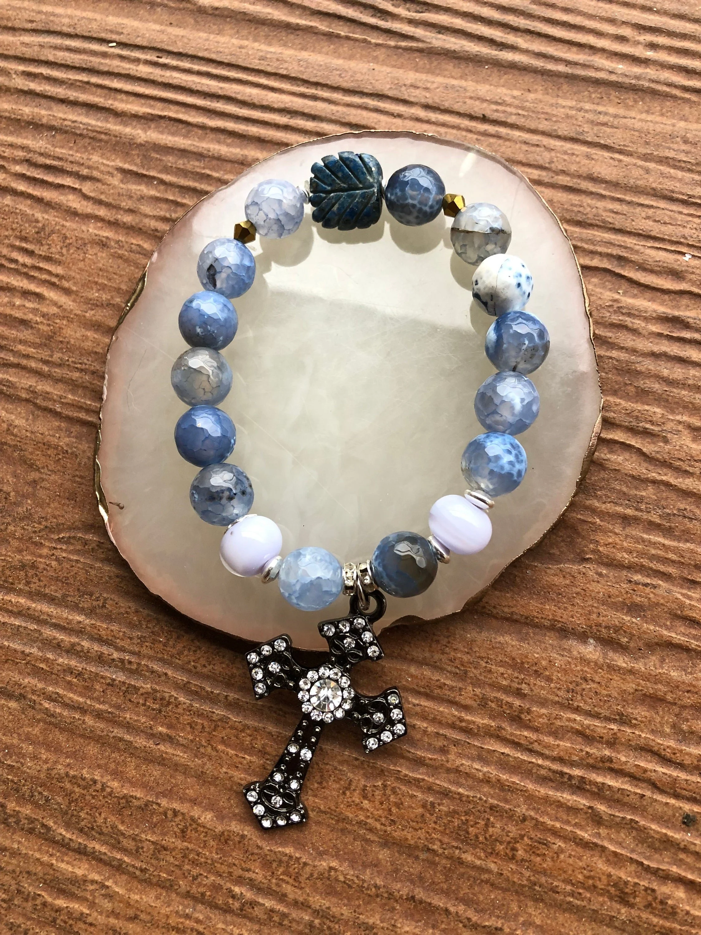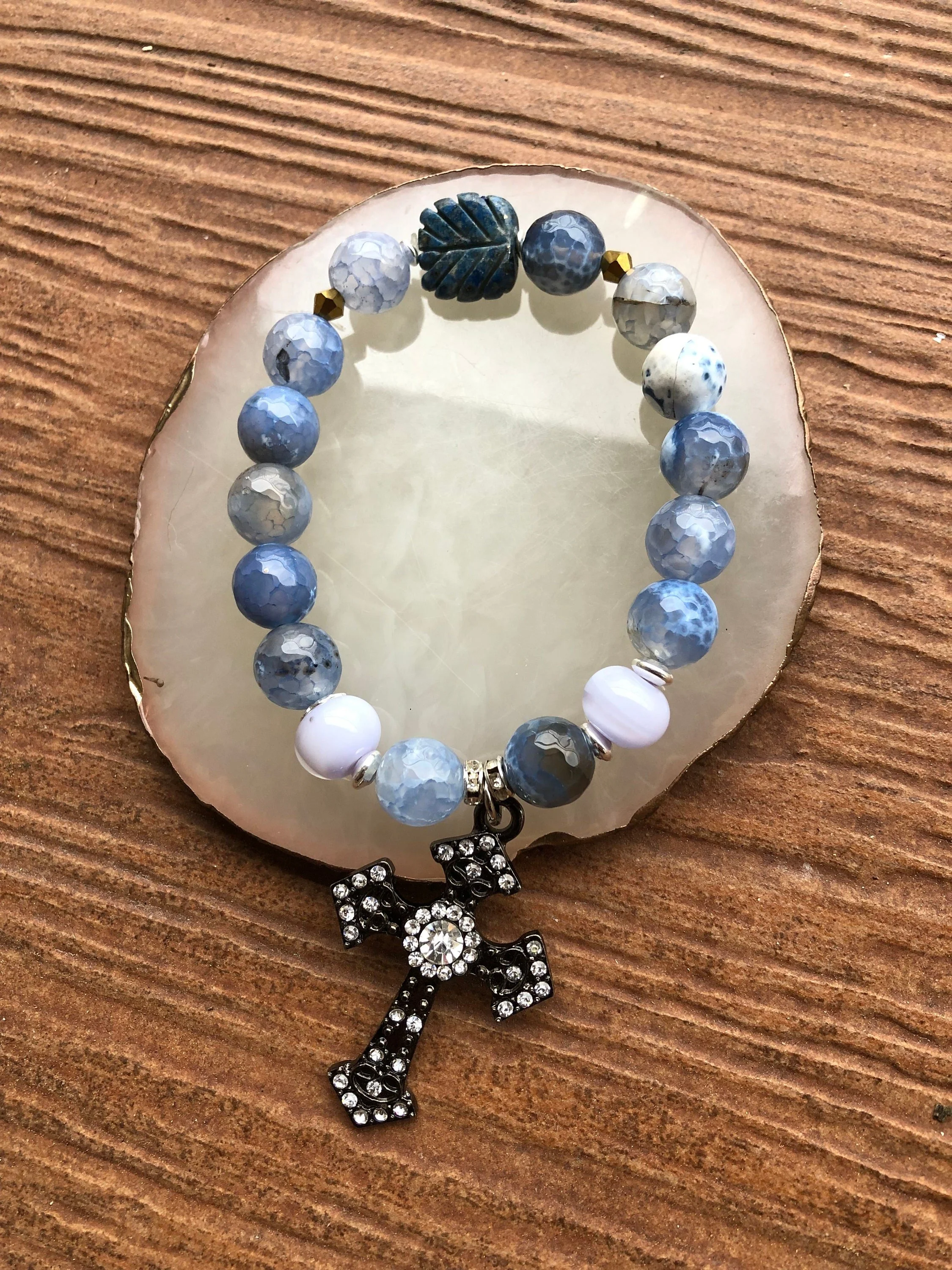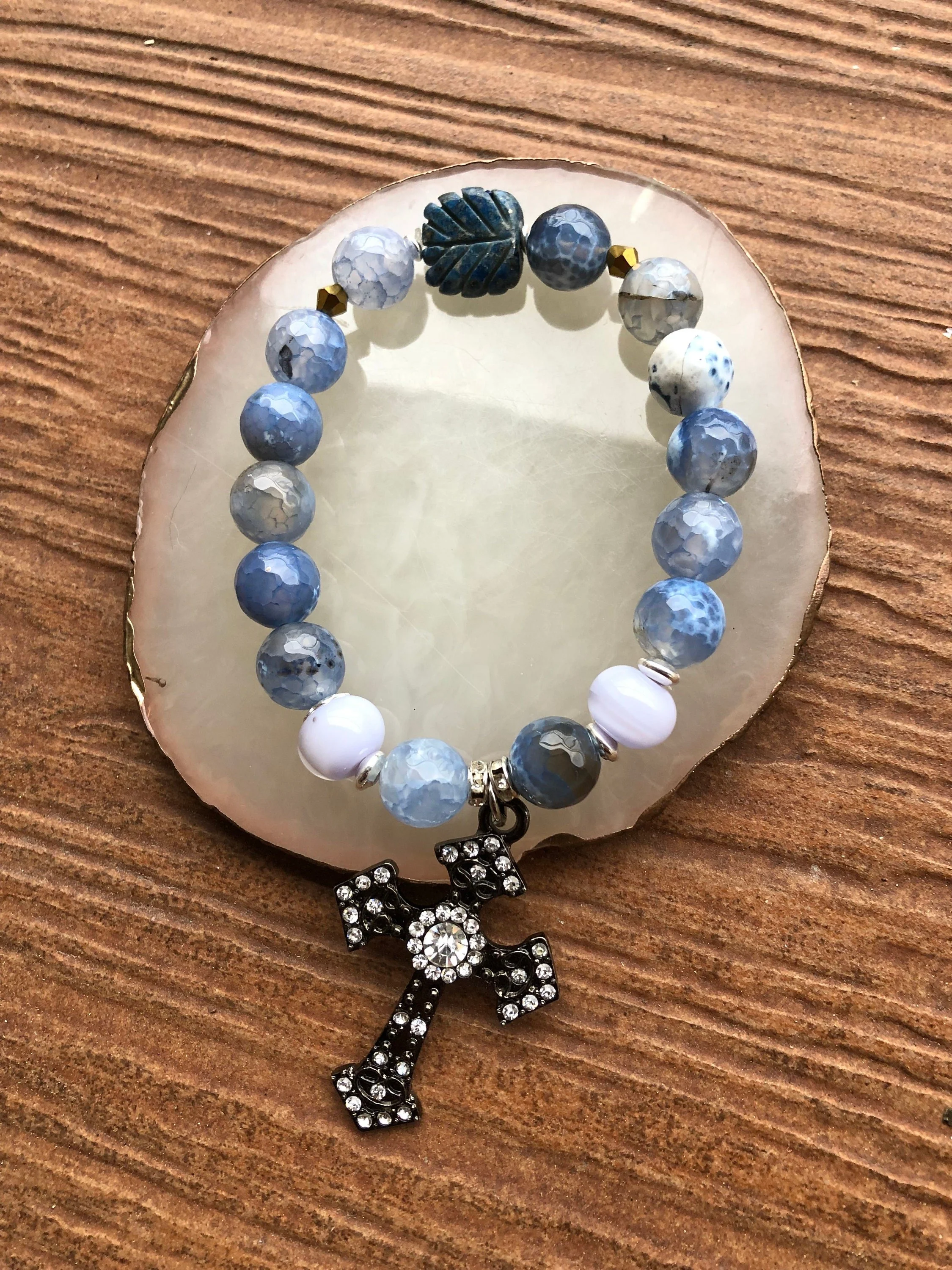 GOTHIQUE - bracelet chic semi précieuse agate, lapis lazuli et murano