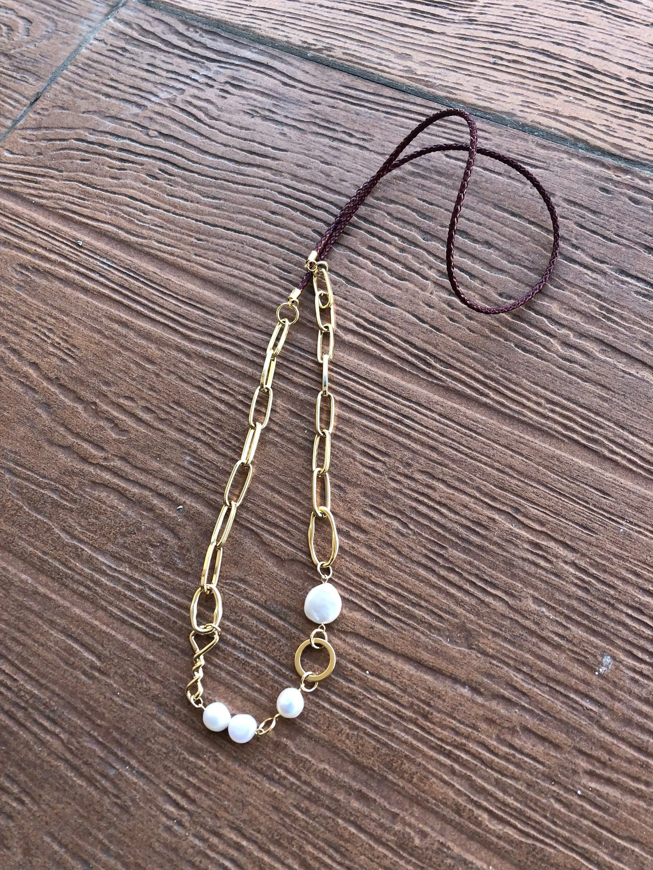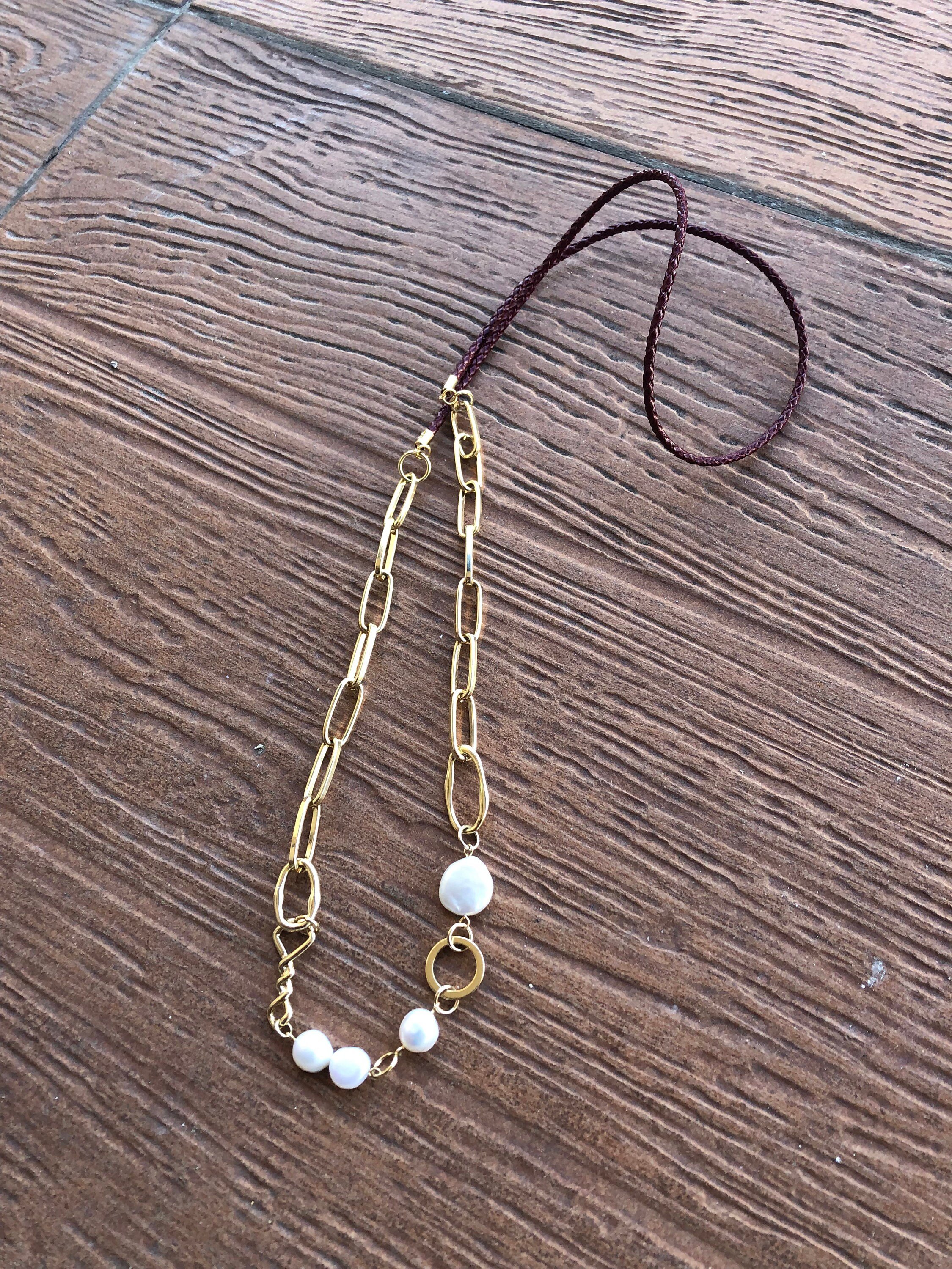 Cathynature-bijoux › Long collier bi matière cuir et plaque or 14k et perles naturelles d eau douce Image 1 sur 4 Image 2 sur 4 Image 3 sur 4 Image 4 sur 4 Long collier bi matière cuir et plaque or 14k et perles naturelles d eau douce 29,00 € épuisé Long collier moderne très original Composé S un cordon en cuir véritable tresse Rolo bordeaux de haute qualité européenneChaîne en plaque or 14k brillant composé de pièces asymétriques originales de taille différentes Perles naturelles d eau douce véritable de taille différente Modèle unique Épuisé Ajout effectué ! Long collier moderne très original Composé S un cordon en cuir véritable tresse Rolo bordeaux de haute qualité européenneChaîne en plaque or 14k brillant composé de pièces asymétriques originales de taille différentes Perles naturelles d eau douce véritable de taille différente Modèle unique
