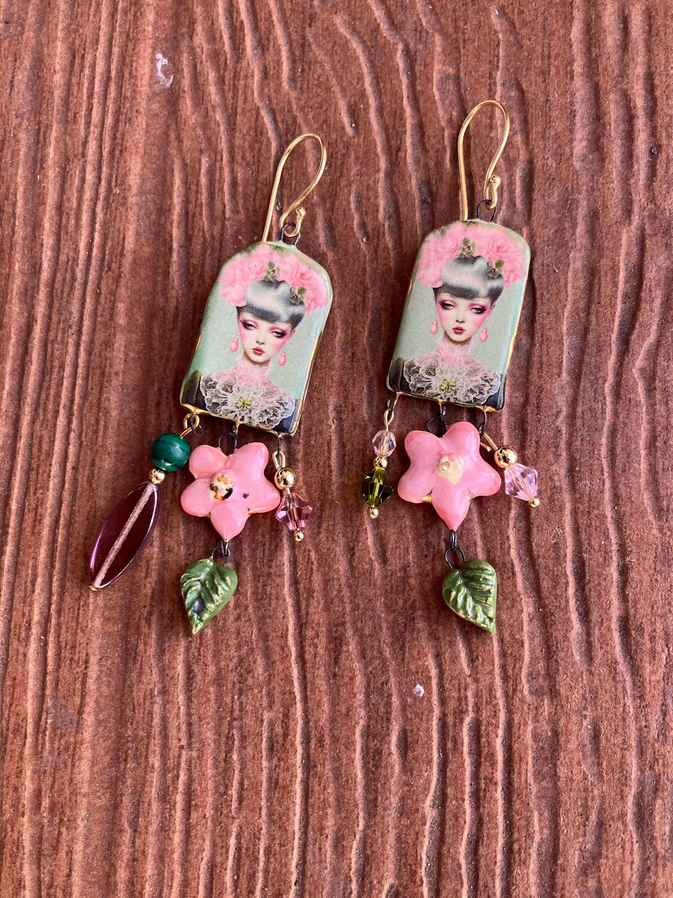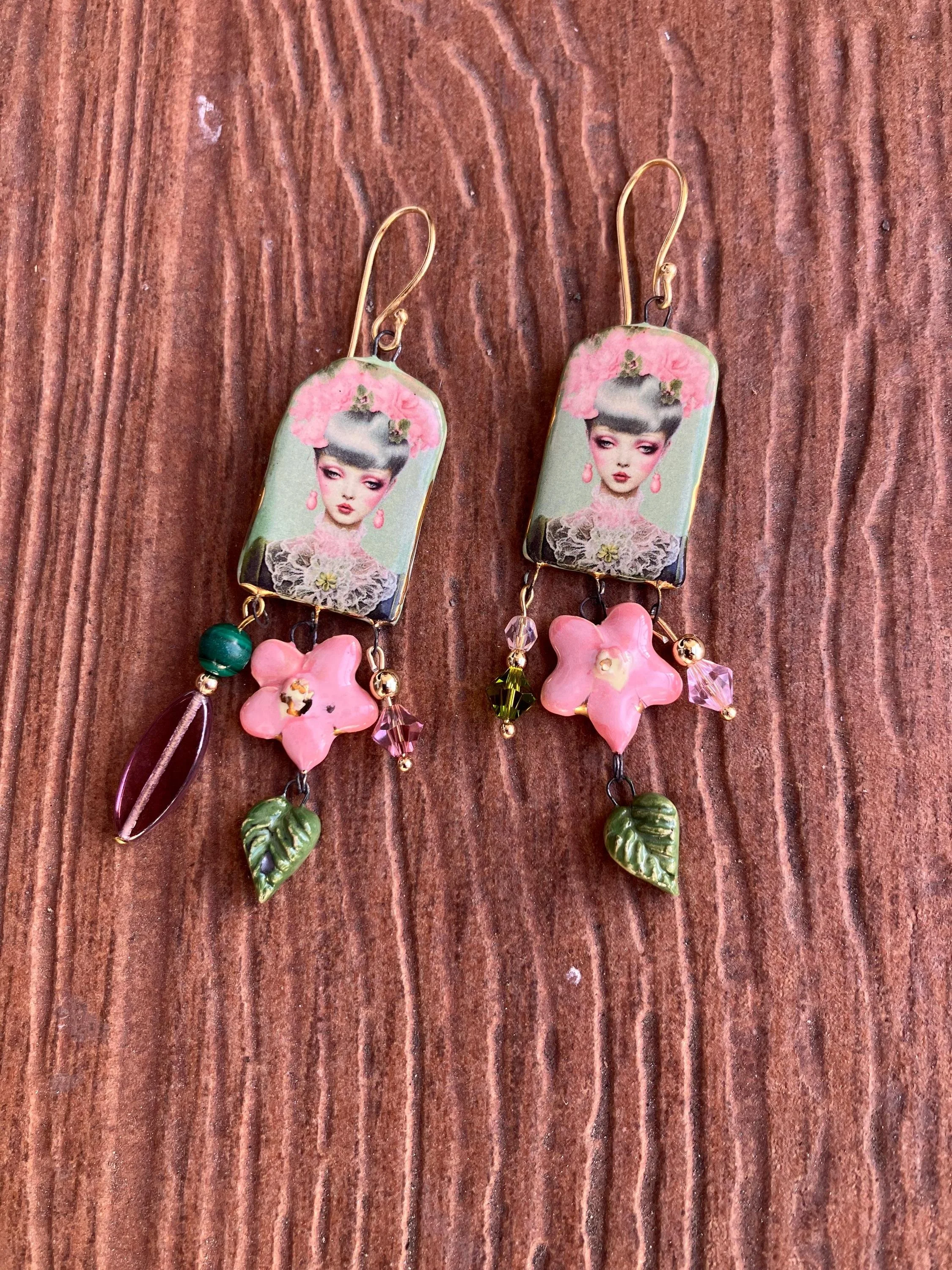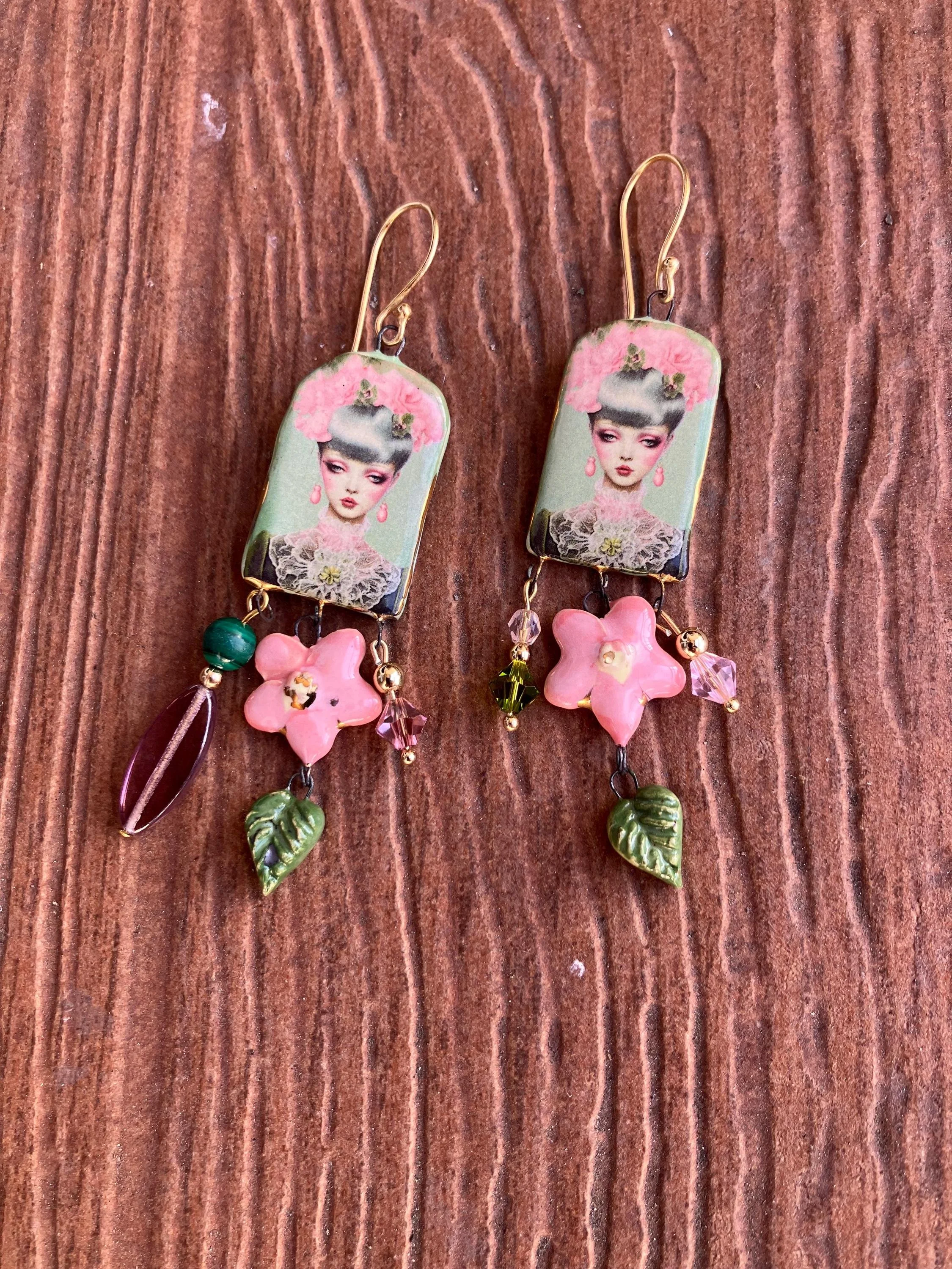 Cathynature-bijoux › Longue paire de boucles d oreilles dépareillées art deco Image 1 sur 3 Image 2 sur 3 Image 3 sur 3 Longue paire de boucles d oreilles dépareillées art deco 40,00 € Magnifique paire de boucle d oreille dépareillées longues composée De crochets de qualité en laiton doré De pendants art deco en céramique émaillé d art De Charm fleur rose bonbon et or en céramique émaillé d art De perles variées en cristal Swarovski De perles semi précieuse en malachite D une perle violine en verre tchèque Acheter Ajout effectué ! Magnifique paire de boucle d oreille dépareillées longues composée De crochets de qualité en laiton doré De pendants art deco en céramique émaillé d art De Charm fleur rose bonbon et or en céramique émaillé d art De perles variées en cristal Swarovski De perles semi précieuse en malachite D une perle violine en verre tchèque