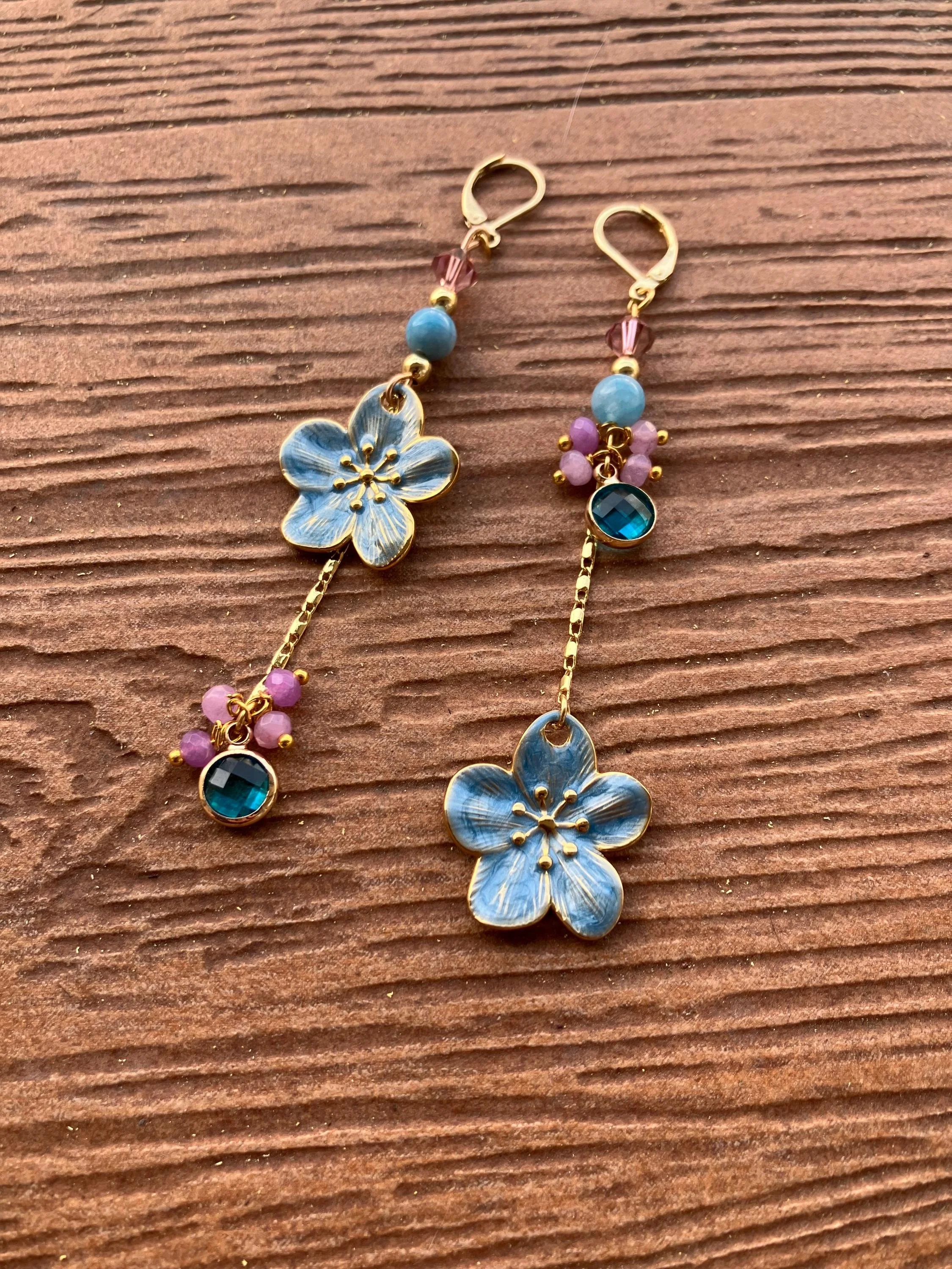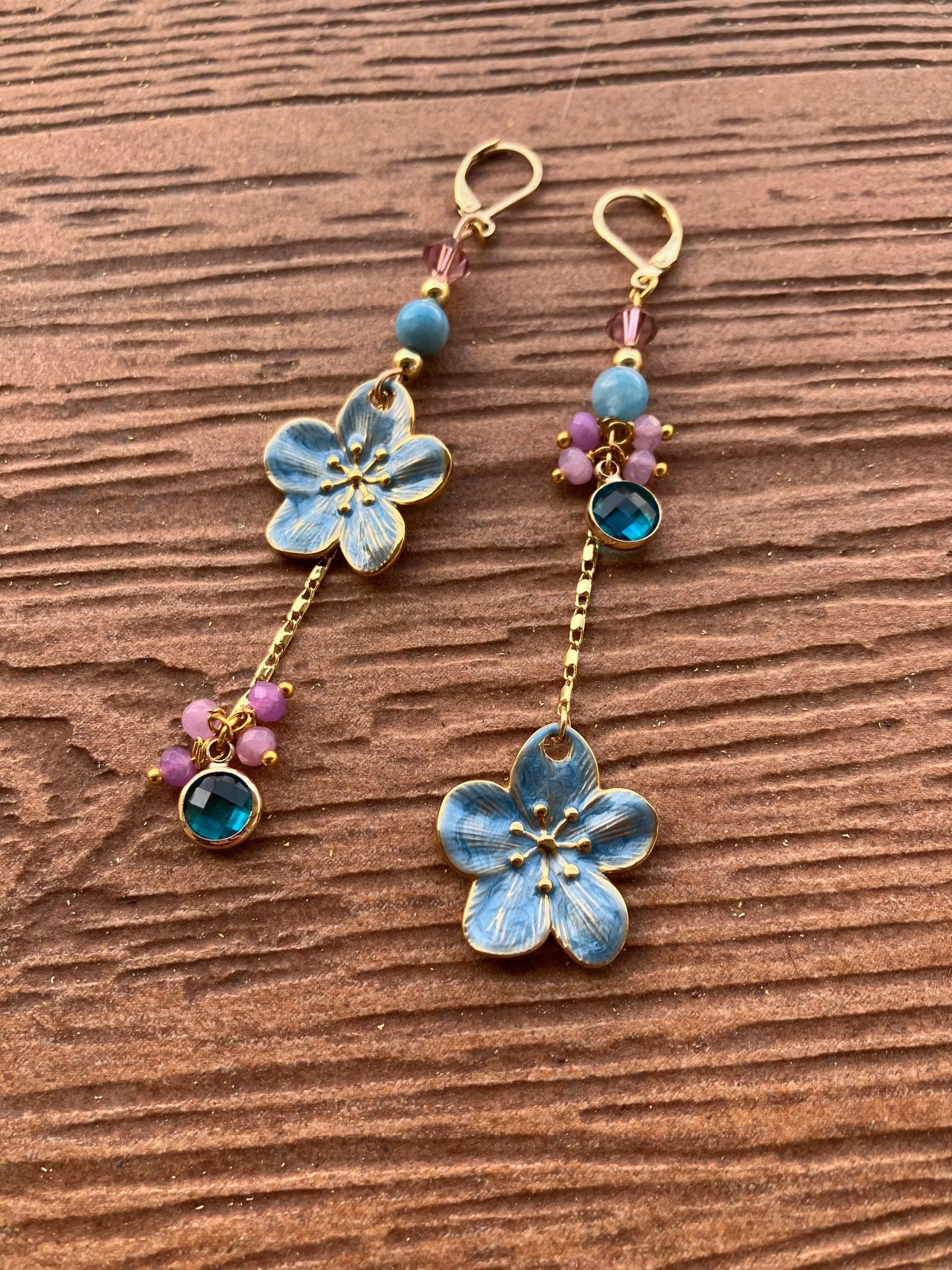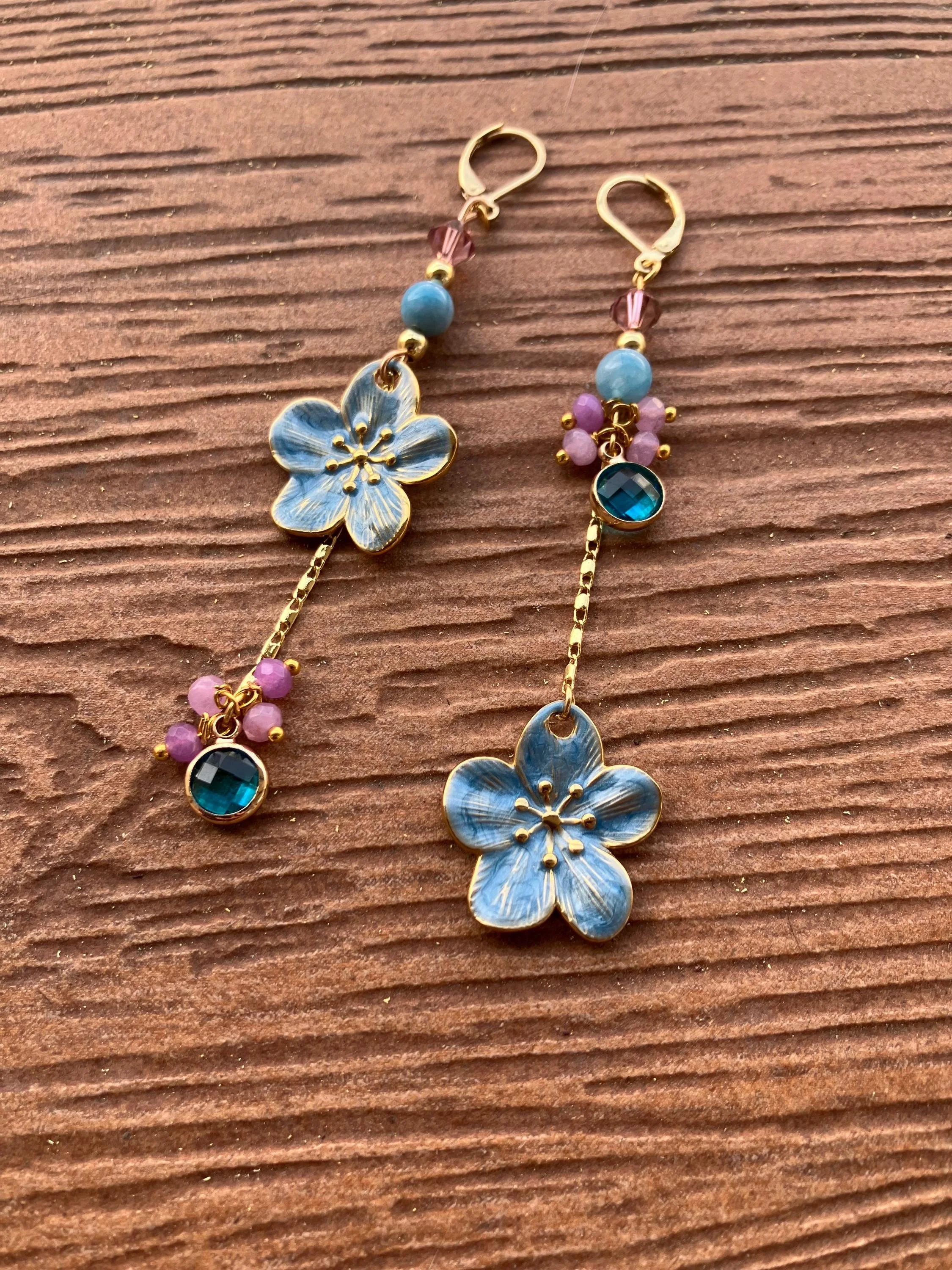 Cathynature-bijoux › Longues boucles bohème chic dépareillées florales bleu et parme Image 1 sur 4 Image 2 sur 4 Image 3 sur 4 Image 4 sur 4 Longues boucles bohème chic dépareillées florales bleu et parme 35,00 € Longues boucles d oreilles dépareillées bohème chic composées De crochets stud en laiton doré à l or fin 18 carats Perles toupie en cristal Swarovski Perles semi précieuse en agate bleu et jade violet facette Superbes fleurs en émail et plaqué or Perles en plaqué or Chaîne torsadée en plaqué or Charm en verre bleu et laiton doré Acheter Ajout effectué ! Longues boucles d oreilles dépareillées bohème chic composées De crochets stud en laiton doré à l or fin 18 carats Perles toupie en cristal Swarovski Perles semi précieuse en agate bleu et jade violet facette Superbes fleurs en émail et plaqué or Perles en plaqué or Chaîne torsadée en plaqué or Charm en verre bleu et laiton doré