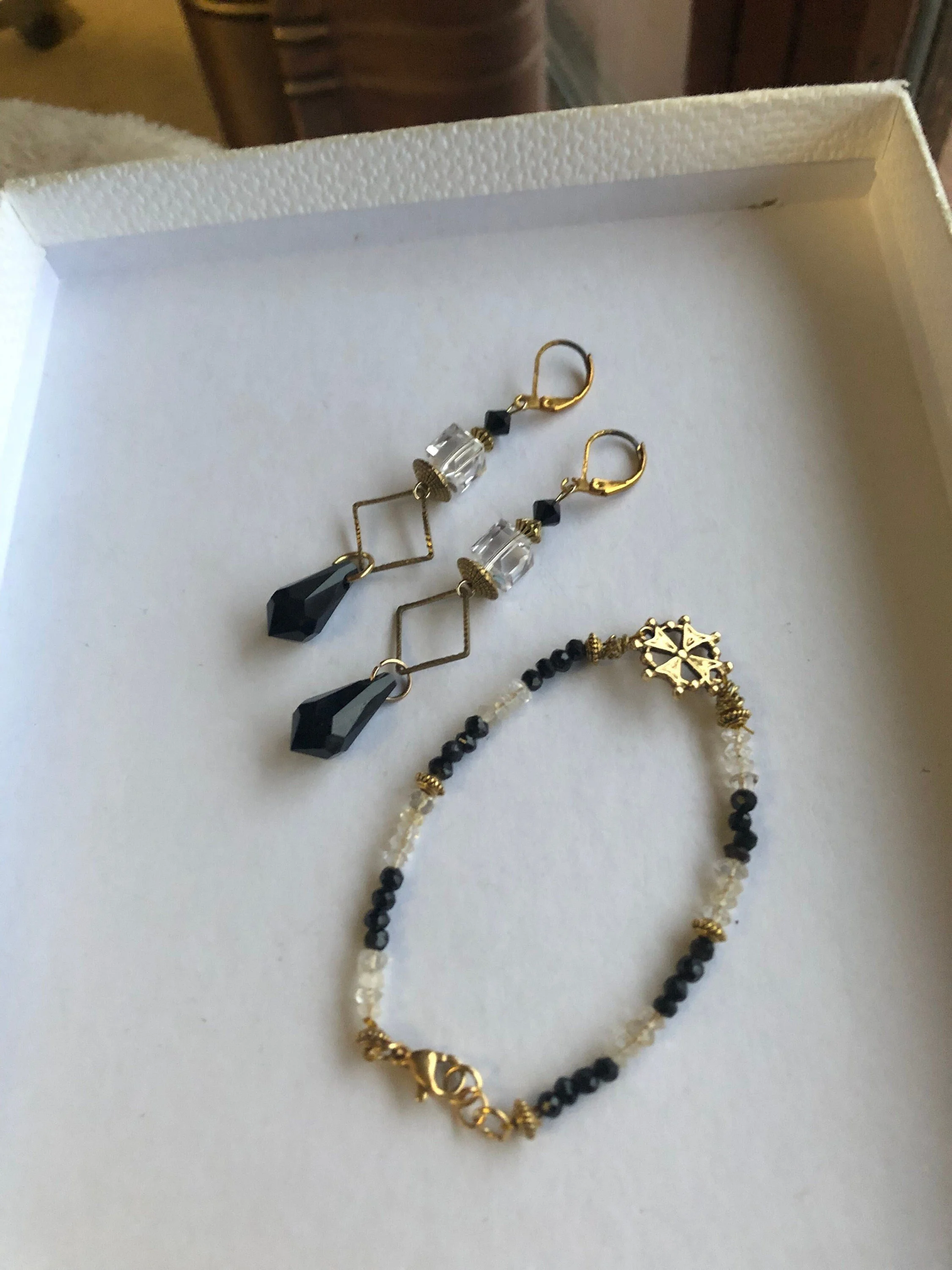 Parure boucles et bracelet cristal Swarovski et semi précieuses