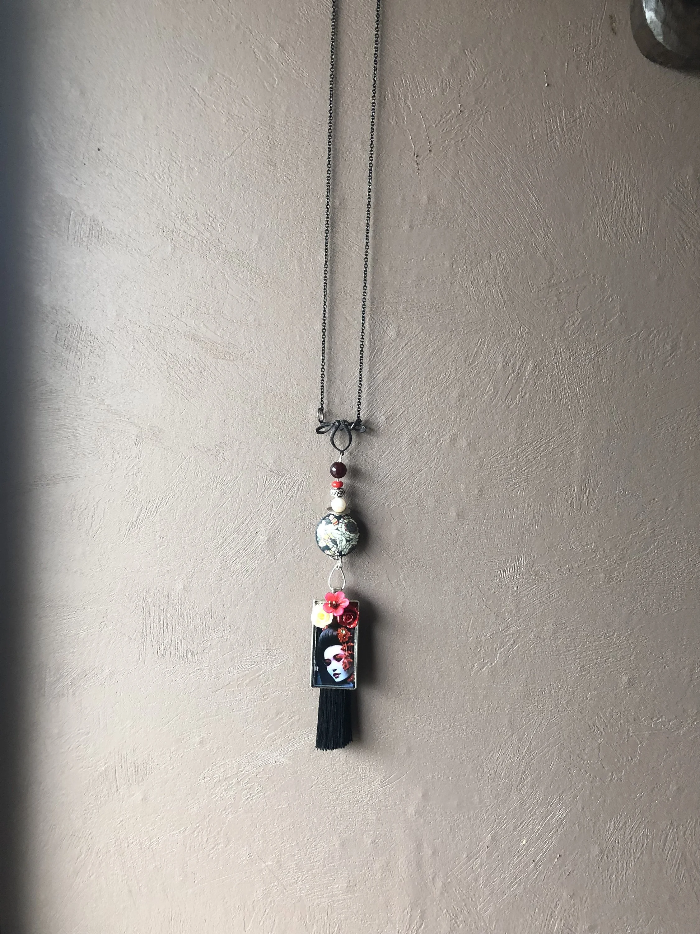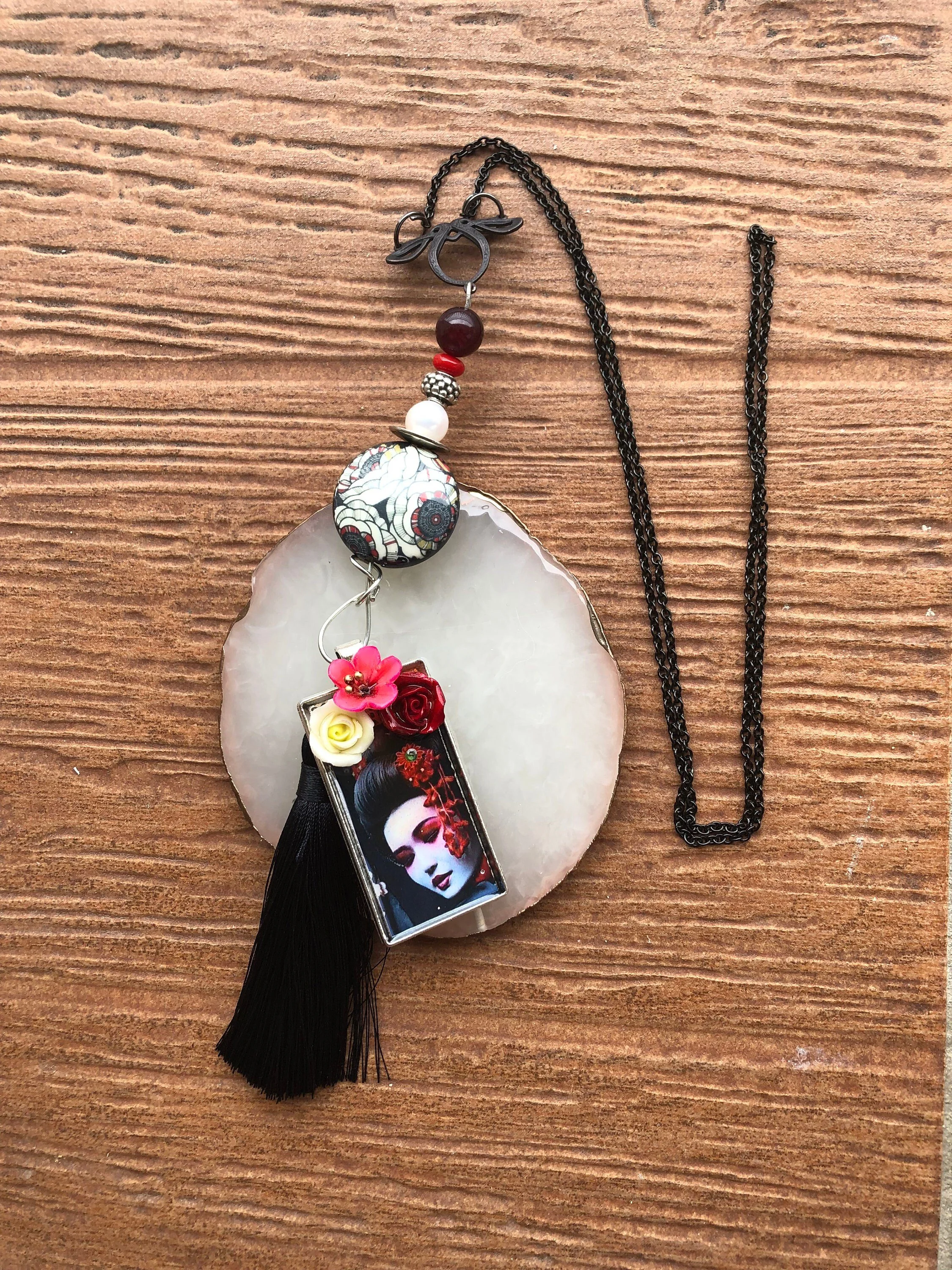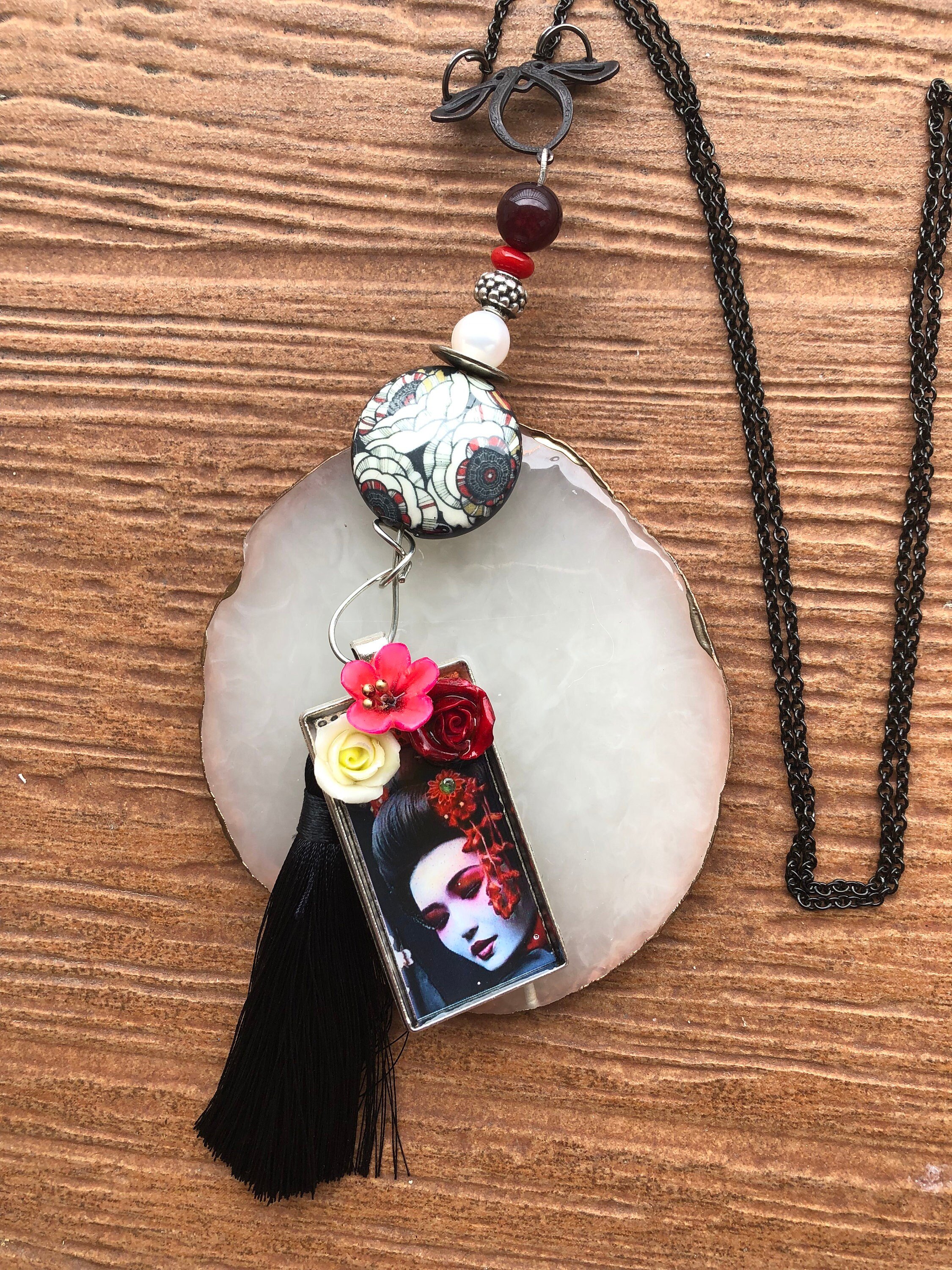Cathynature-bijoux › Sautoir bohème chic - sautoir japonisant - sautoir vintage Image 1 sur 6 Image 2 sur 6 Image 3 sur 6 Image 4 sur 6 Image 5 sur 6 Image 6 sur 6 Sautoir bohème chic - sautoir japonisant - sautoir vintage 30,00 € épuisé Magnifique sautoir bohème chic japonisant Composé d une chaîne enLaiton antique noir D un connecteur en laiton antique noir très original Grosse perle en porcelaine japonisante Perle semi précieuse en jade Perle naturelle d eau douce véritable Perle rondelle en verre indien Magnifique pendentif japonisant customises par la talentueuse créatrice de ceramicandco , inclusion fleurs en pâte de porcelaine Monte sur du fil de cuivre argent Joli pompon noir Modèle unique Épuisé Ajout effectué ! Magnifique sautoir bohème chic japonisant Composé d une chaîne enLaiton antique noir D un connecteur en laiton antique noir très original Grosse perle en porcelaine japonisante Perle semi précieuse en jade Perle naturelle d eau douce véritable Perle rondelle en verre indien Magnifique pendentif japonisant customises par la talentueuse créatrice de ceramicandco , inclusion fleurs en pâte de porcelaine Monte sur du fil de cuivre argent Joli pompon noir Modèle unique